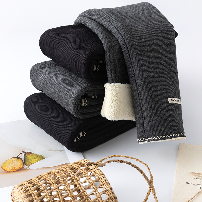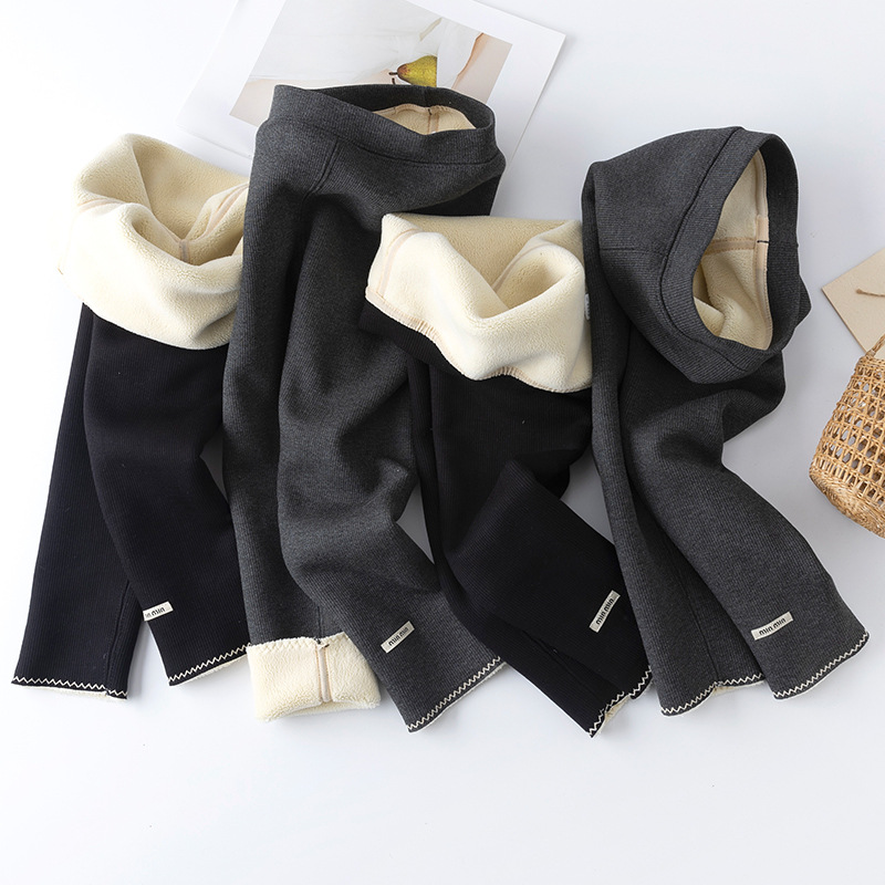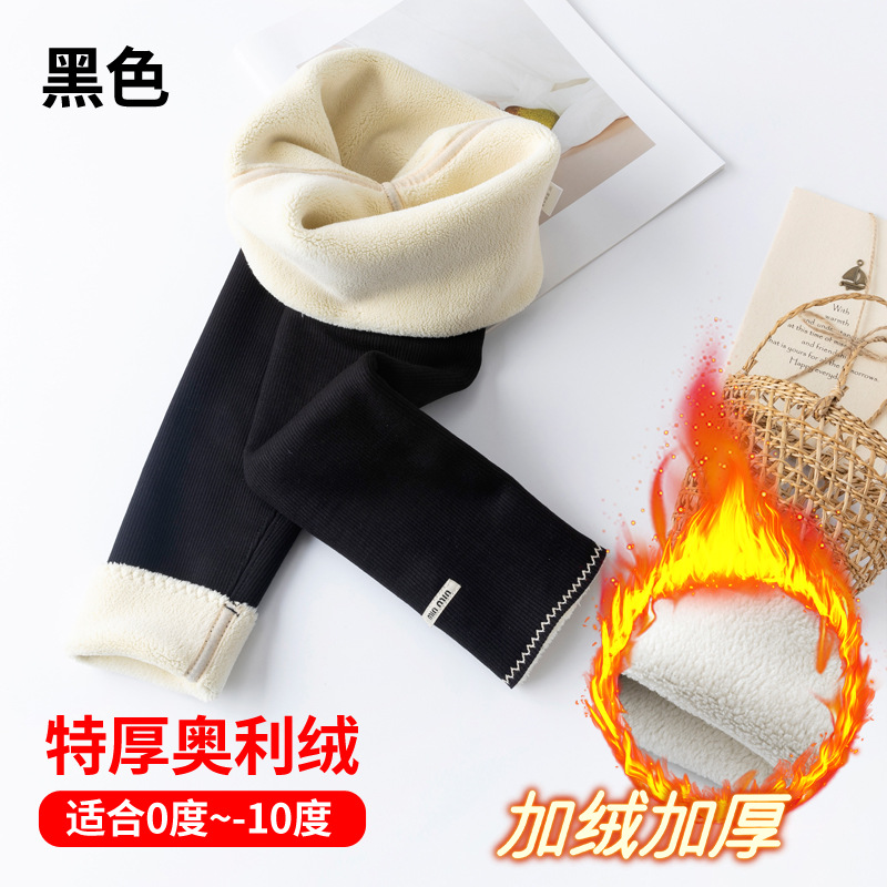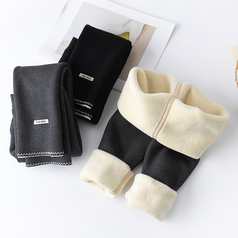 女童加绒外穿纯棉打底裤儿童小女孩裤子中小童宝宝黑白色微厚长裤