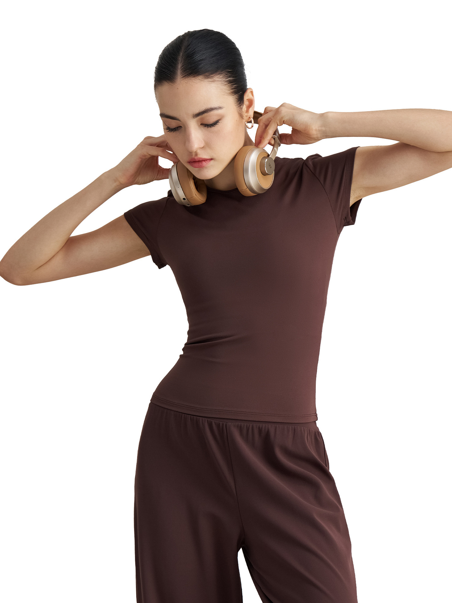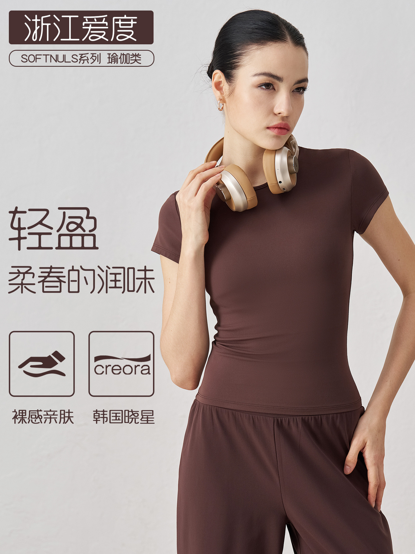 爱度SNU休闲运动短袖收腰修身透气瑜伽T恤跑步训练裸感健身上衣女