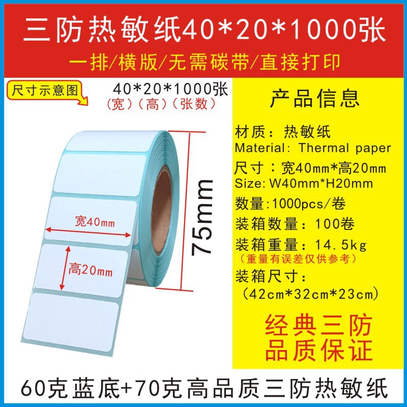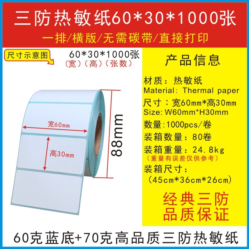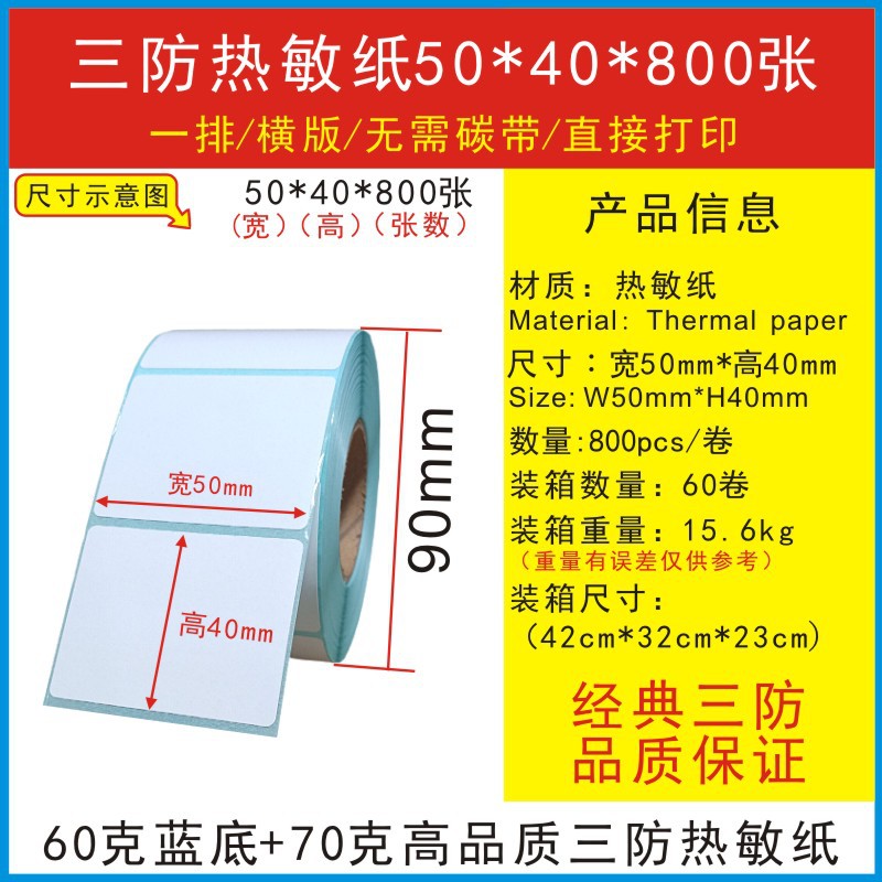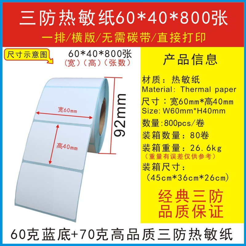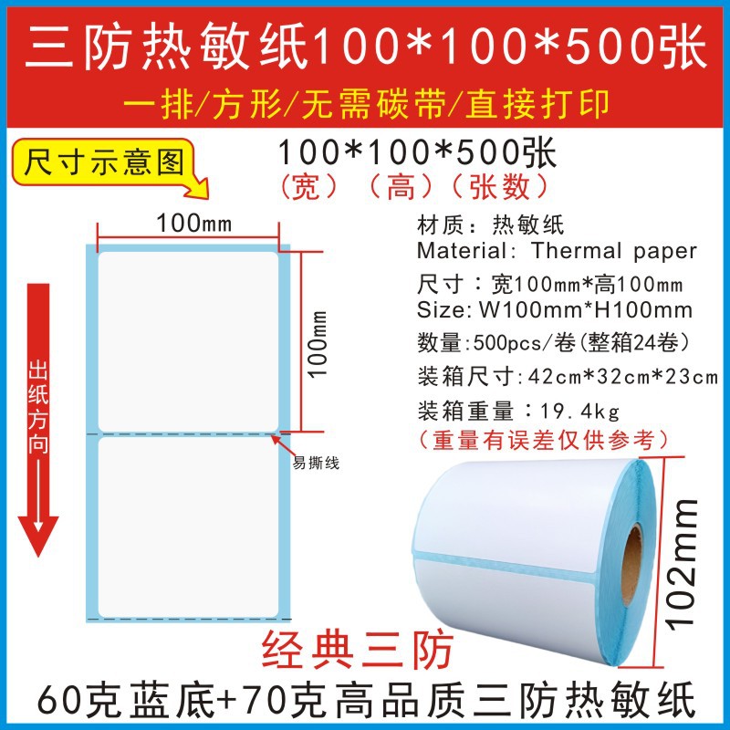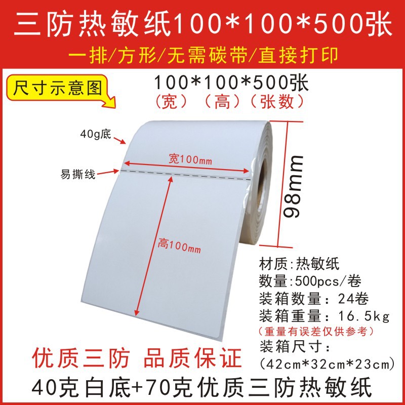 三防热敏纸100*100标签纸100*150热敏打印纸不干胶标签条码纸