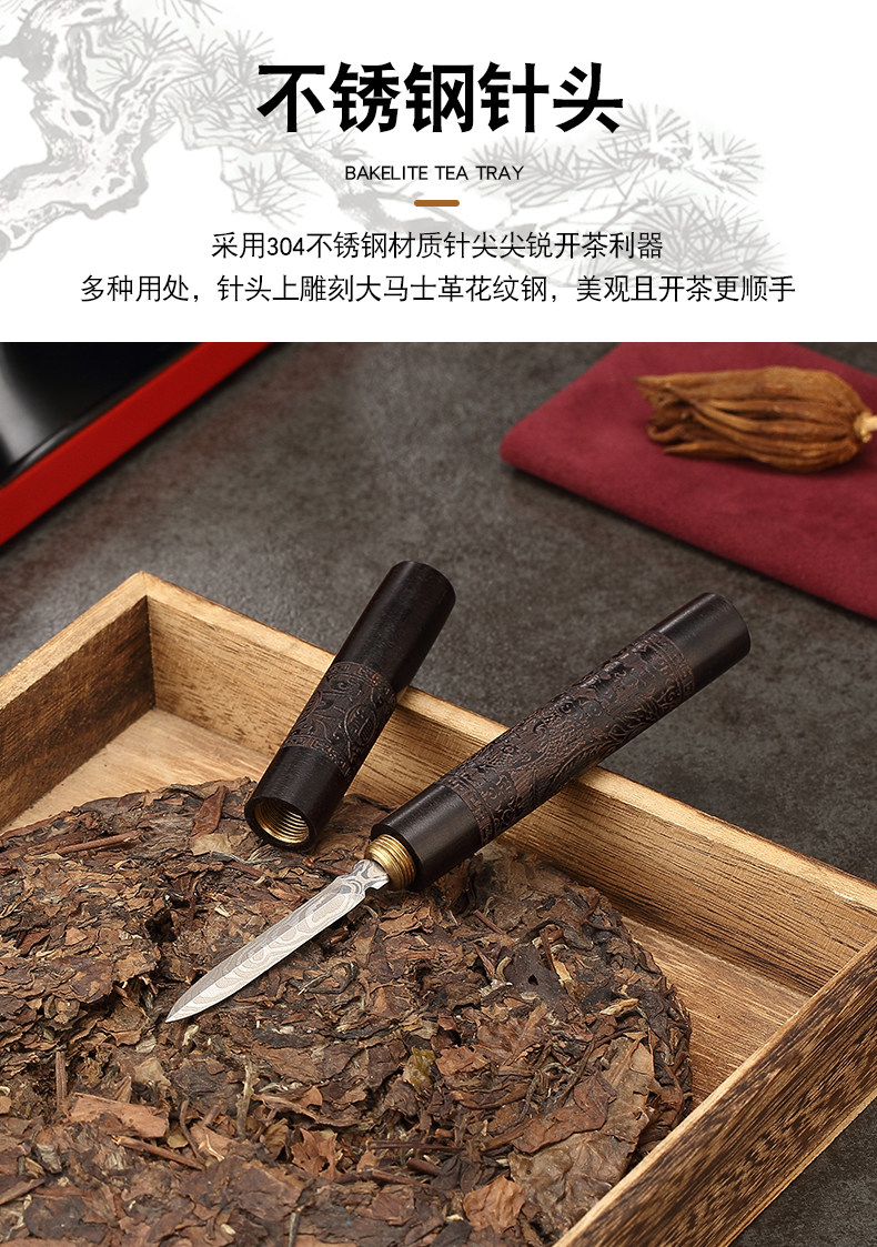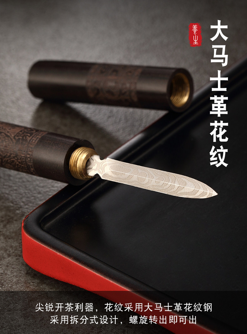 黑檀花梨木大马士革茶刀普洱茶刀茶饼专用开茶器撬茶刀茶针高档