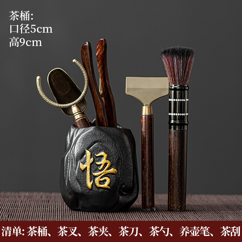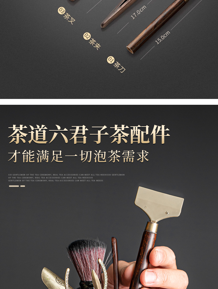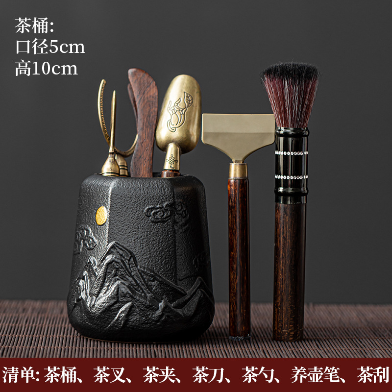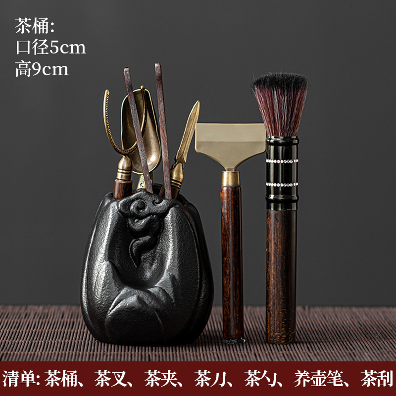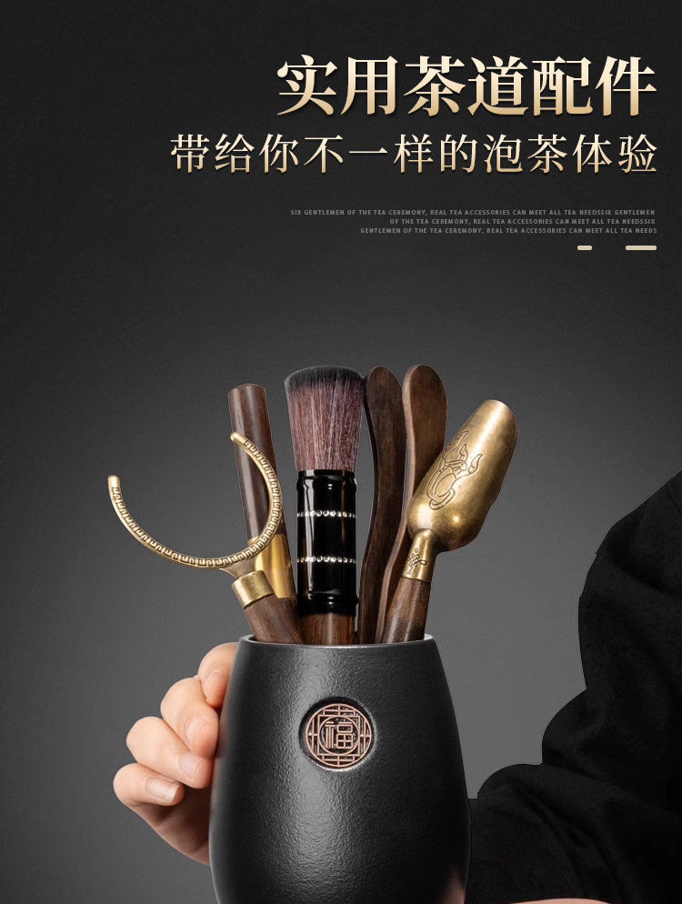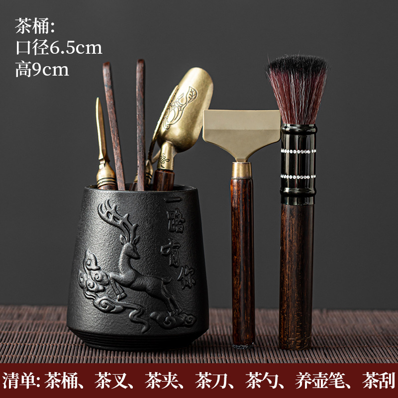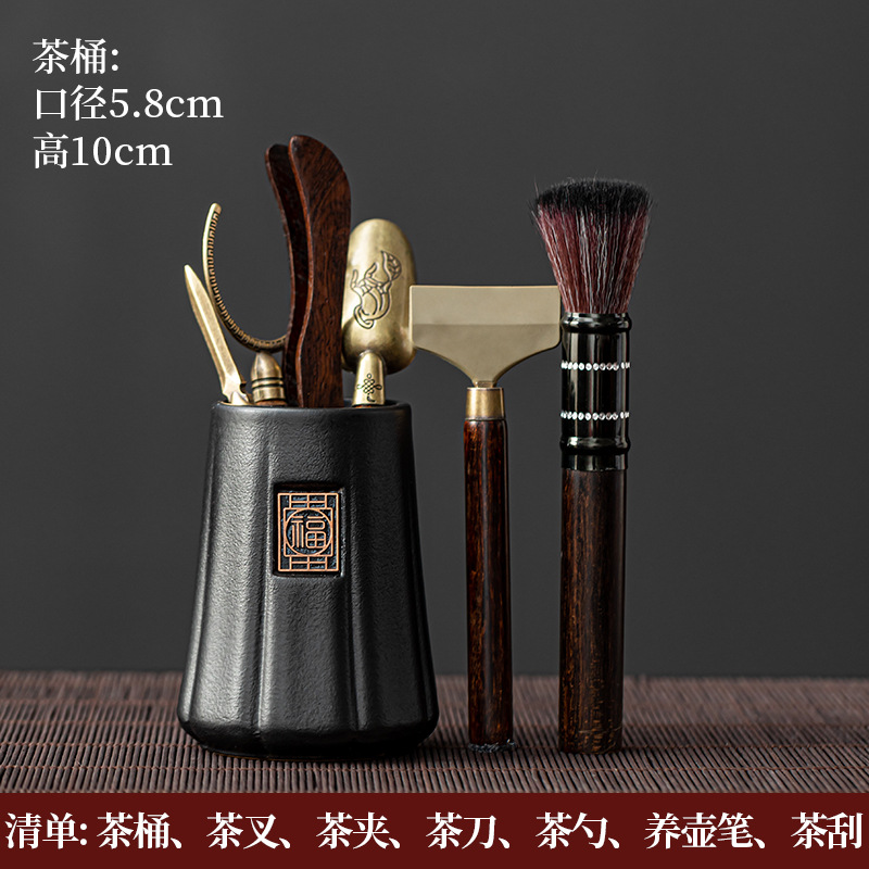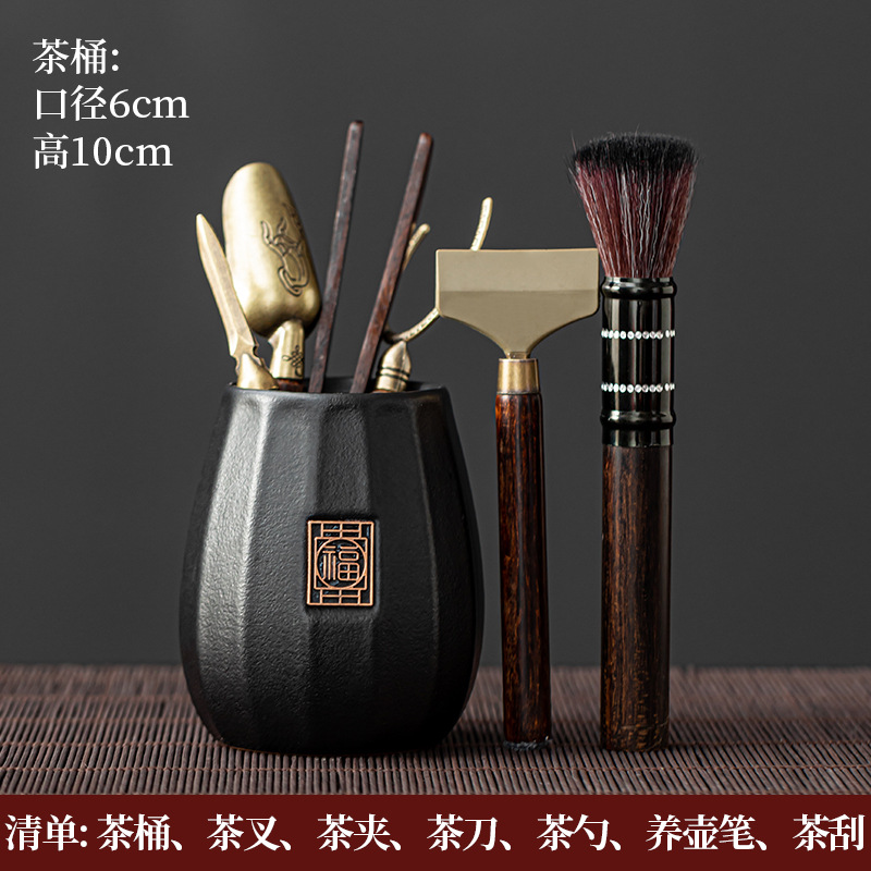 黑陶福气茶道六君子简约创意茶针茶匙杯托养壶笔等茶道六件套配件