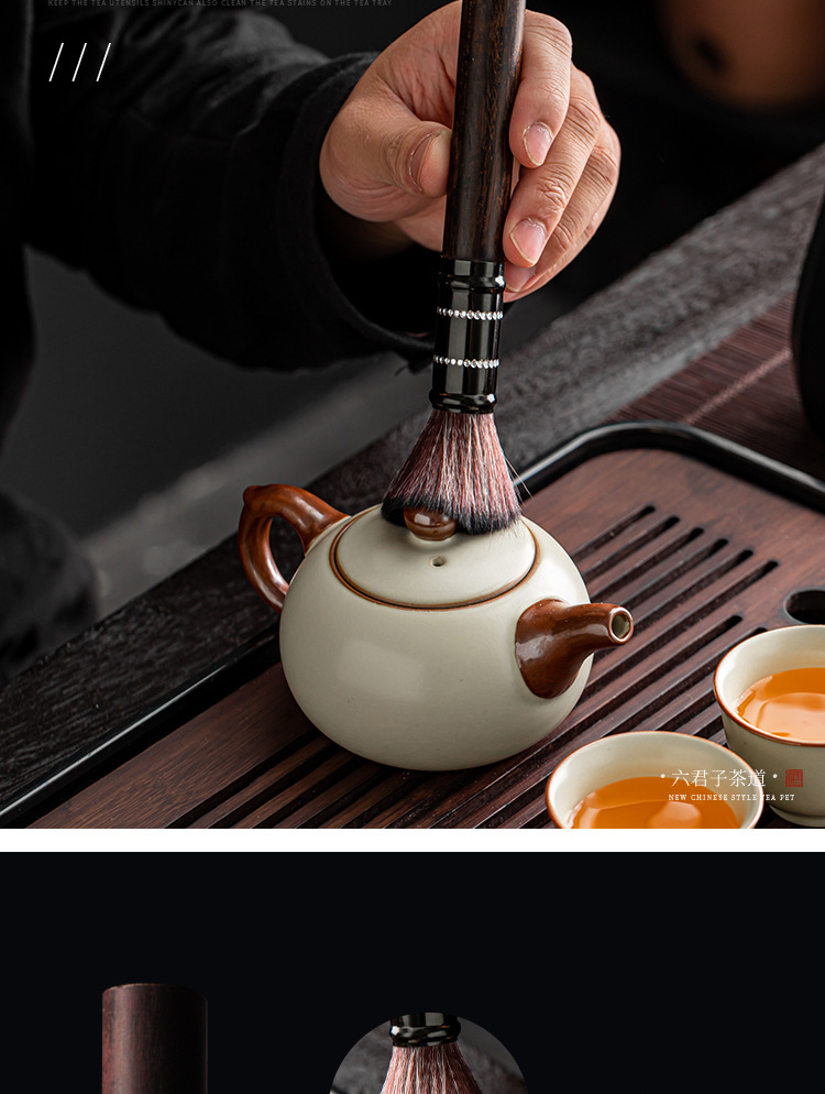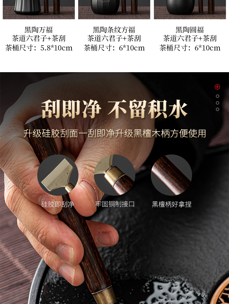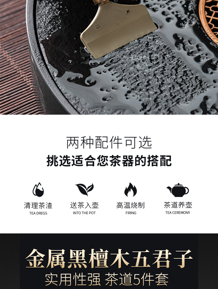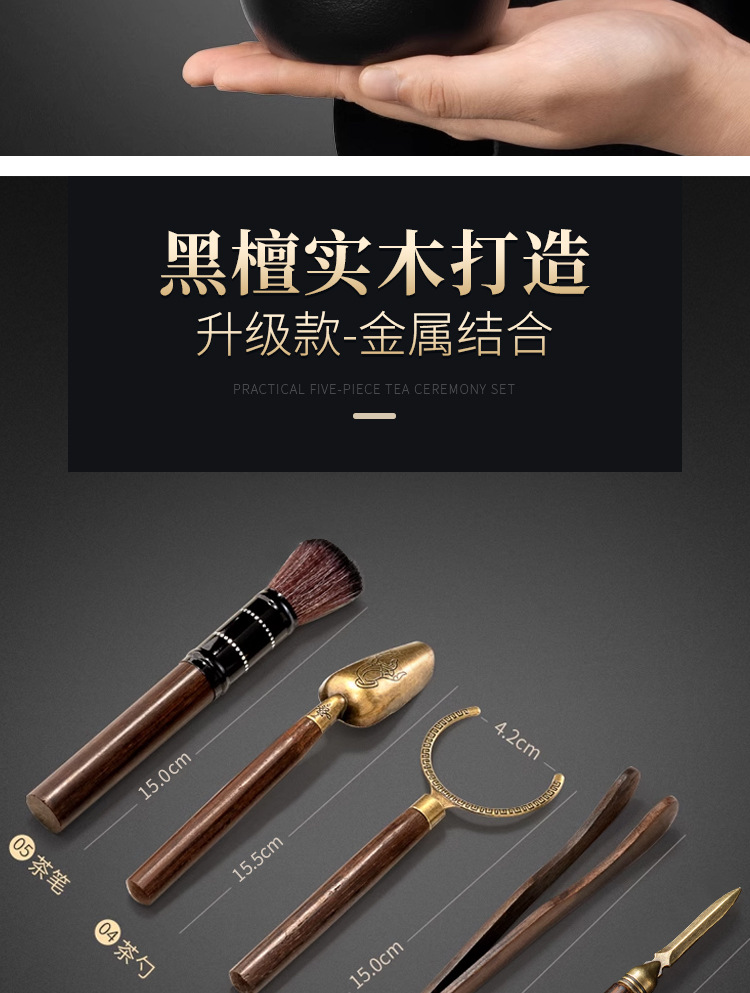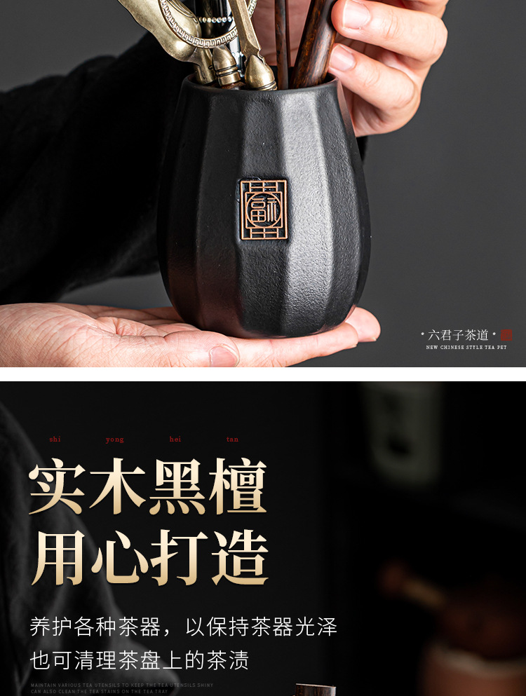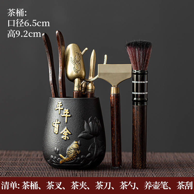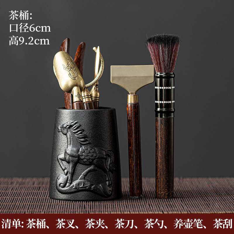 黑陶福气茶道六君子简约创意茶针茶匙杯托养壶笔等茶道六件套配件