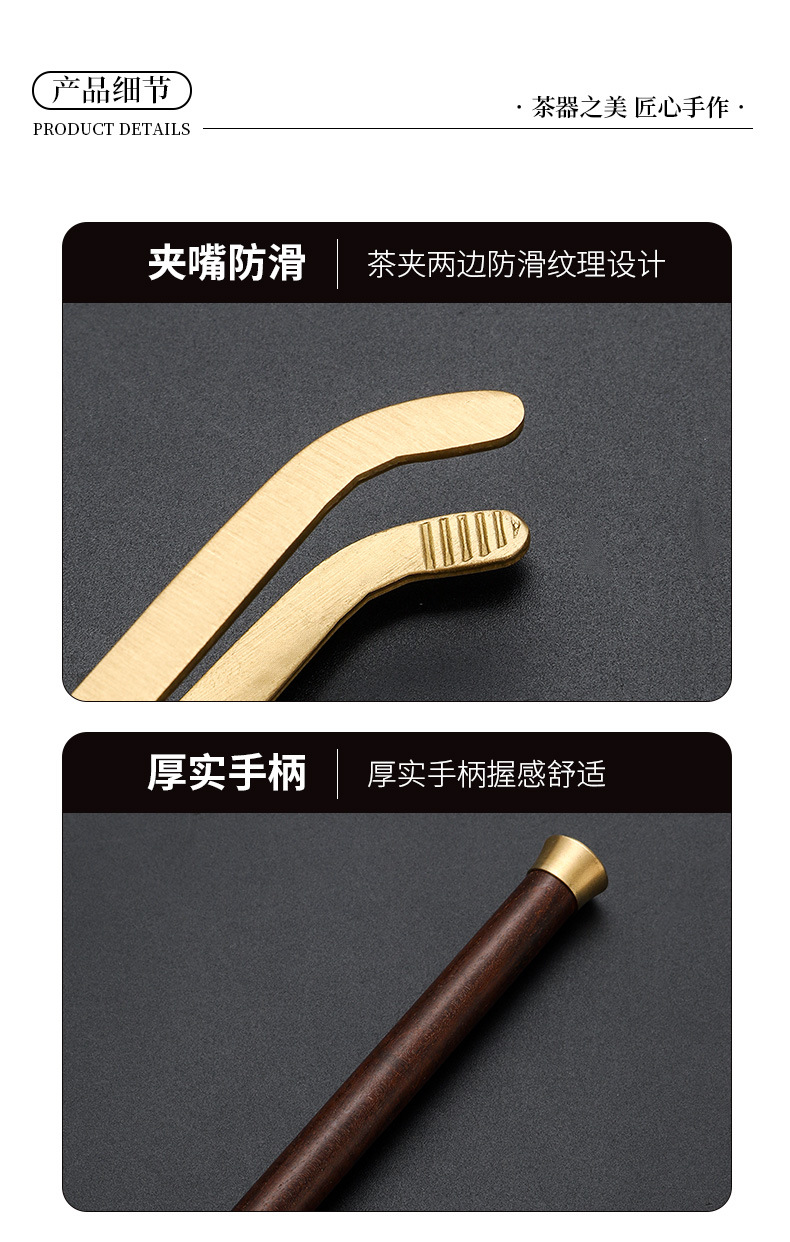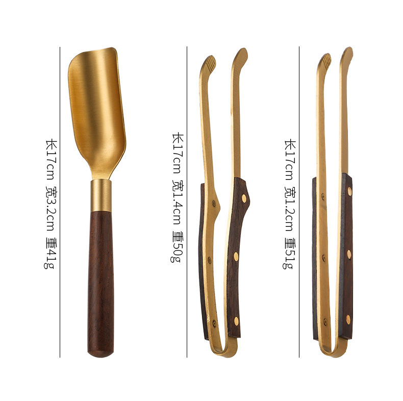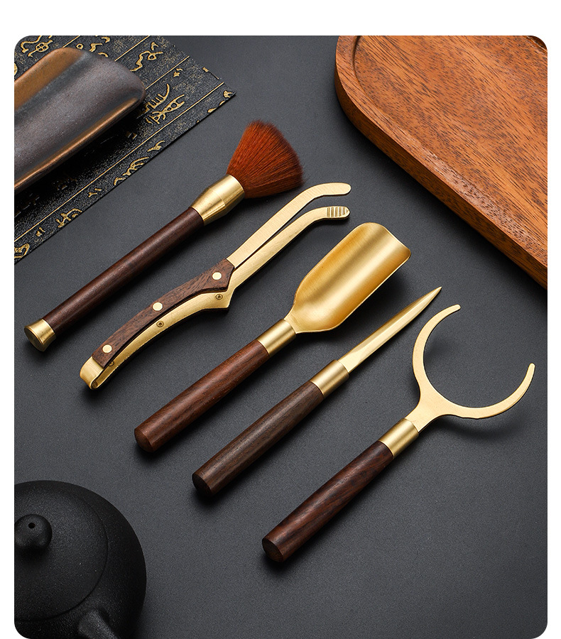 黄铜黑檀实木功夫茶具配件高档套装茶勺养壶笔茶道六君子茶刀茶工