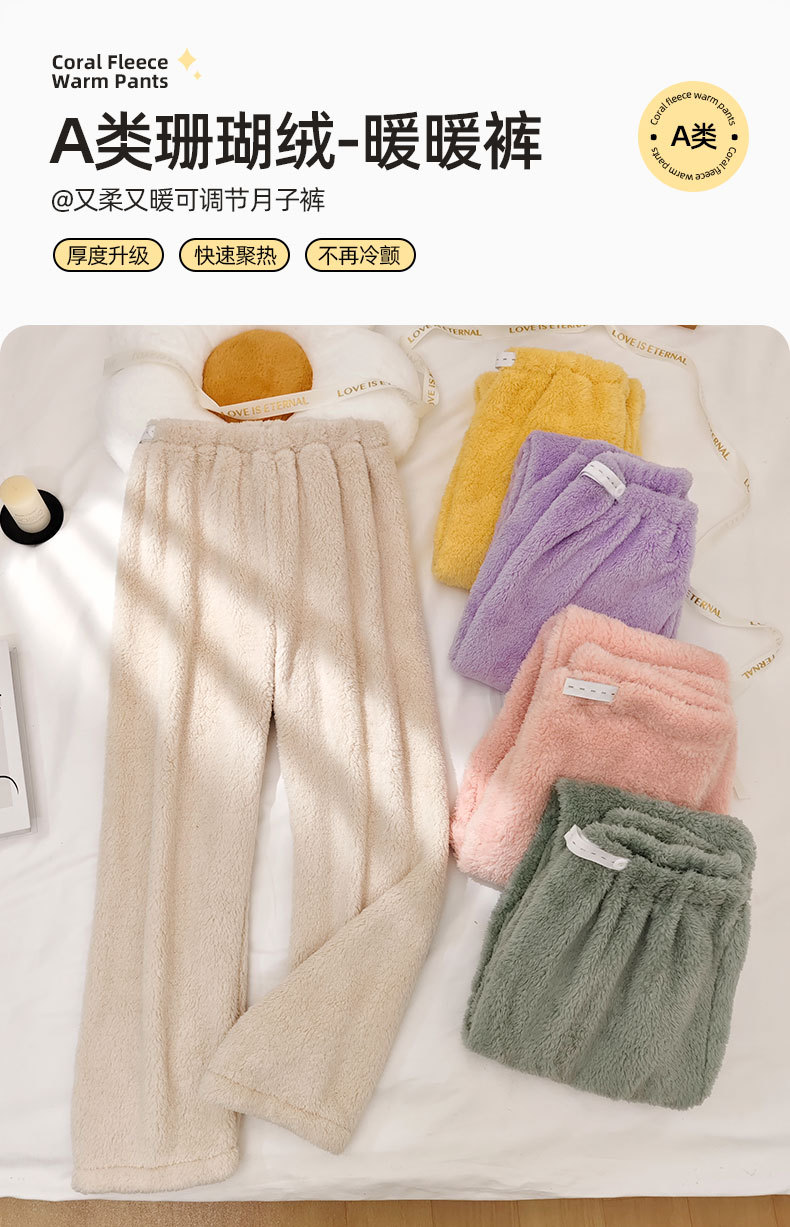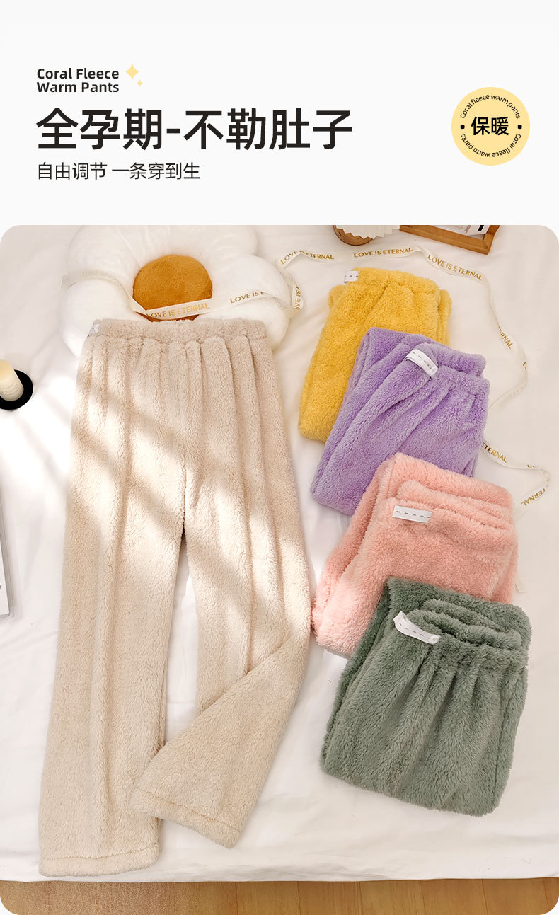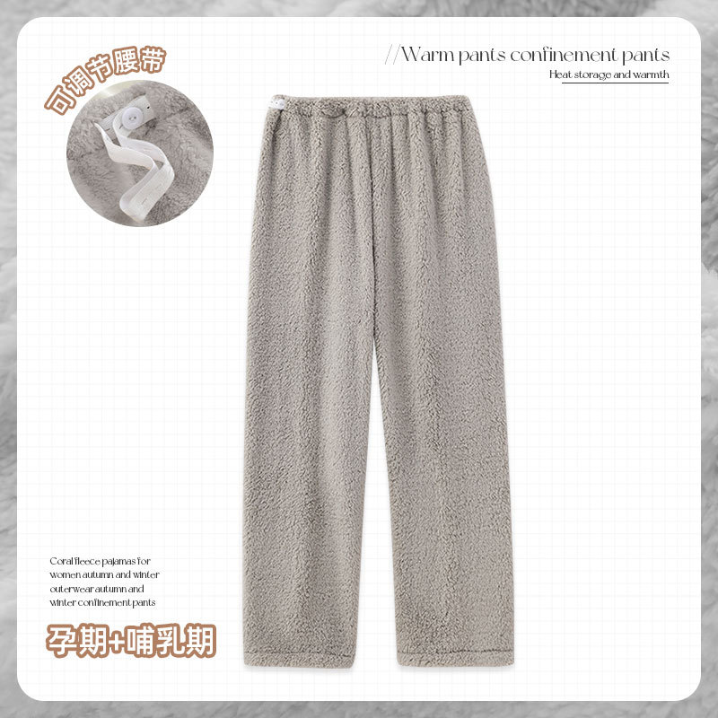 喜月批发月子裤冬季A类珊瑚绒280克可调节腰带孕妇孕期可外穿睡裤