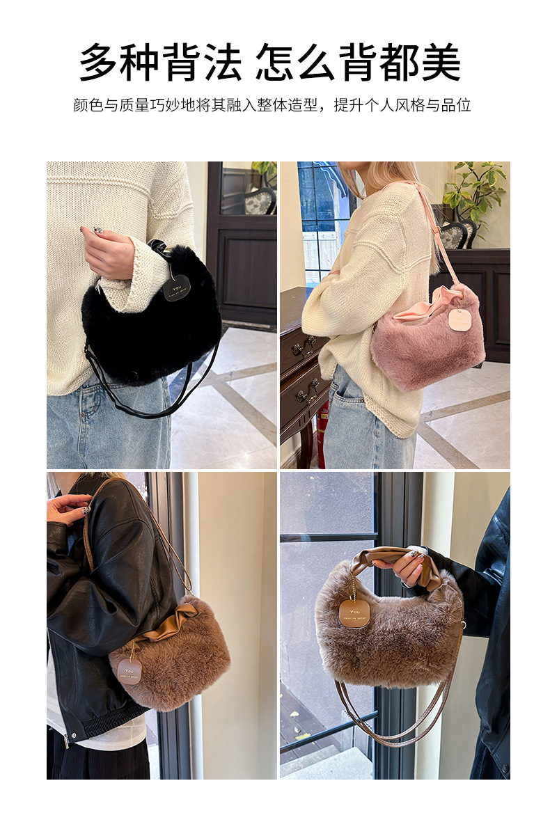 高级感秋冬新款毛绒斜挎包百搭洋气通勤毛茸茸高颜值小众大容量女