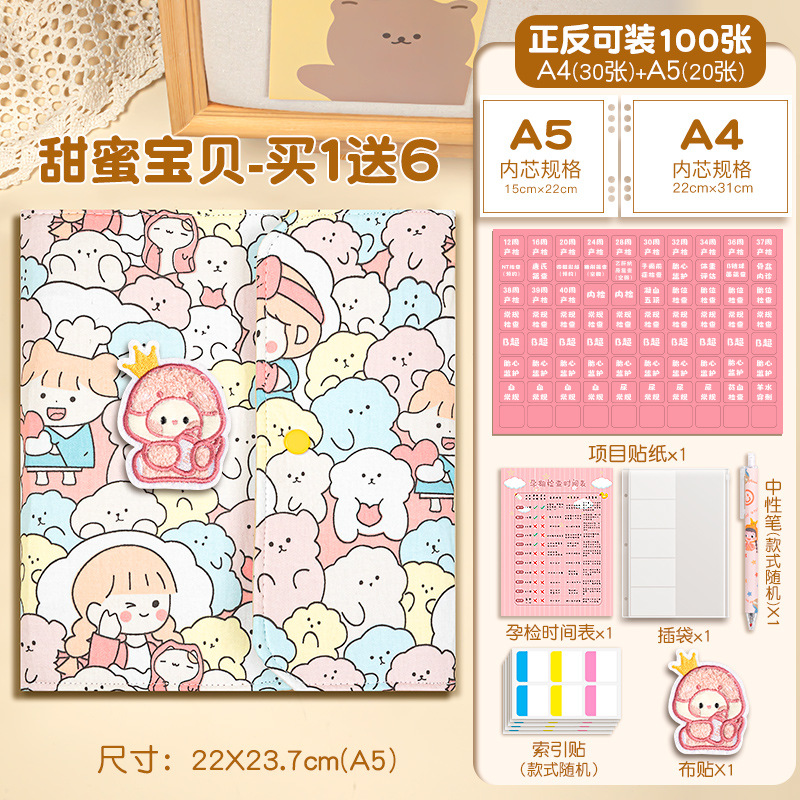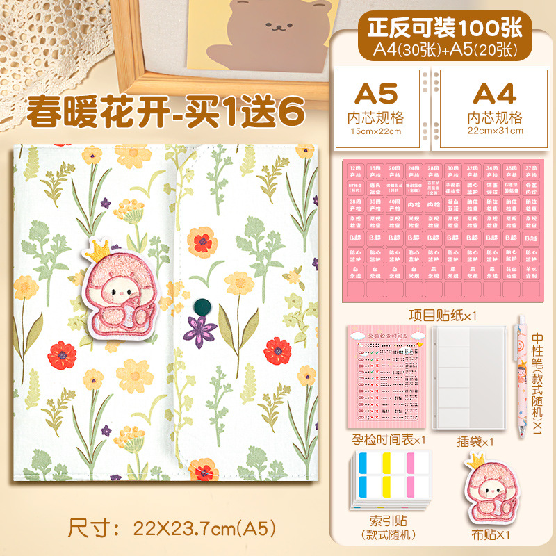 A5布艺孕检收纳册孕检报告单蛇宝宝怀孕活页检查单便携文件夹批发