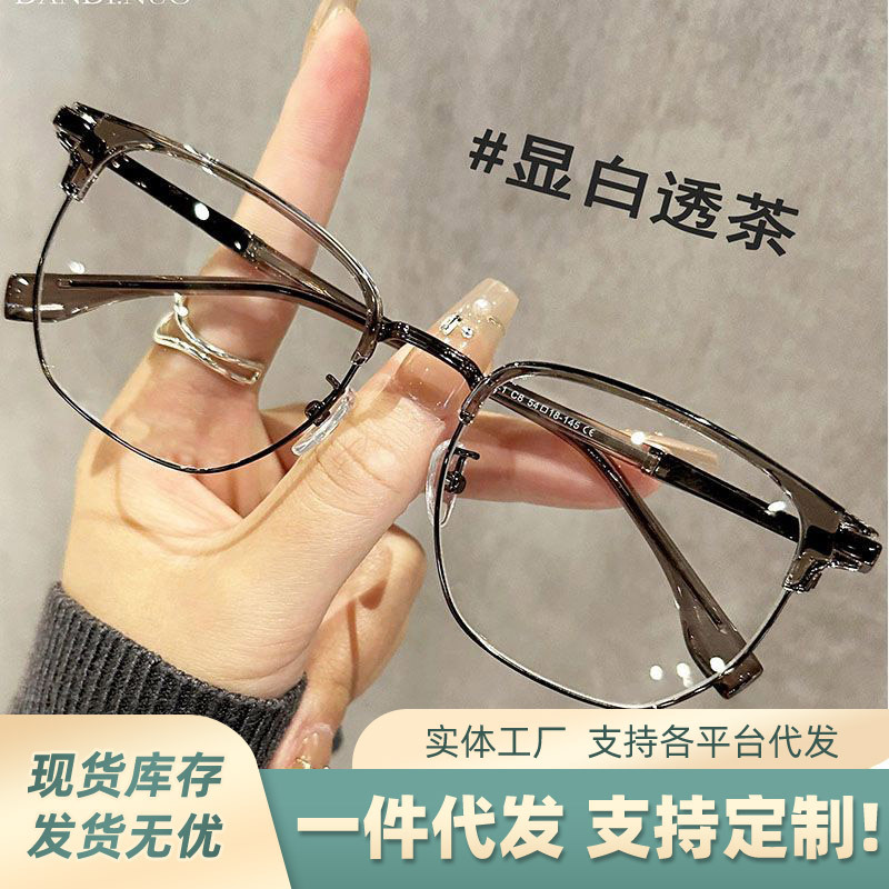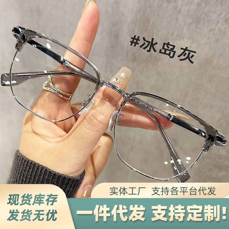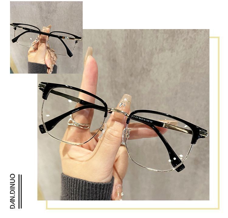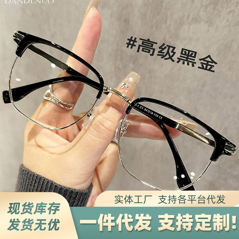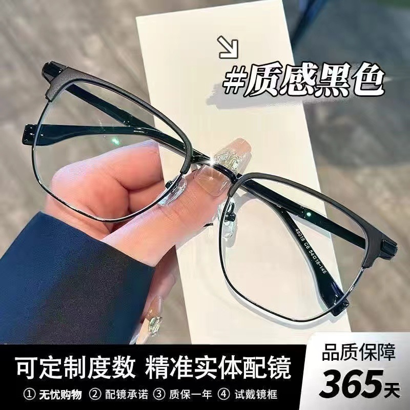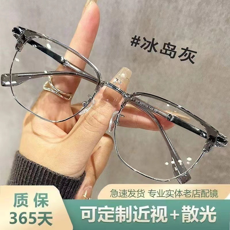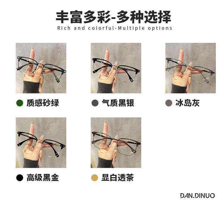 复古半框近视眼镜男款痞帅大脸超轻眼睛镜架女防蓝光可配度数镜片