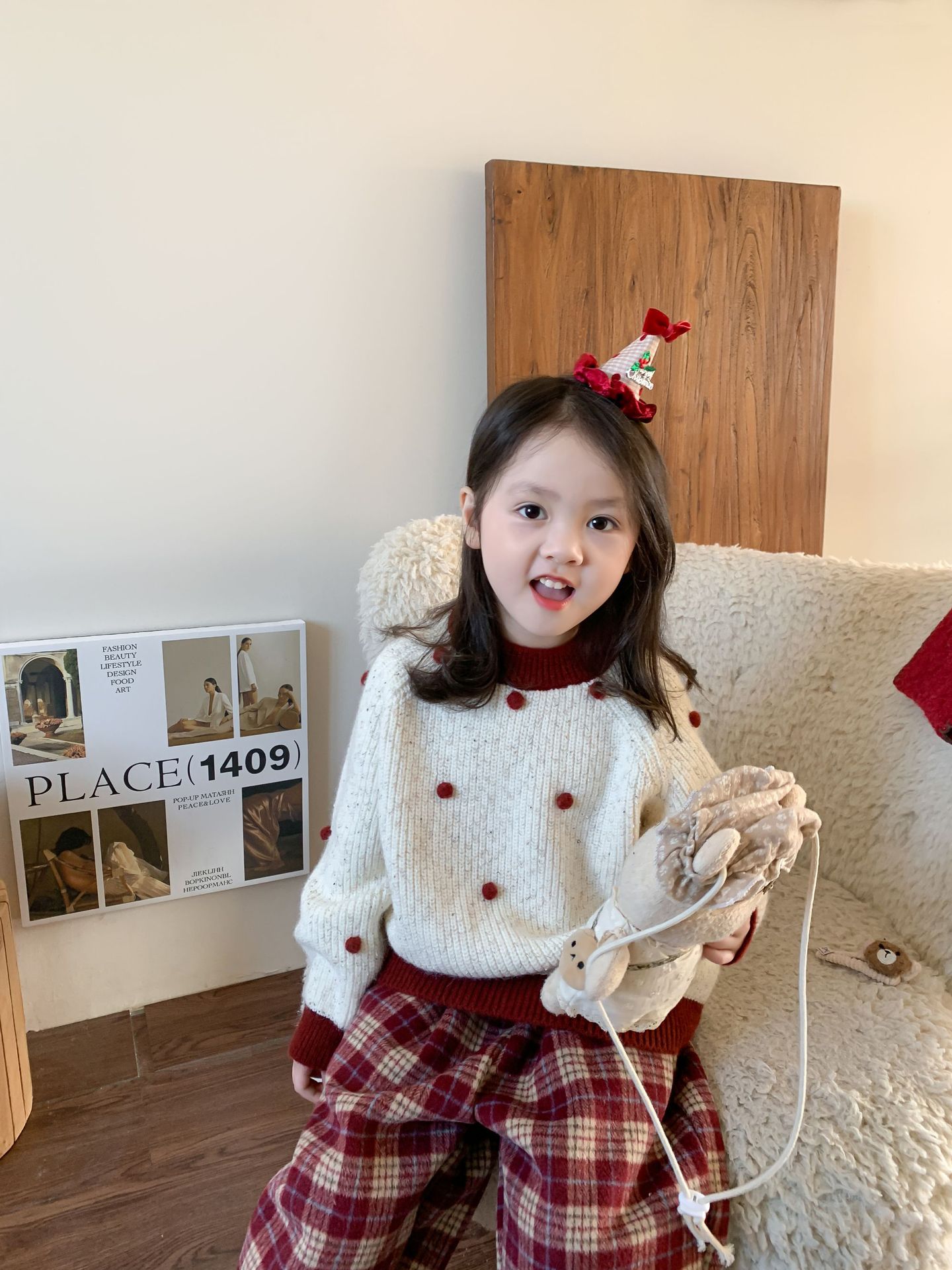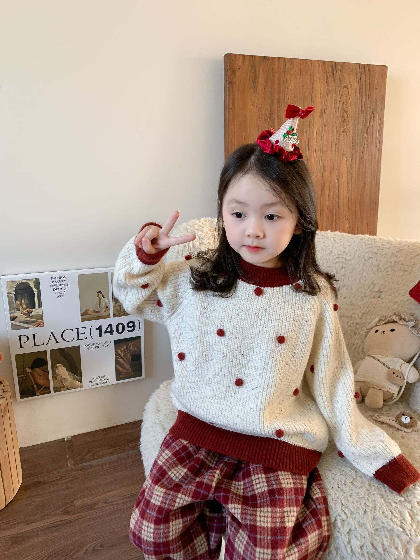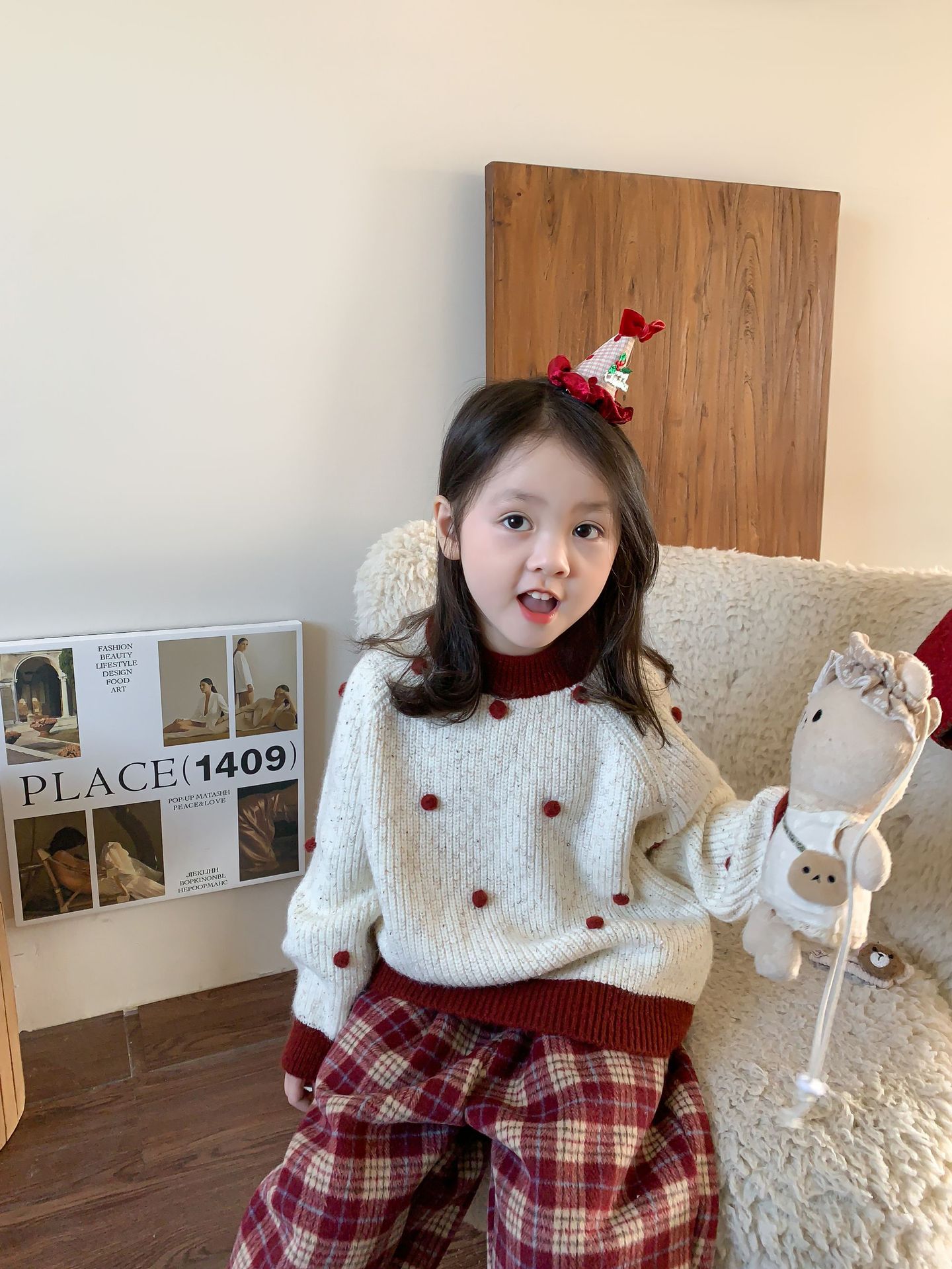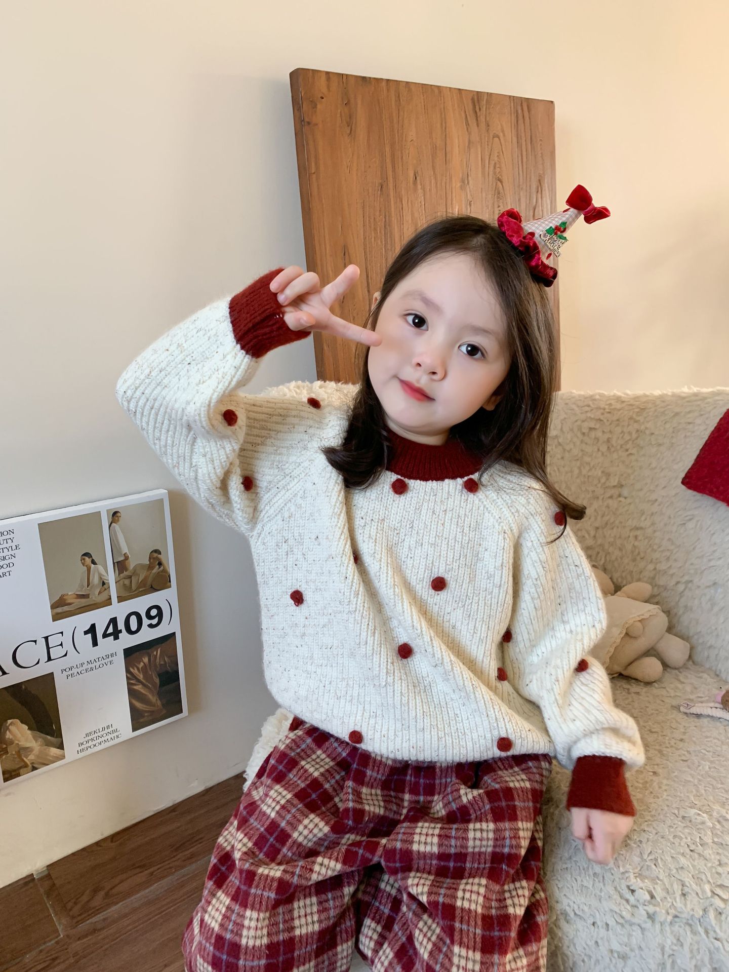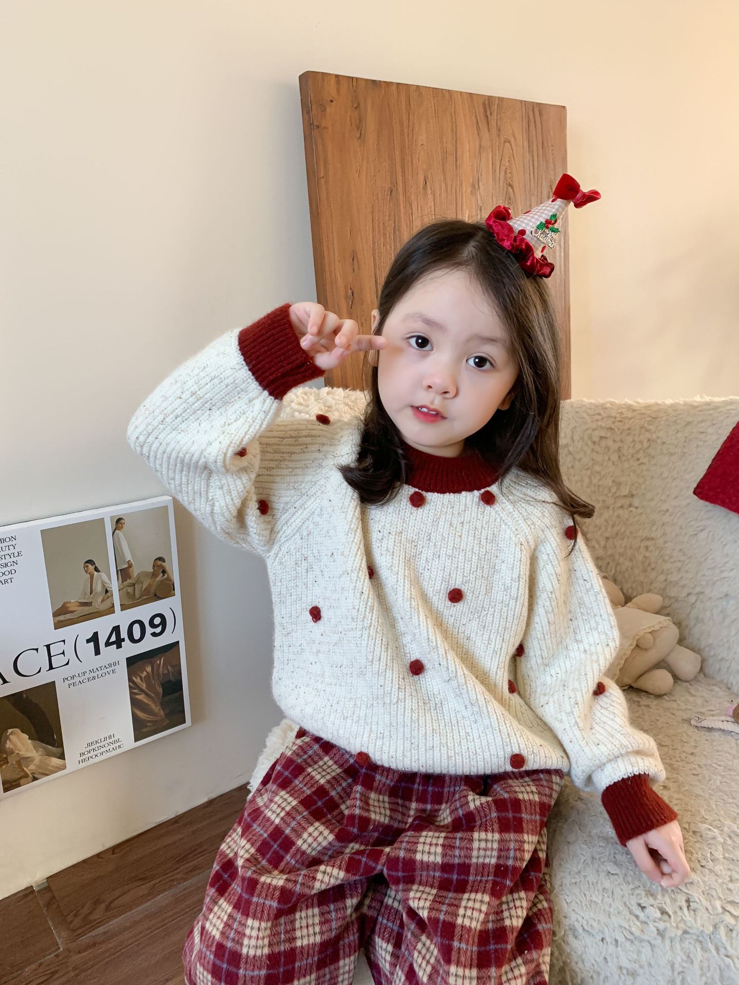 维木童装2024新款女童加厚撞色毛衣女宝宝圣诞衣服红色休闲过年服