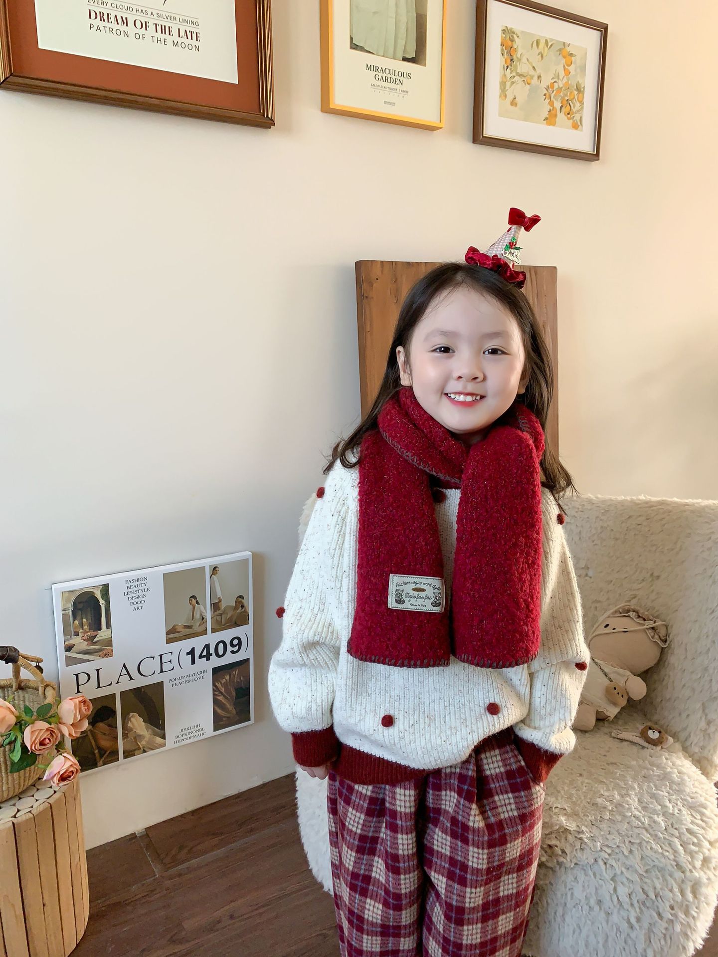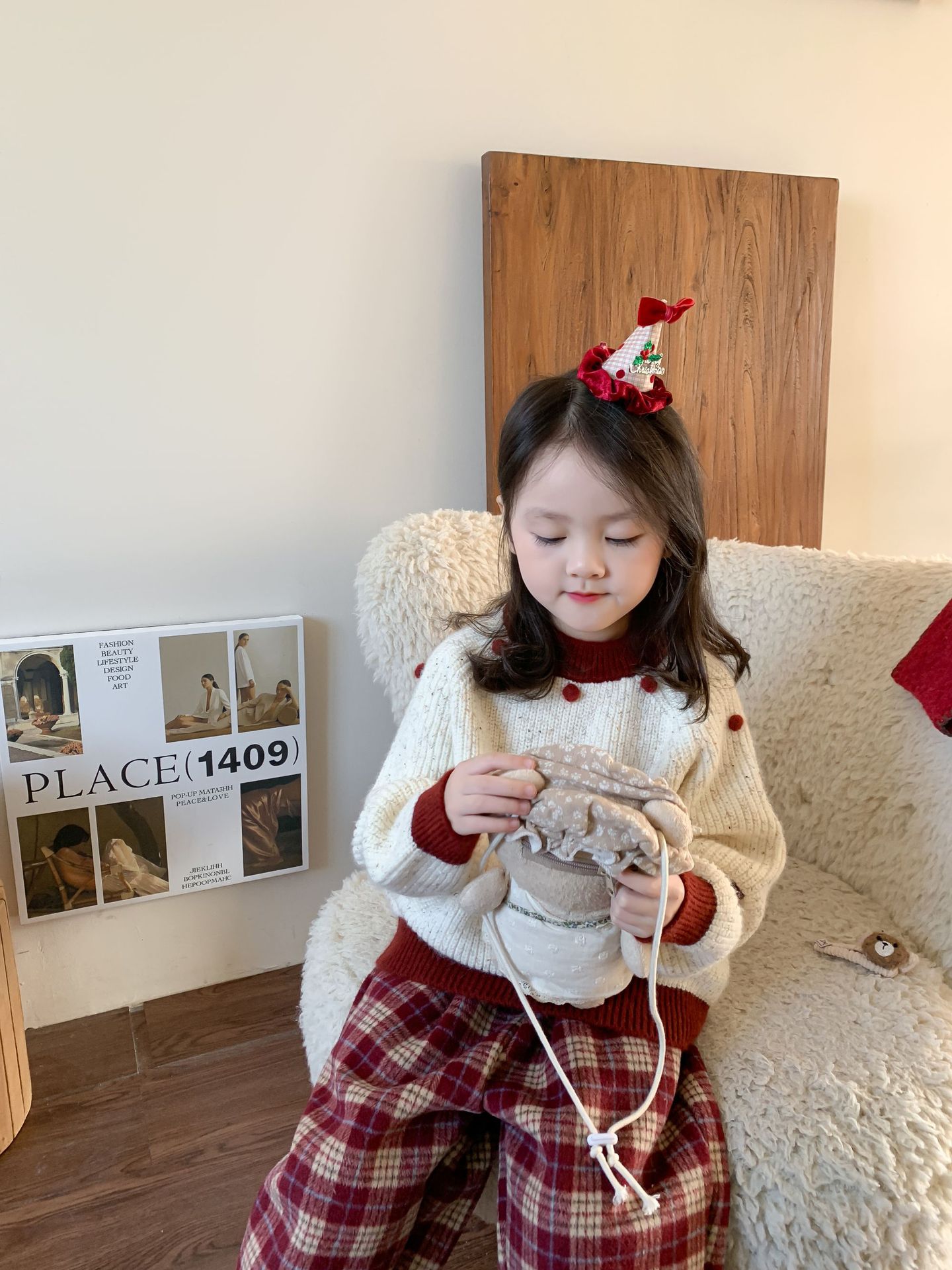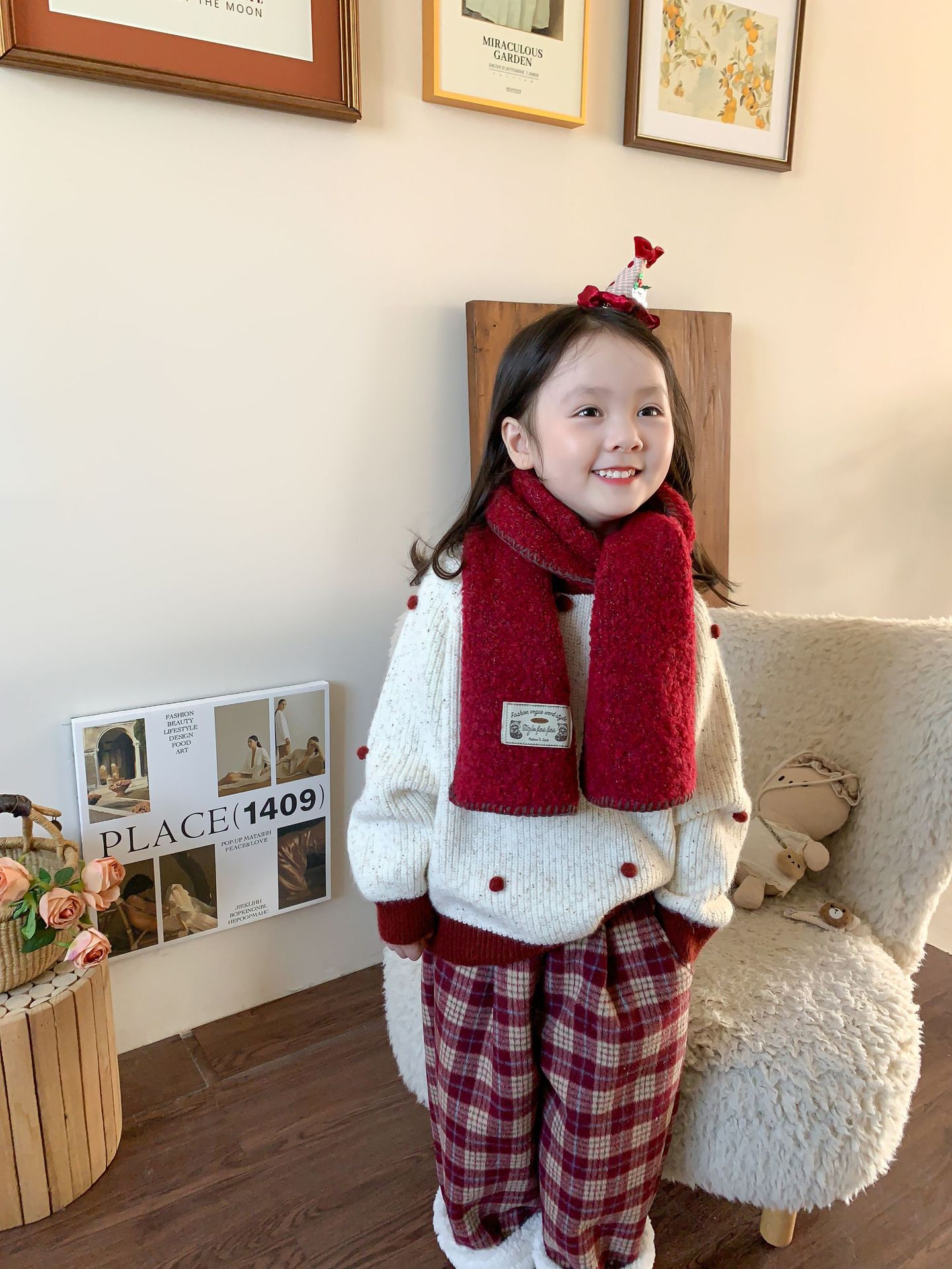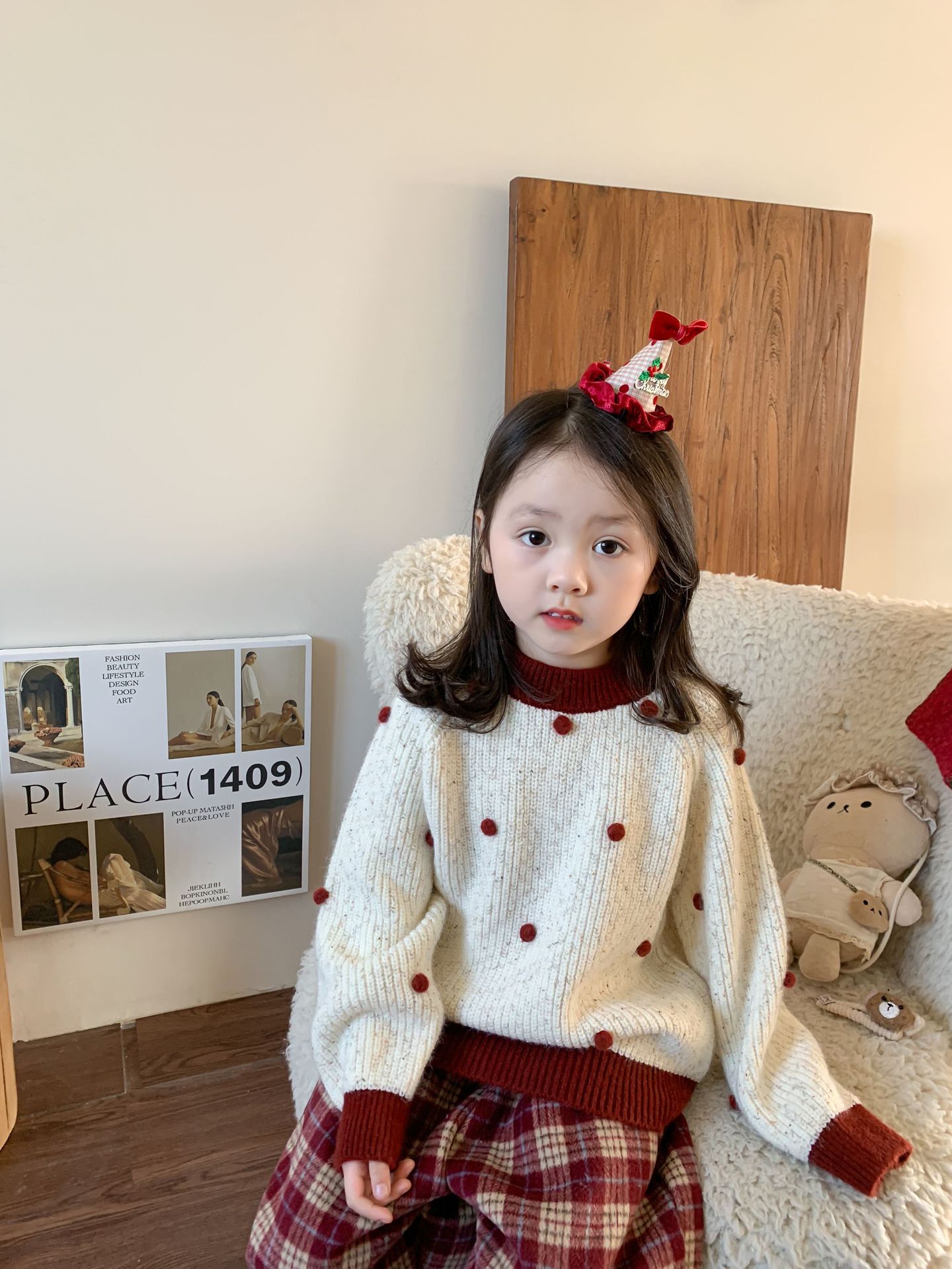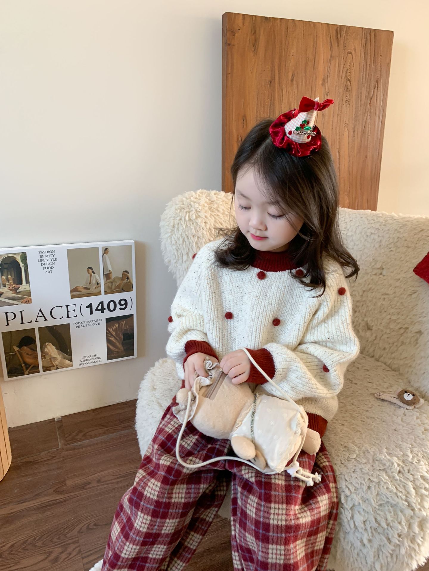 维木童装2024新款女童加厚撞色毛衣女宝宝圣诞衣服红色休闲过年服