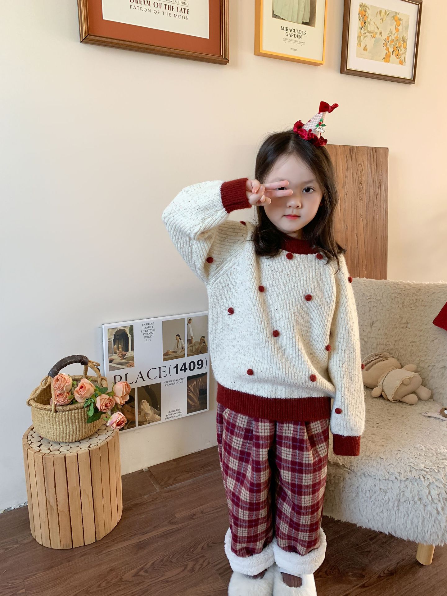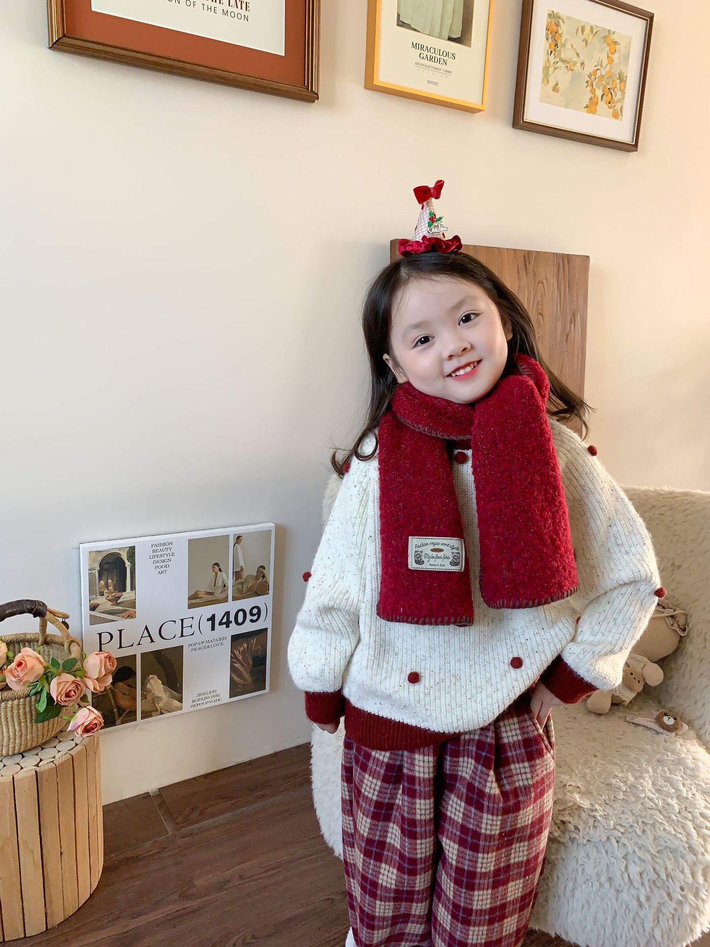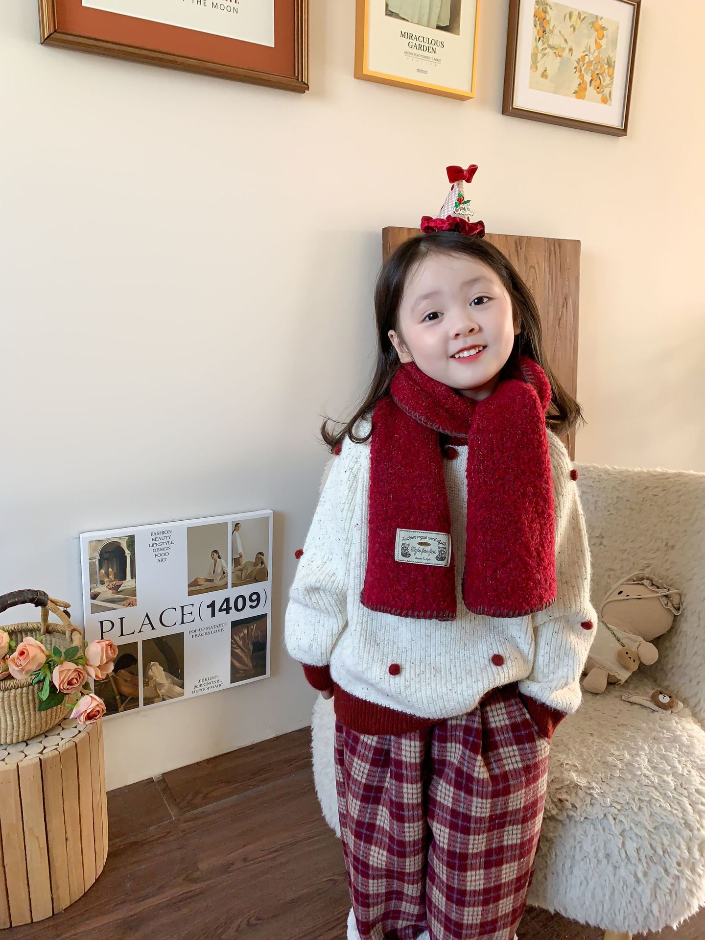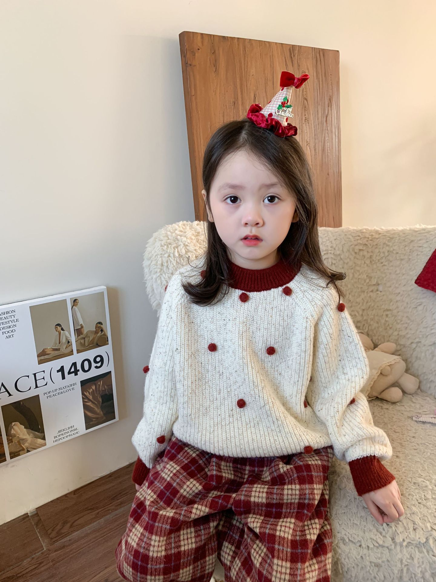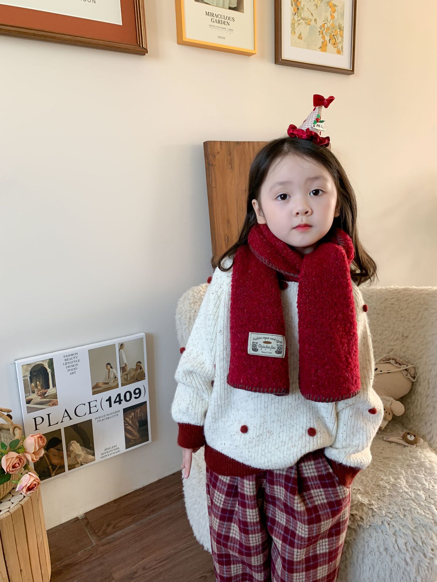 维木童装2024新款女童加厚撞色毛衣女宝宝圣诞衣服红色休闲过年服