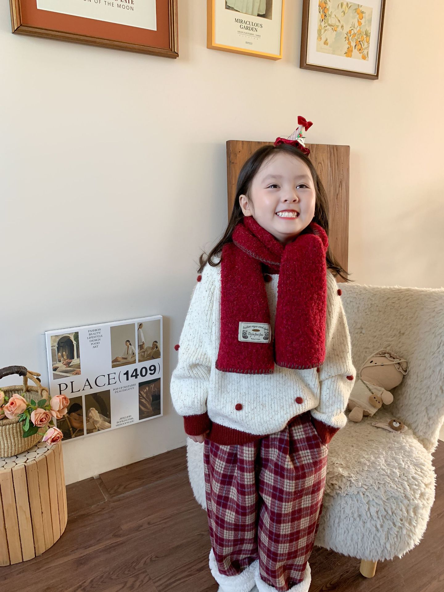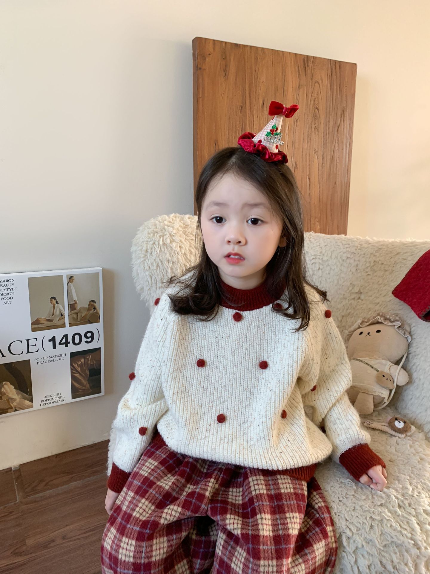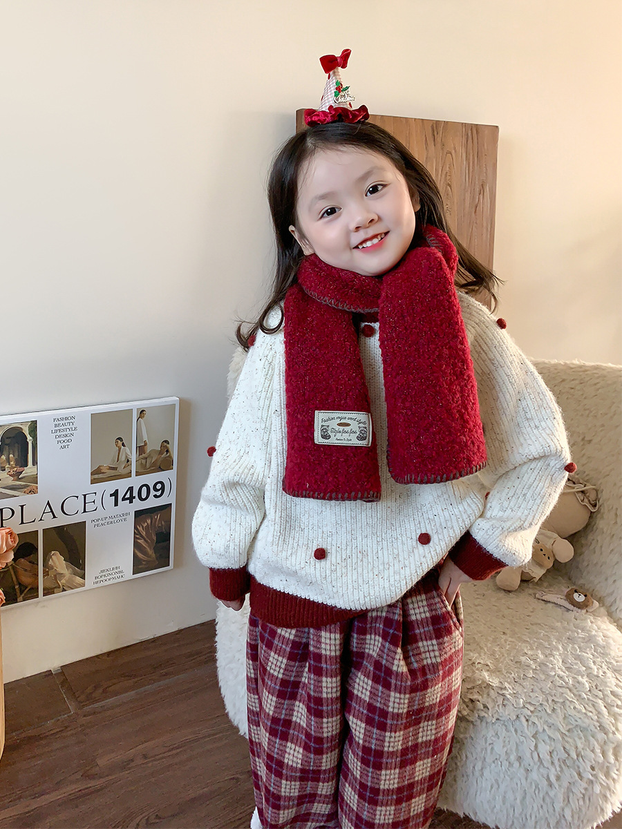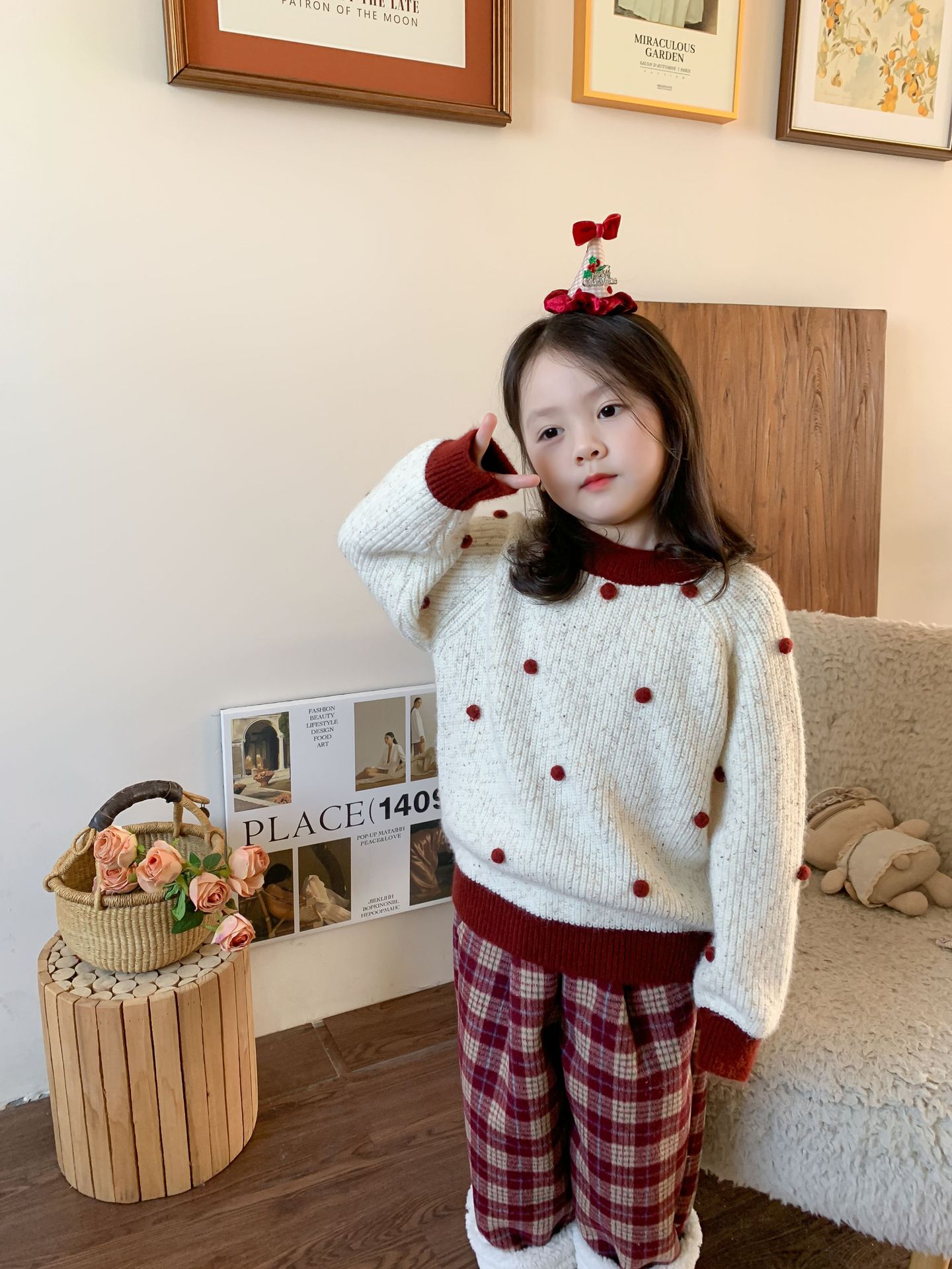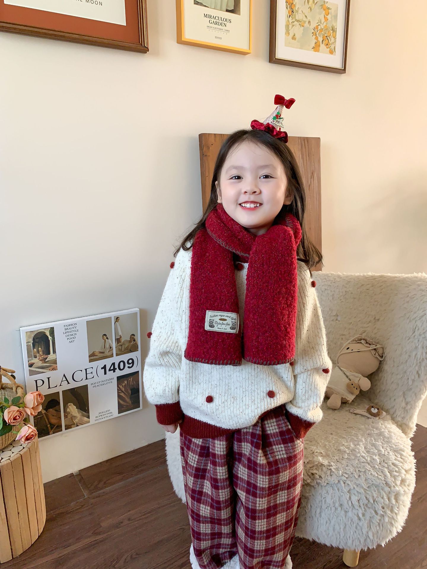 维木童装2024新款女童加厚撞色毛衣女宝宝圣诞衣服红色休闲过年服
