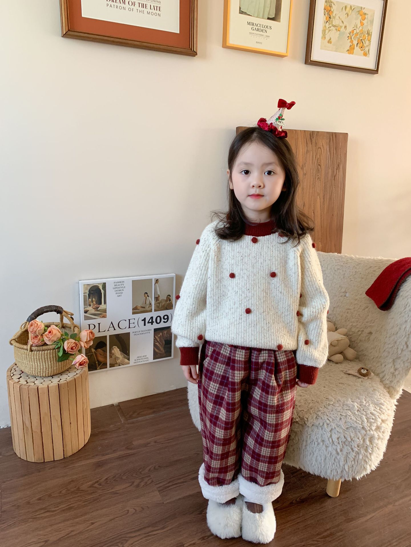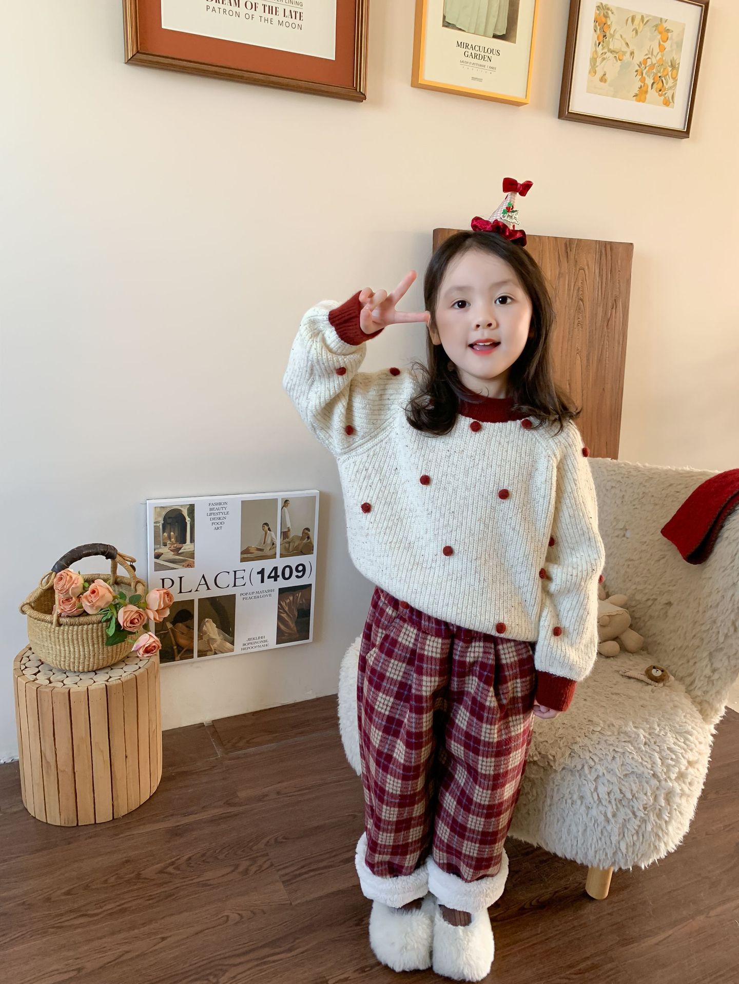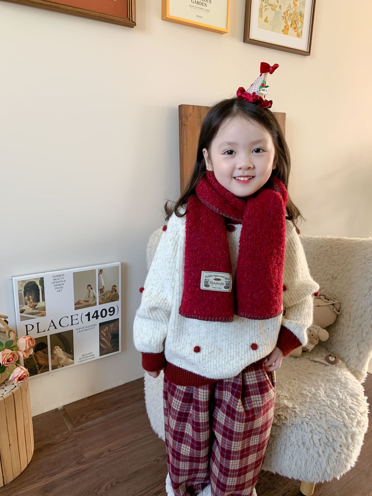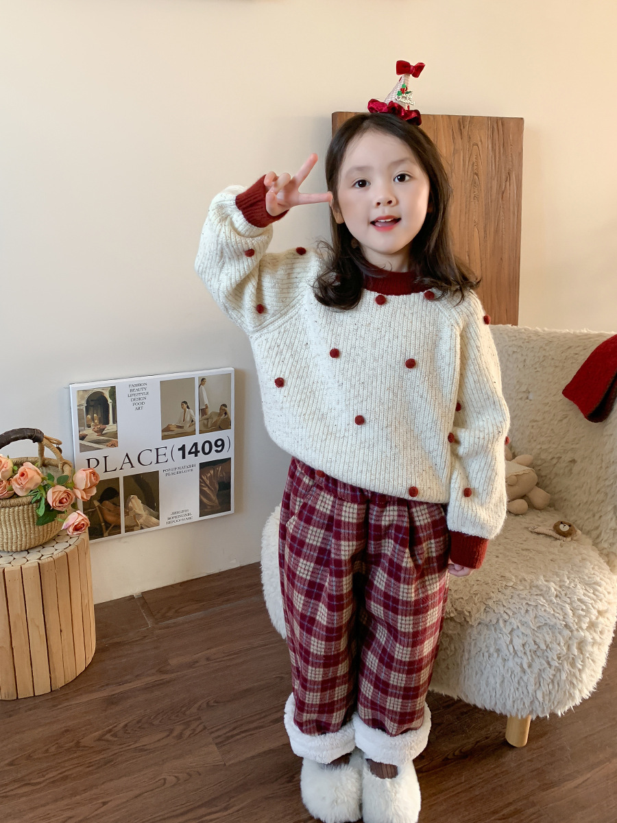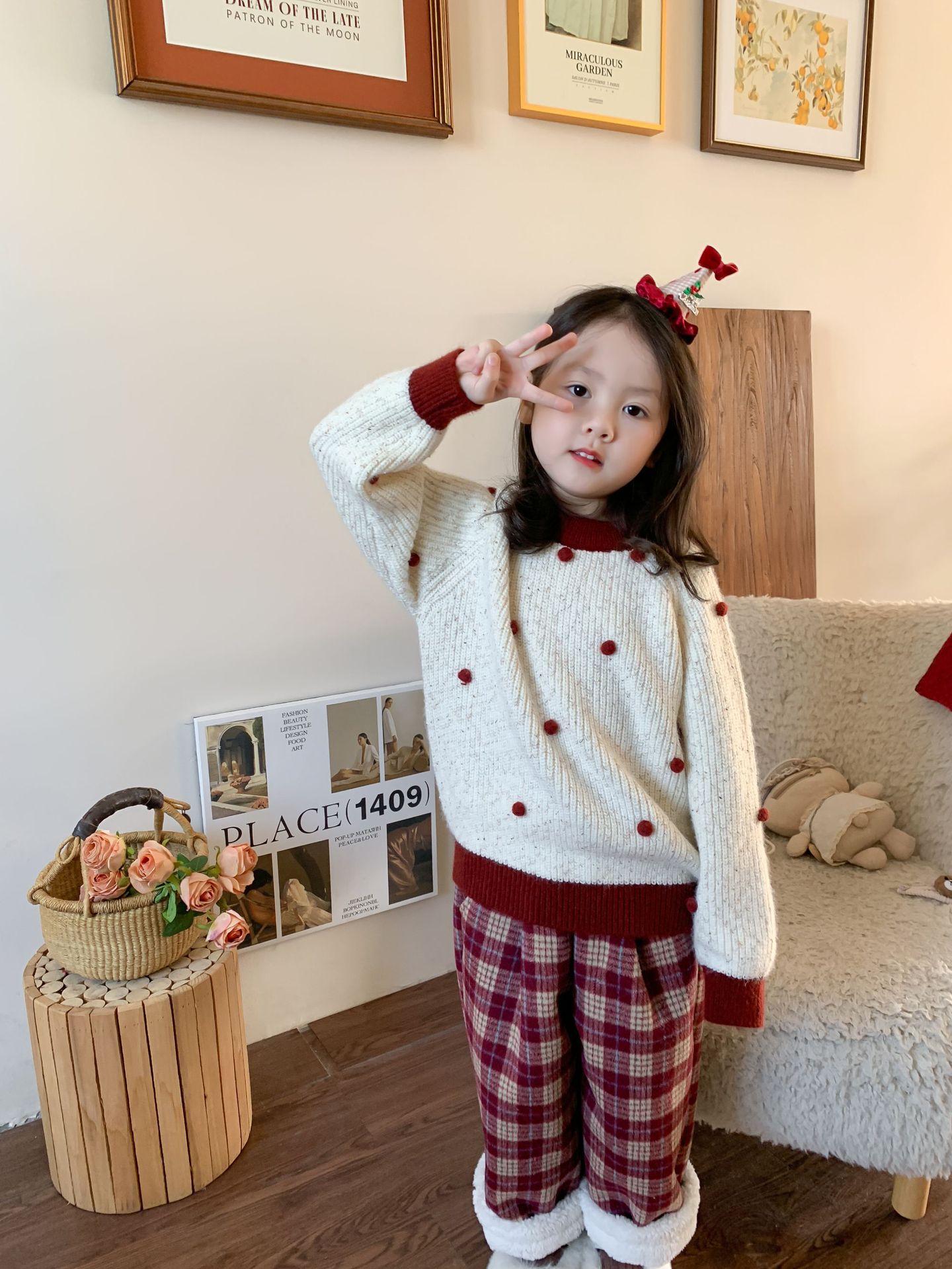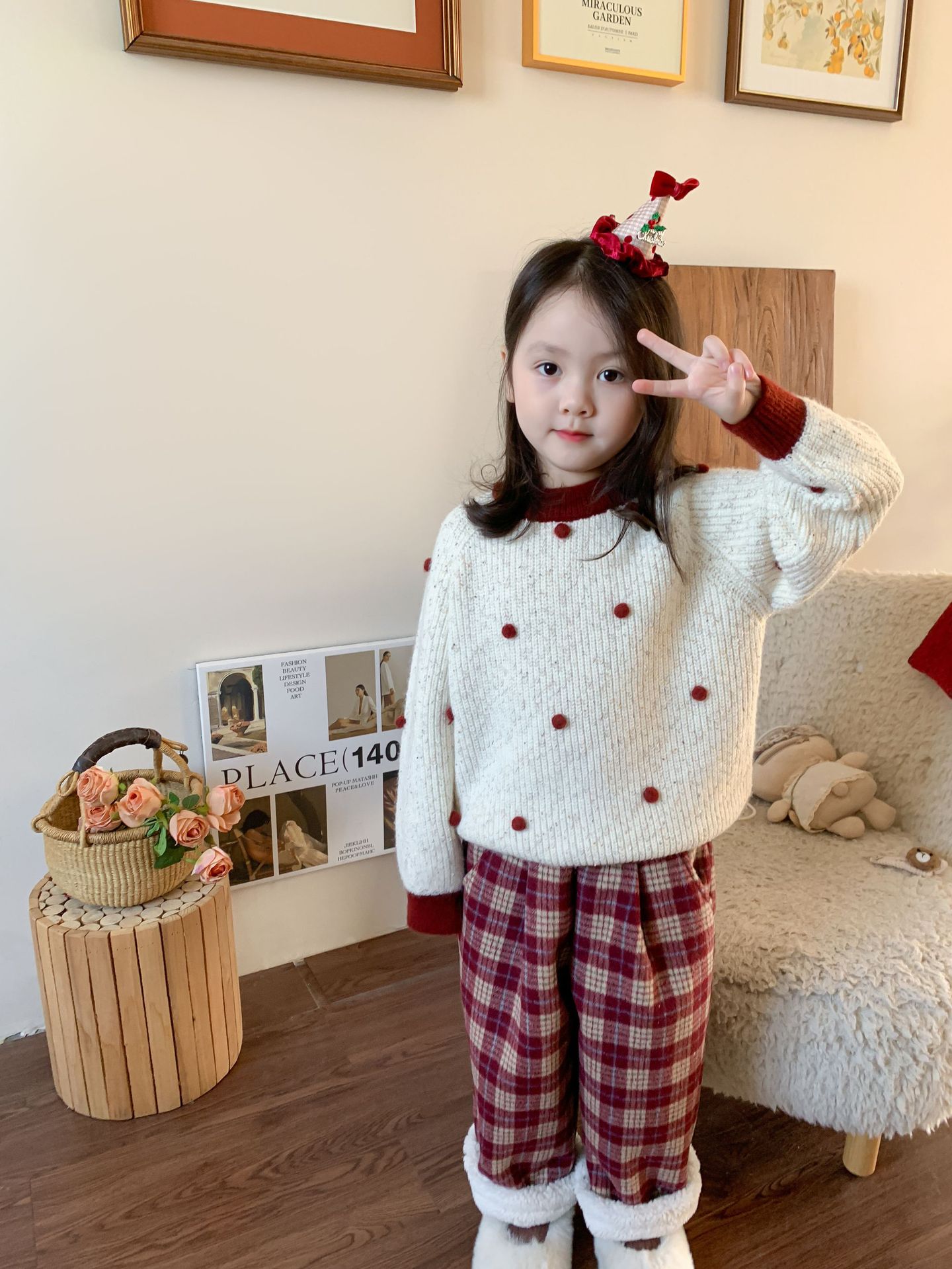 维木童装2024新款女童加厚撞色毛衣女宝宝圣诞衣服红色休闲过年服