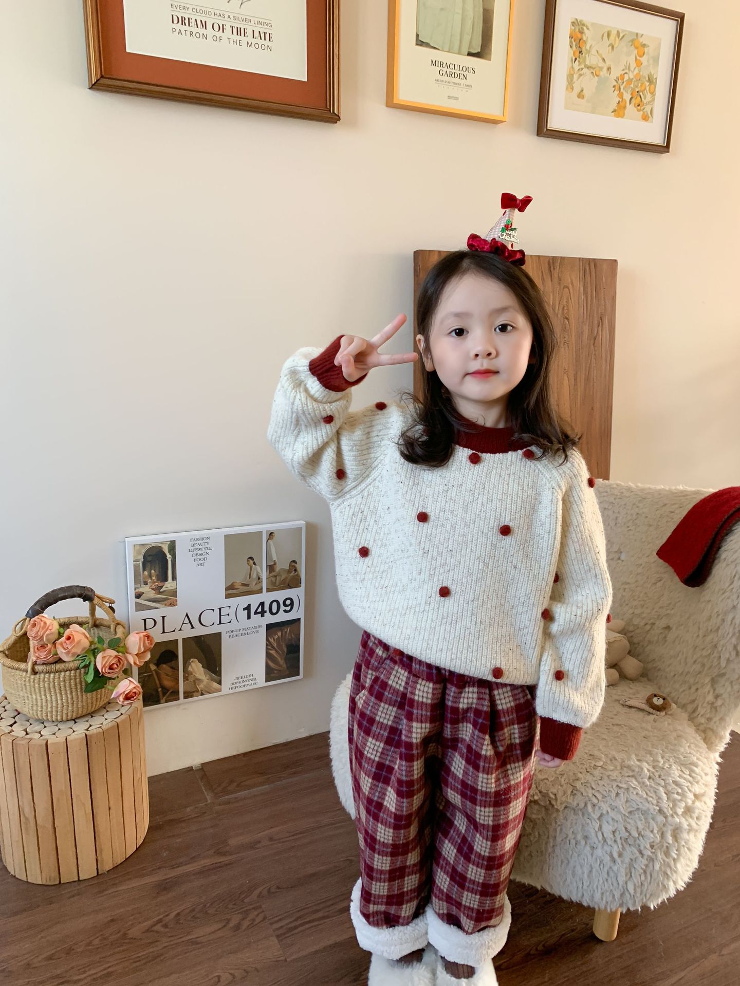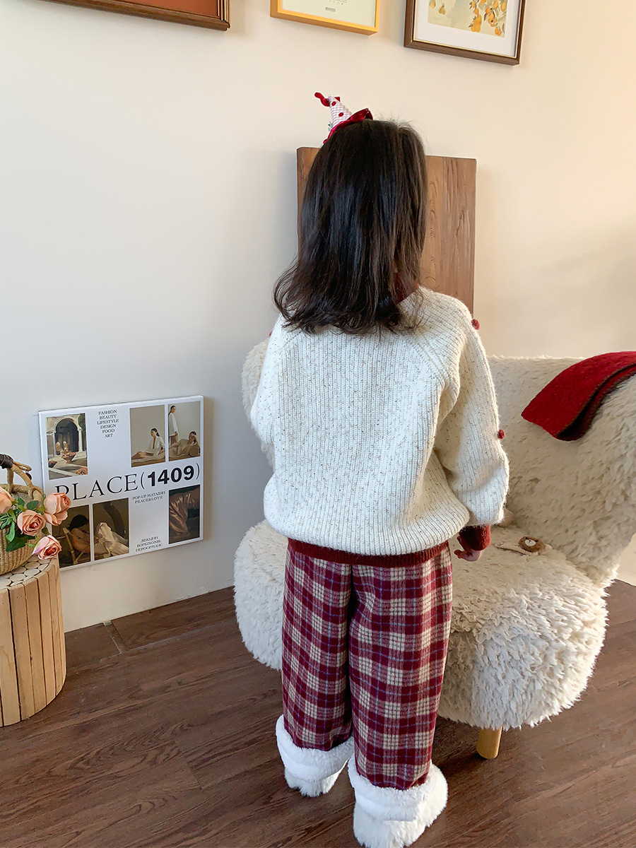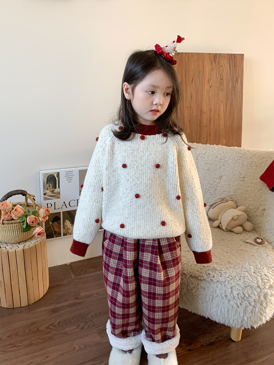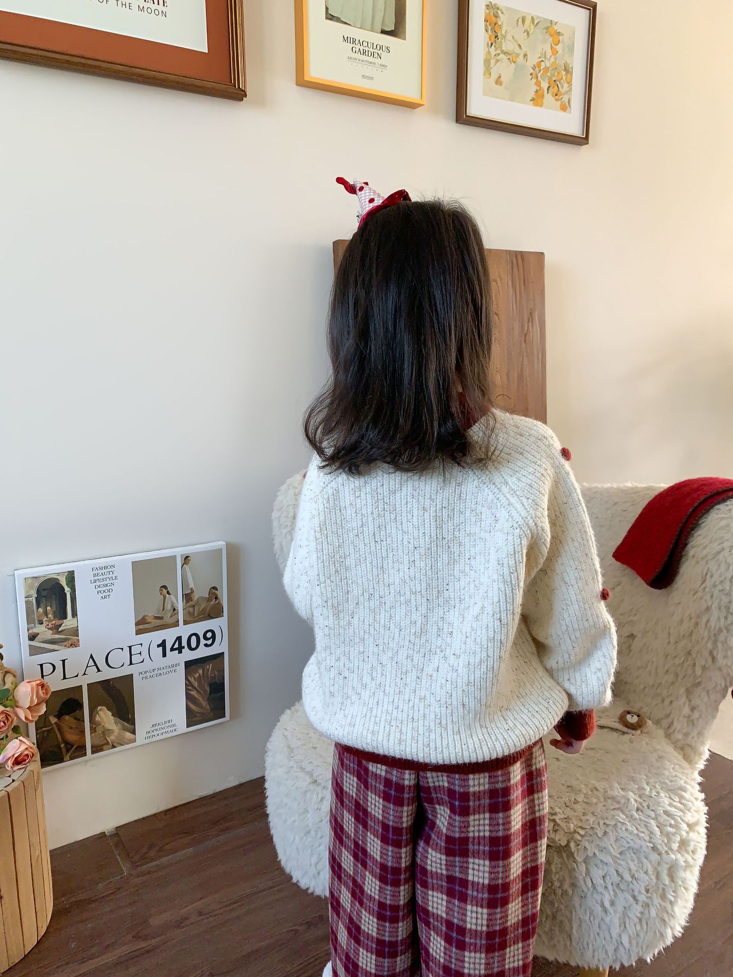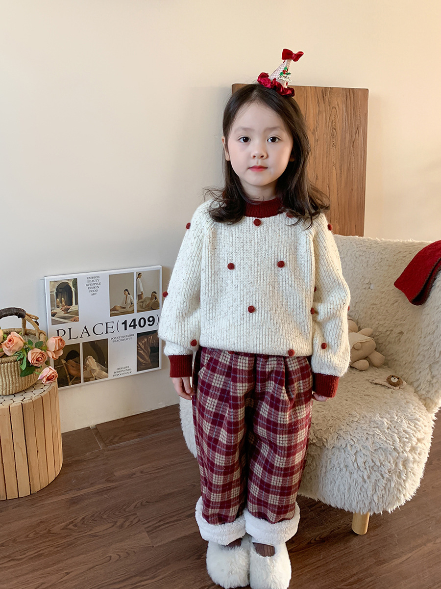维木童装2024新款女童加厚撞色毛衣女宝宝圣诞衣服红色休闲过年服