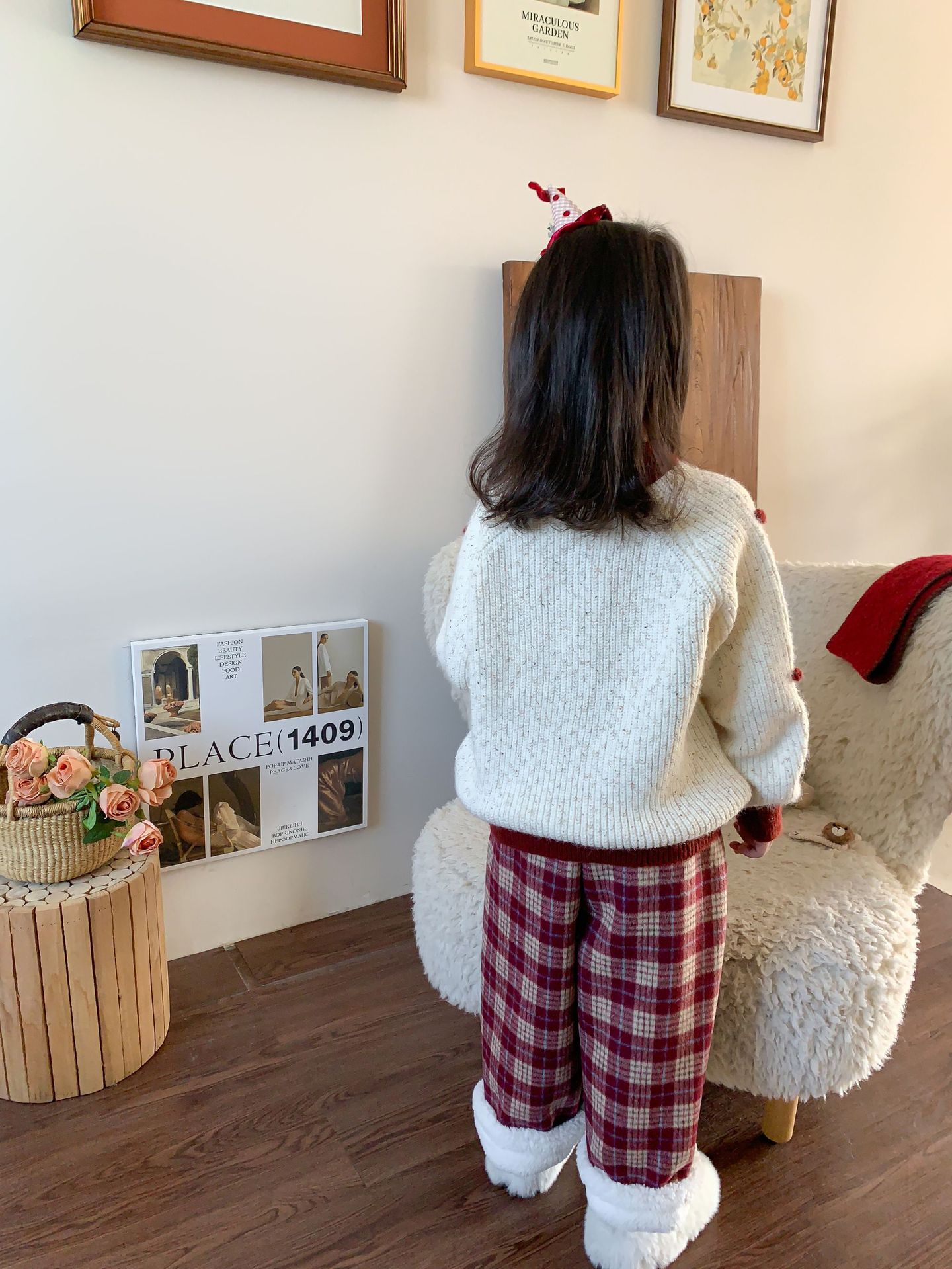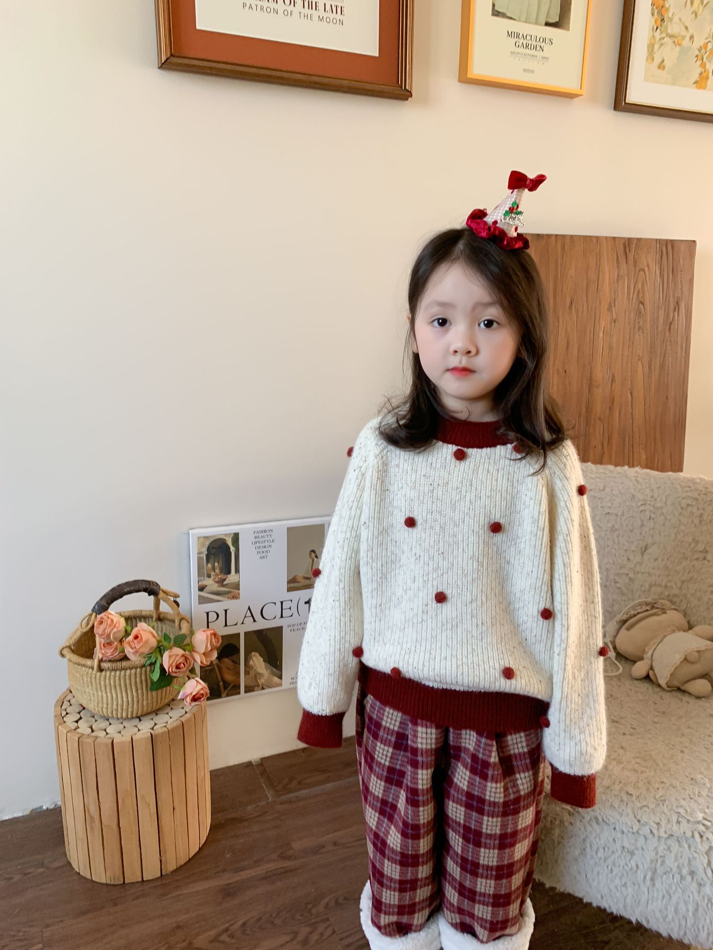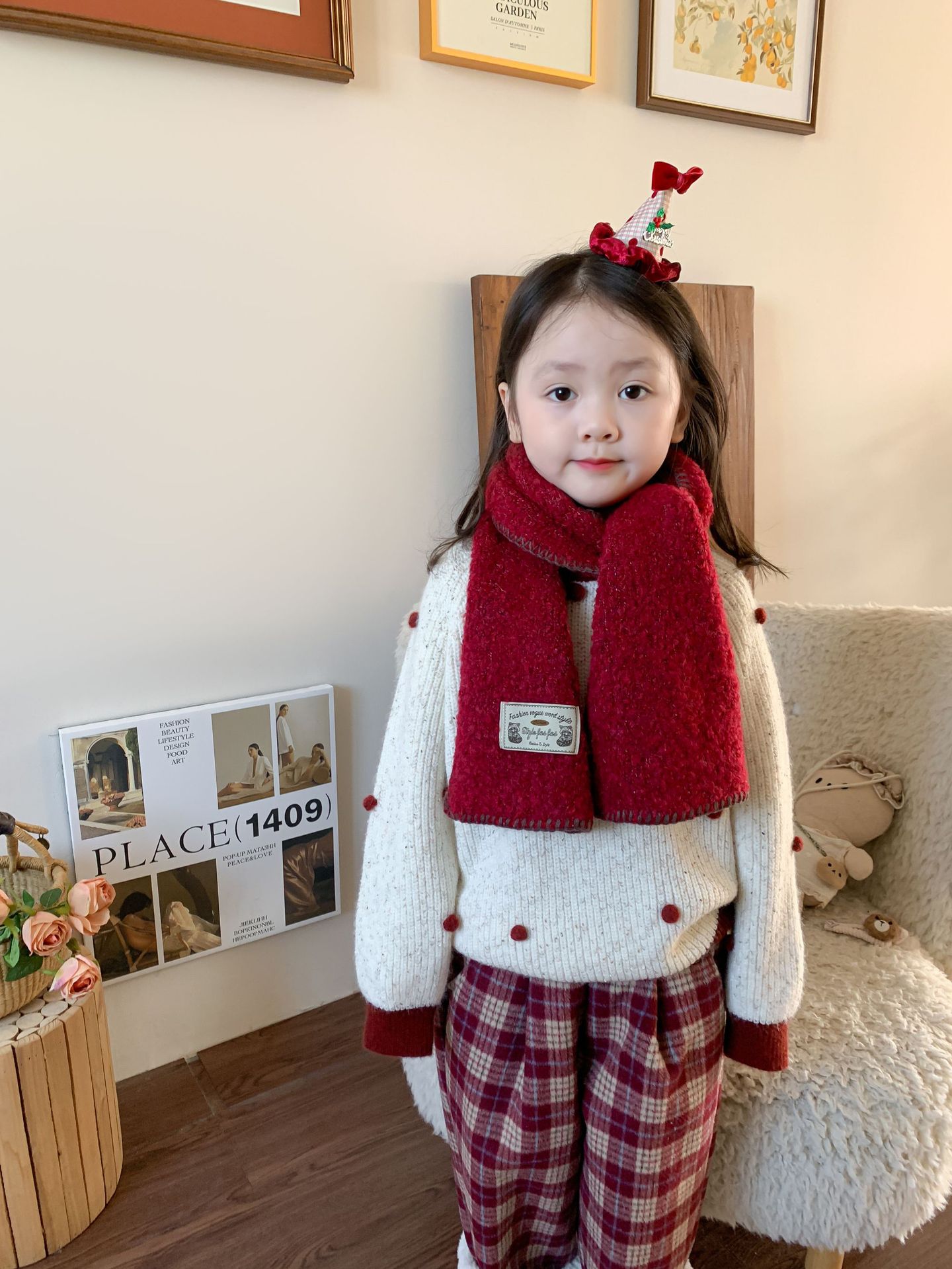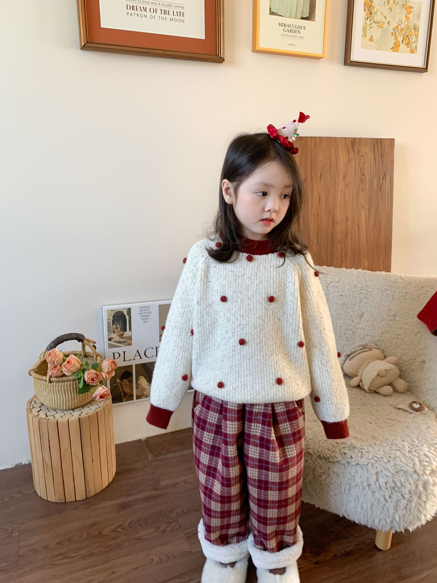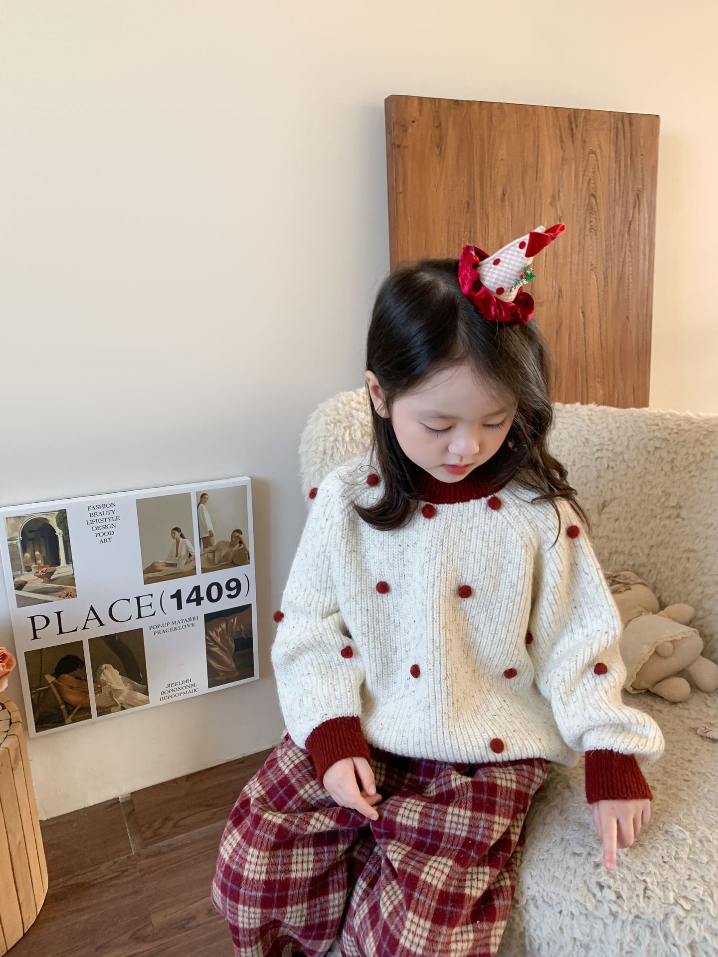 维木童装2024新款女童加厚撞色毛衣女宝宝圣诞衣服红色休闲过年服