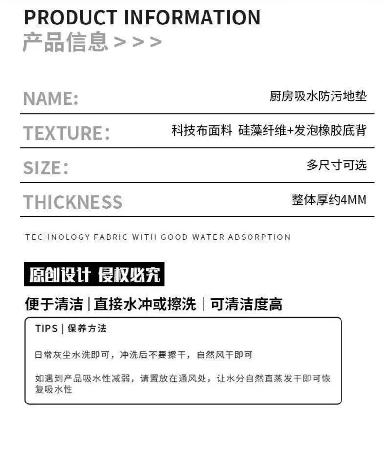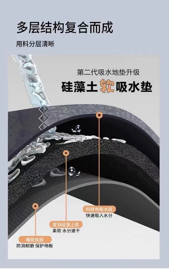 硅藻泥厨房专用地垫防滑垫吸油吸水耐脏速干垫卫生间茶几满铺地毯