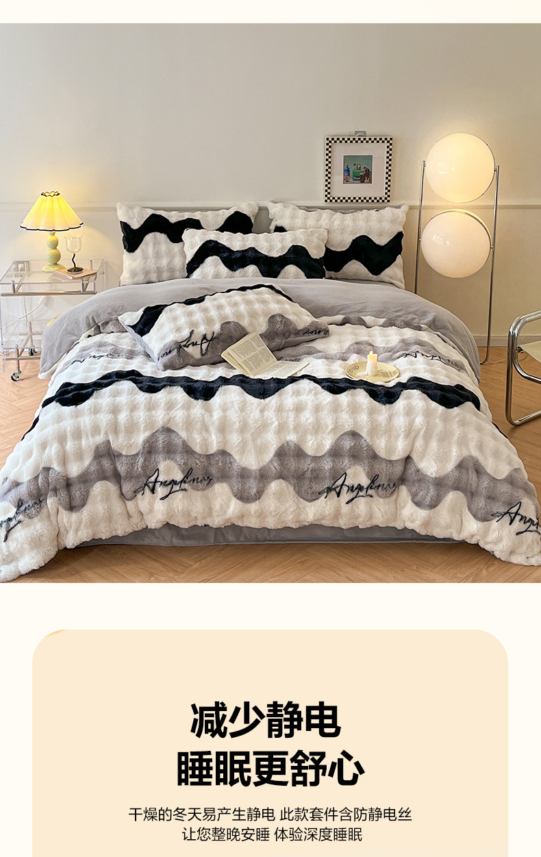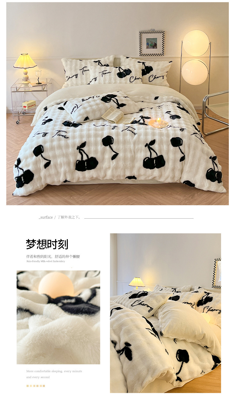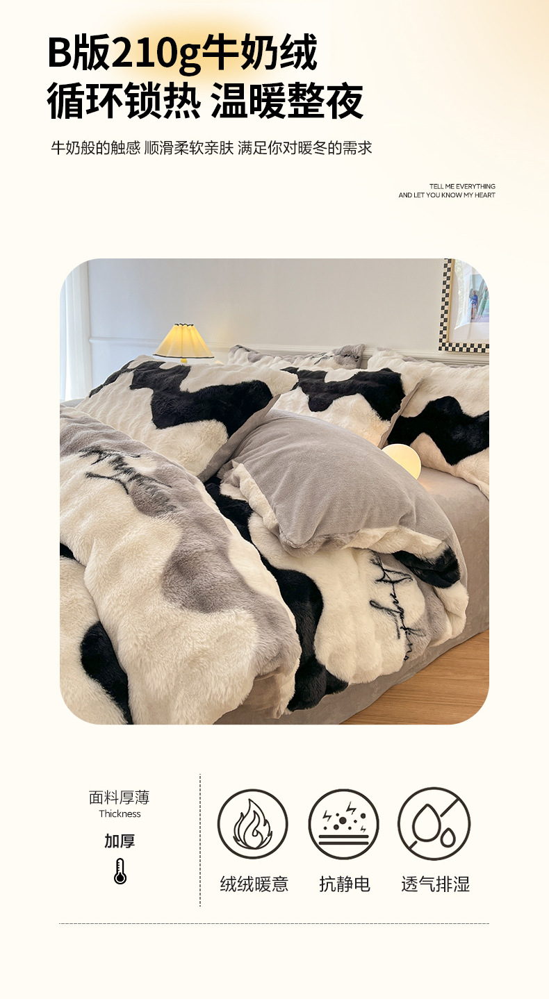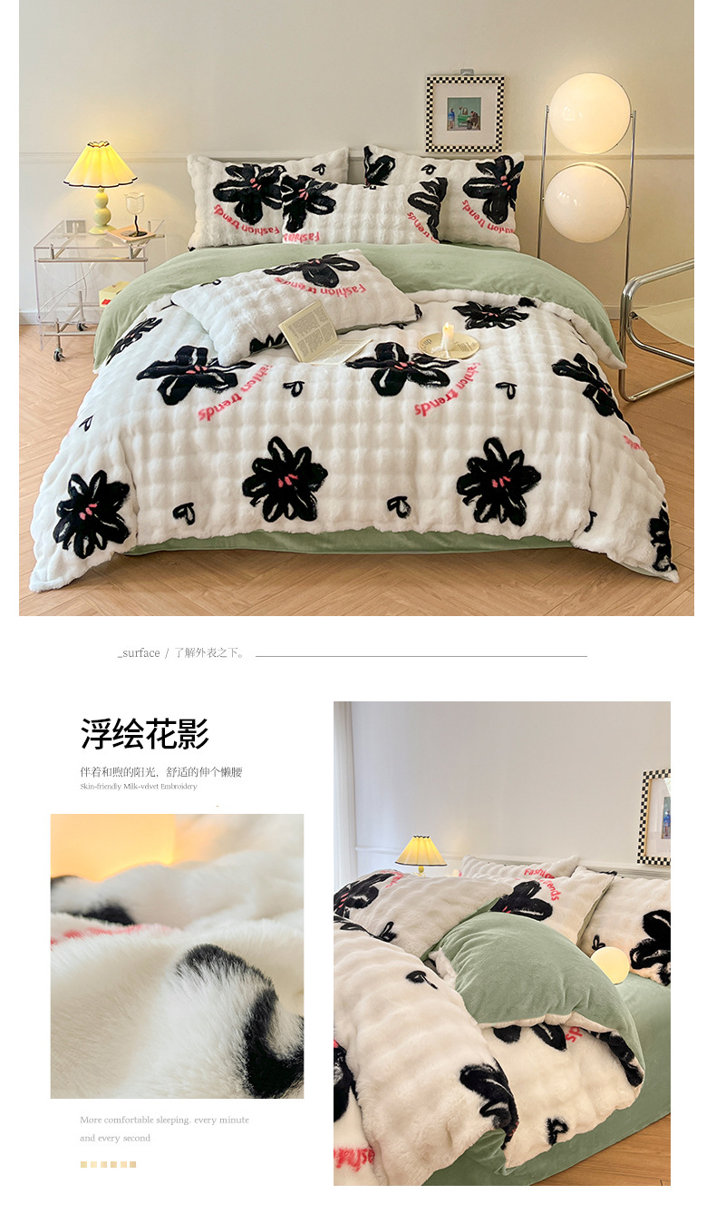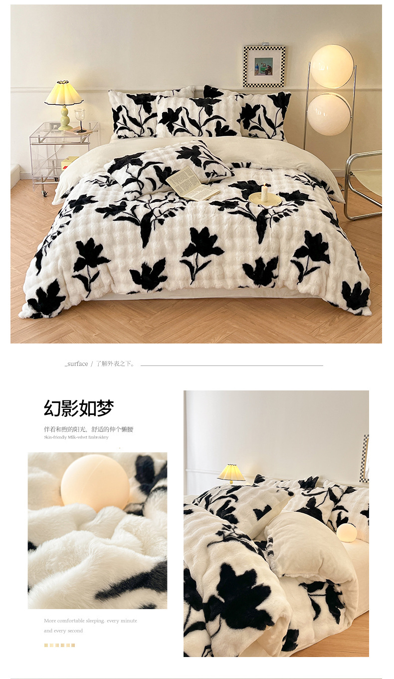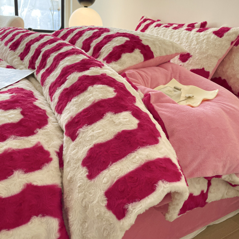 a类玫瑰多巴胺四件套高克重兔绒牛奶绒时尚加厚保暖秋冬新款床品4