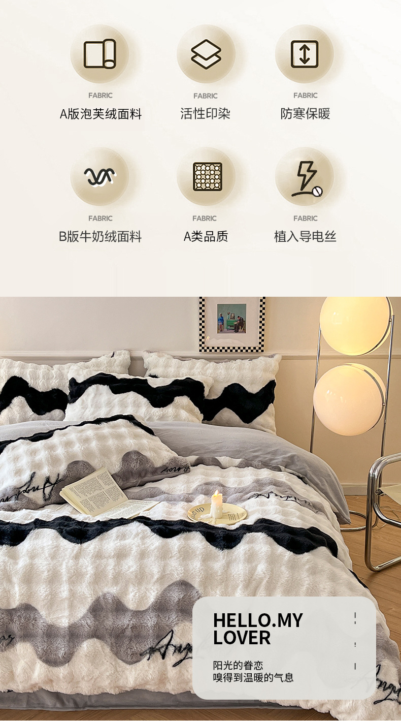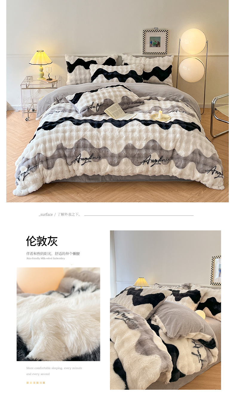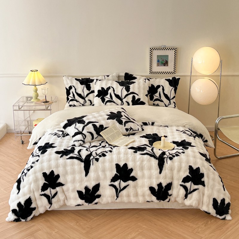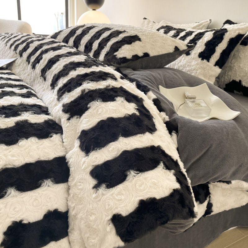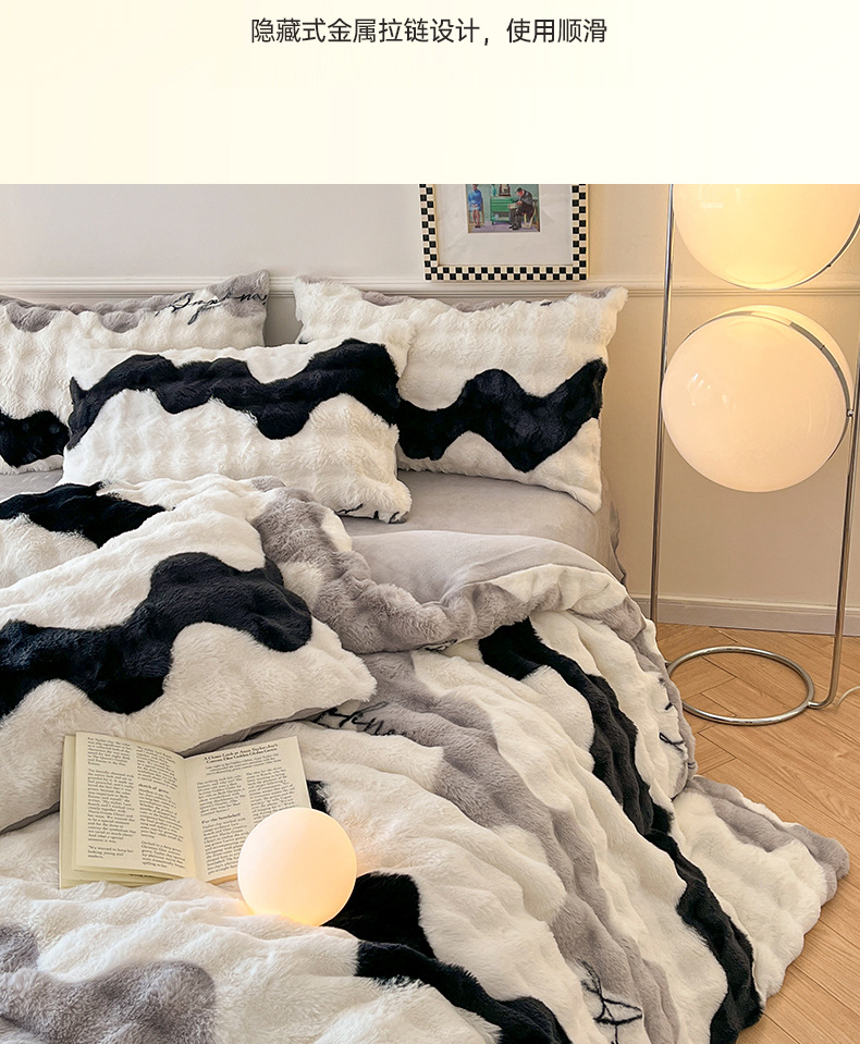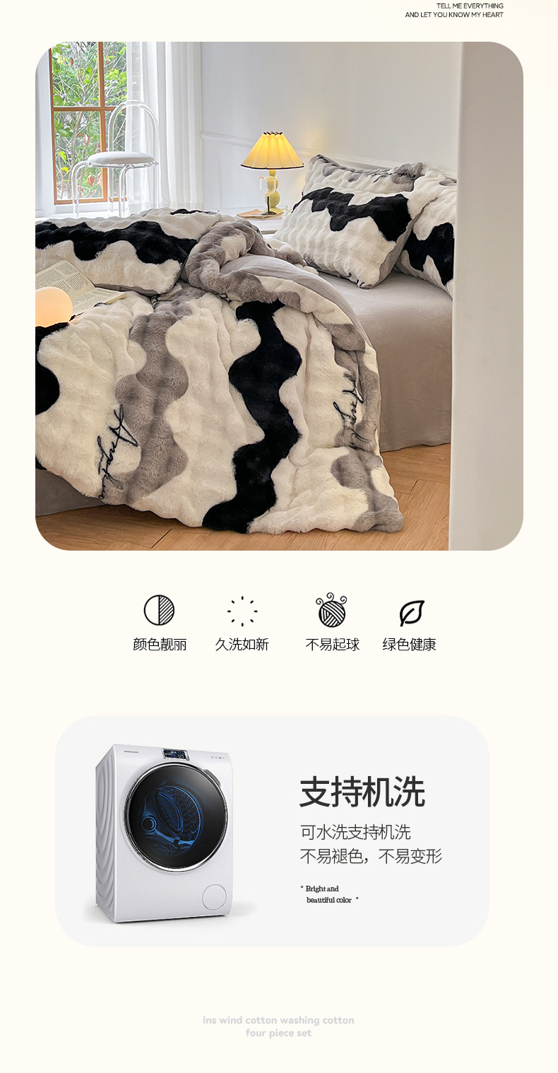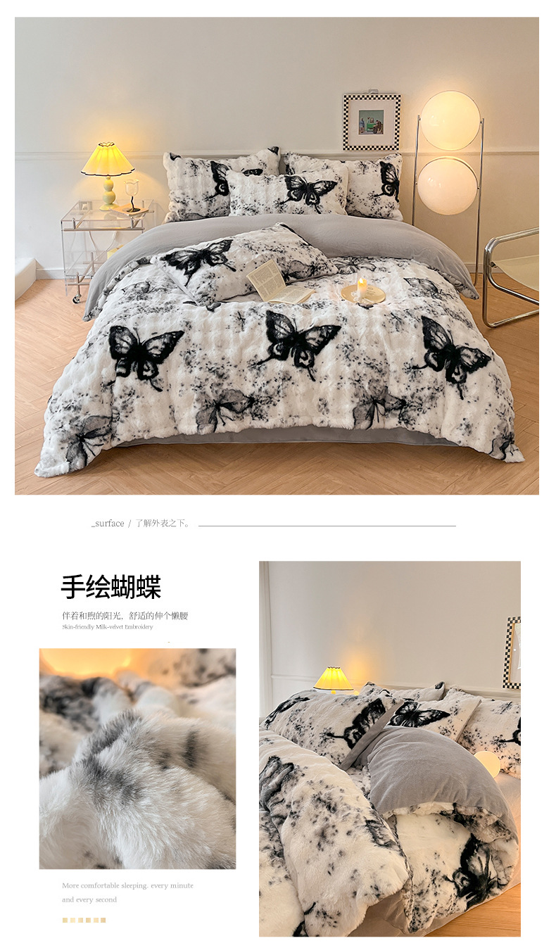 a类玫瑰多巴胺四件套高克重兔绒牛奶绒时尚加厚保暖秋冬新款床品4