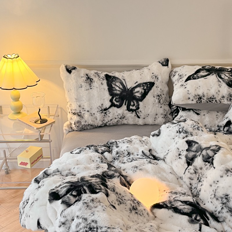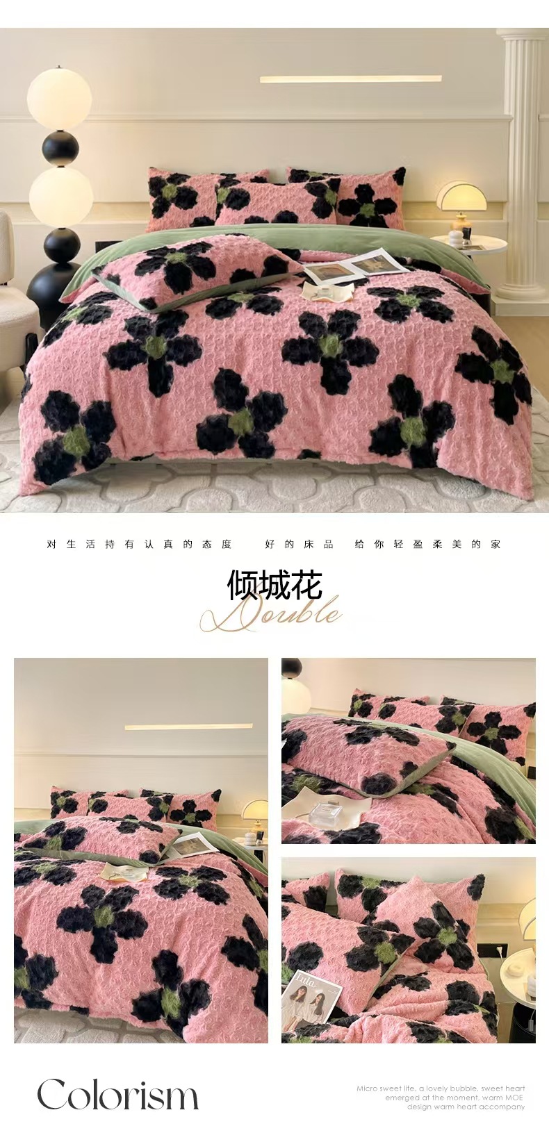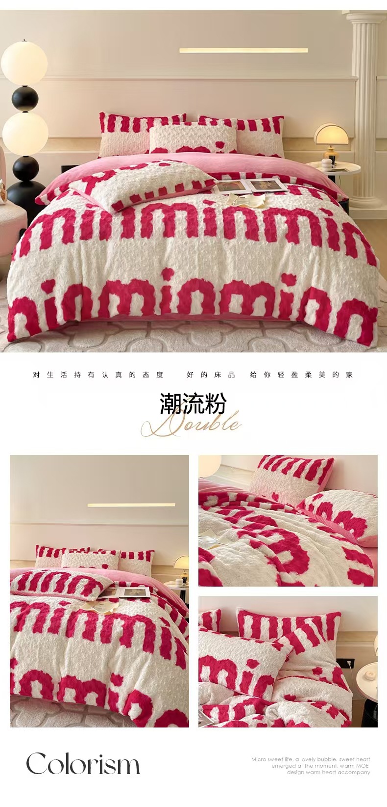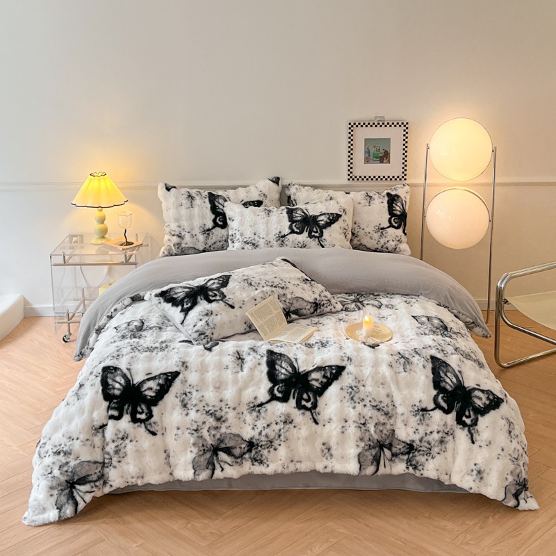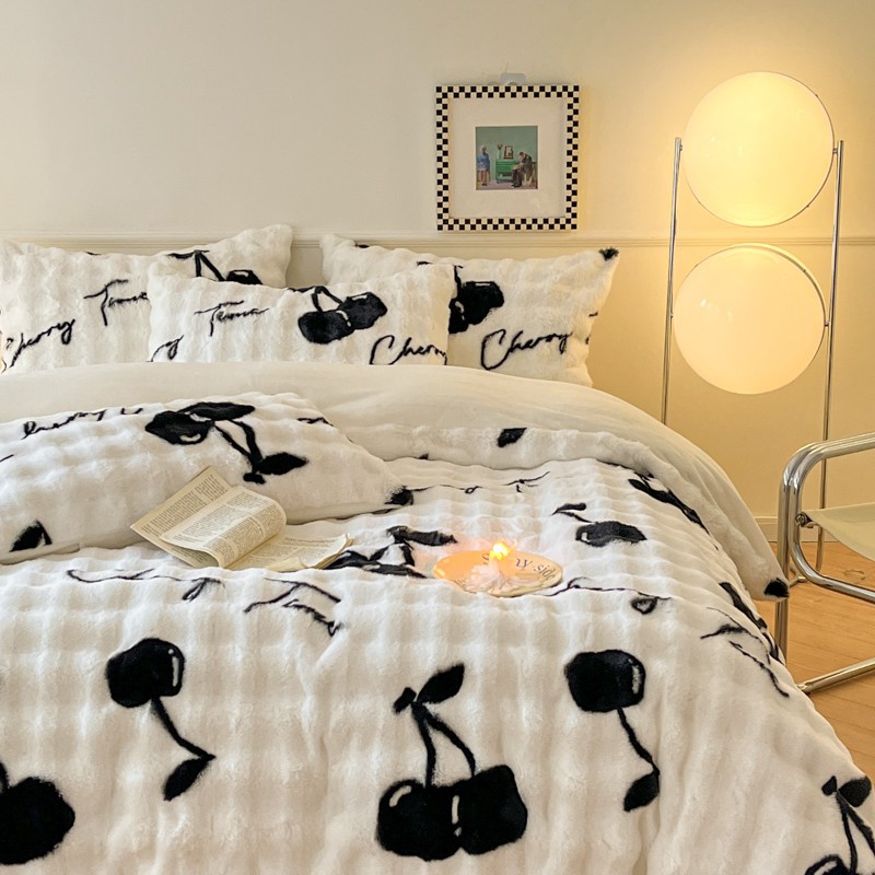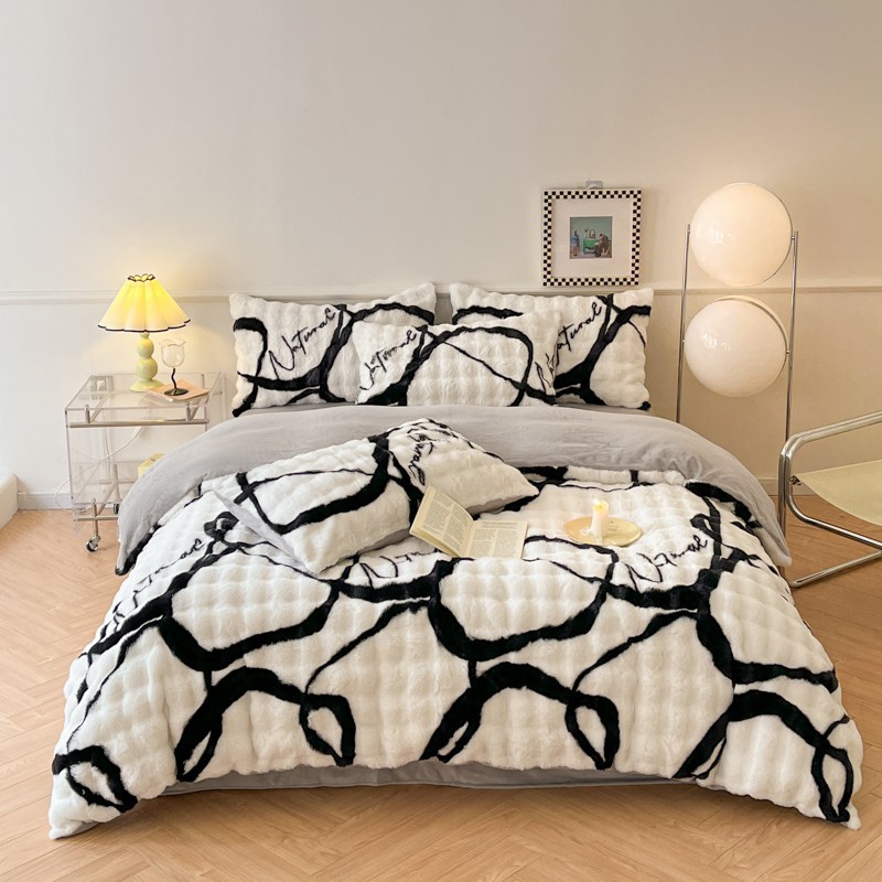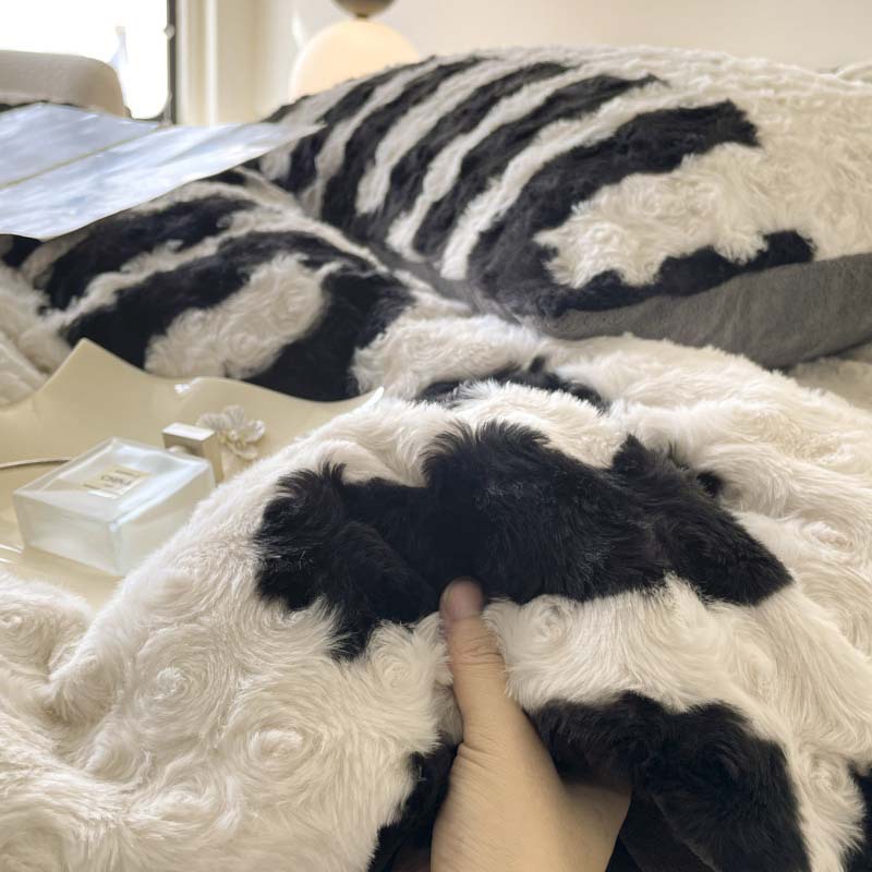 a类玫瑰多巴胺四件套高克重兔绒牛奶绒时尚加厚保暖秋冬新款床品4