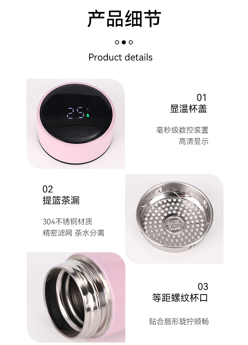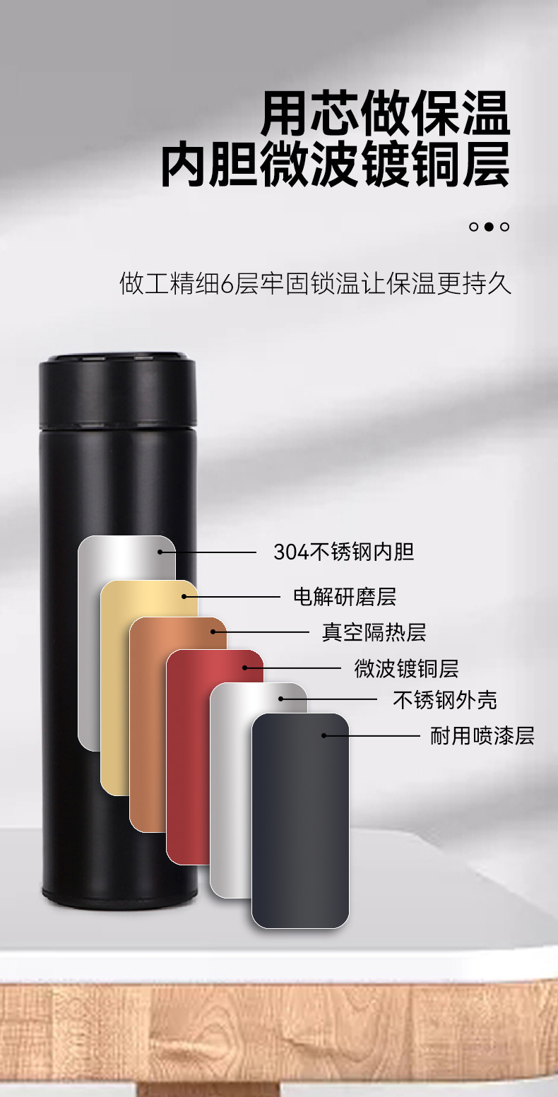 雨纷保温杯304不锈钢智能LED渐变色测温度显示商务直水杯礼品logo