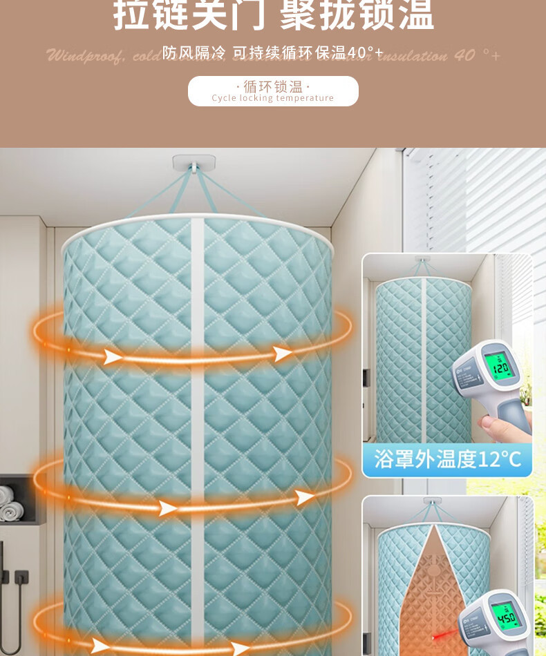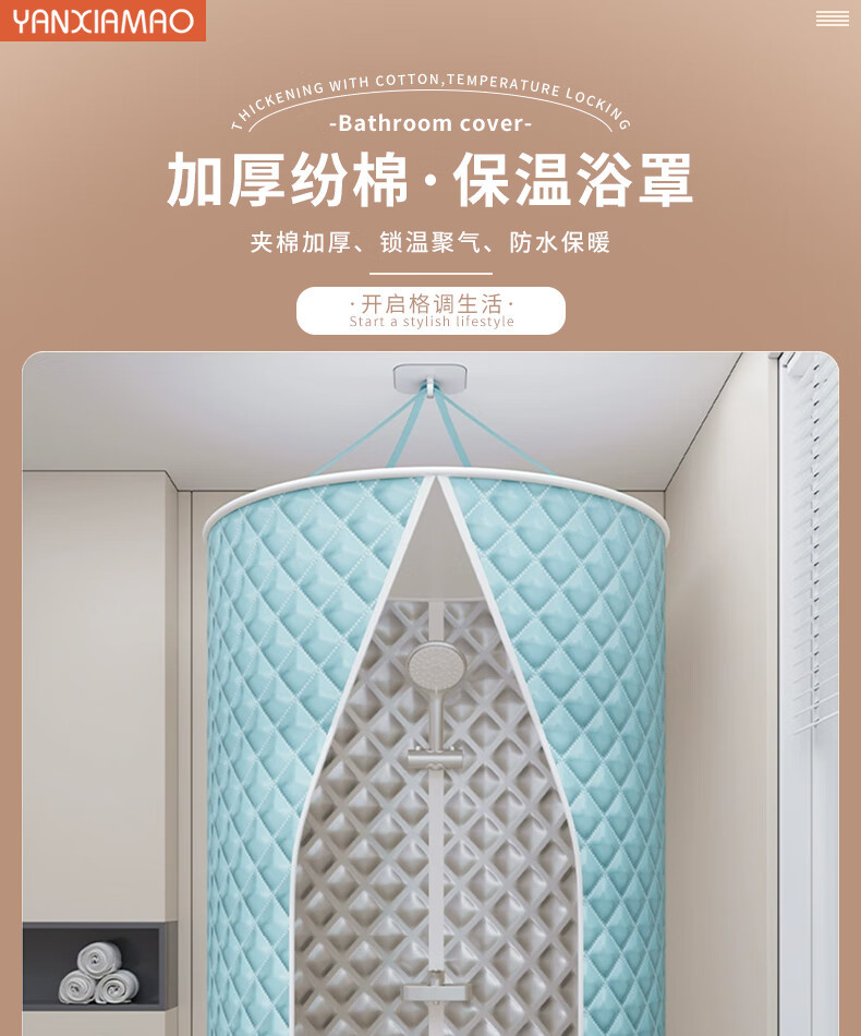 高端浴室圆形浴罩浴帐加厚保温棉冬天洗澡浴帘家用保暖淋浴防