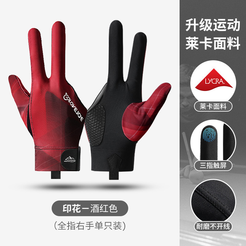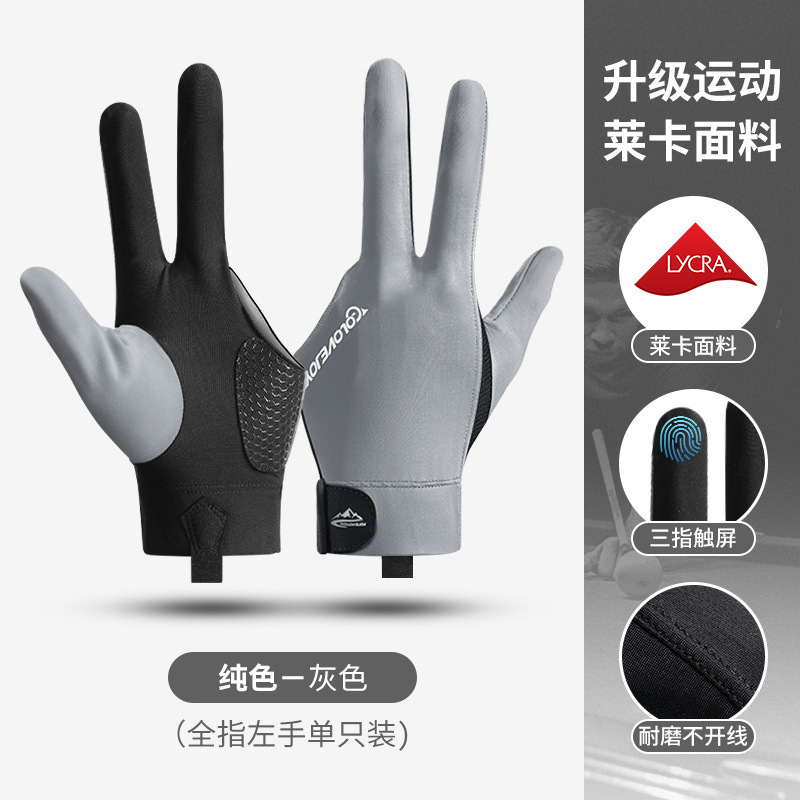 台球手套轻薄透气排汗三指露指手套斯诺克桌球防滑手套单只装XG67