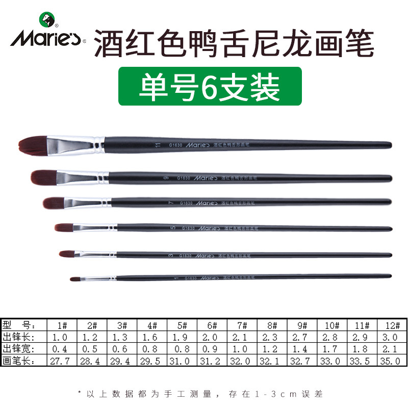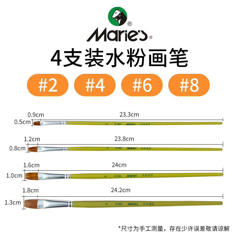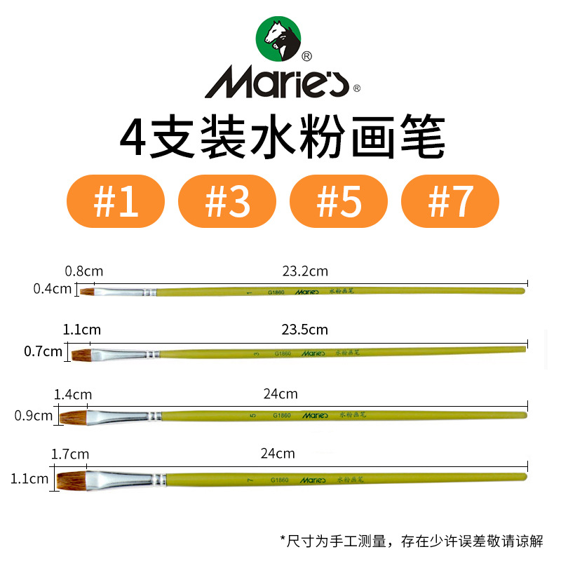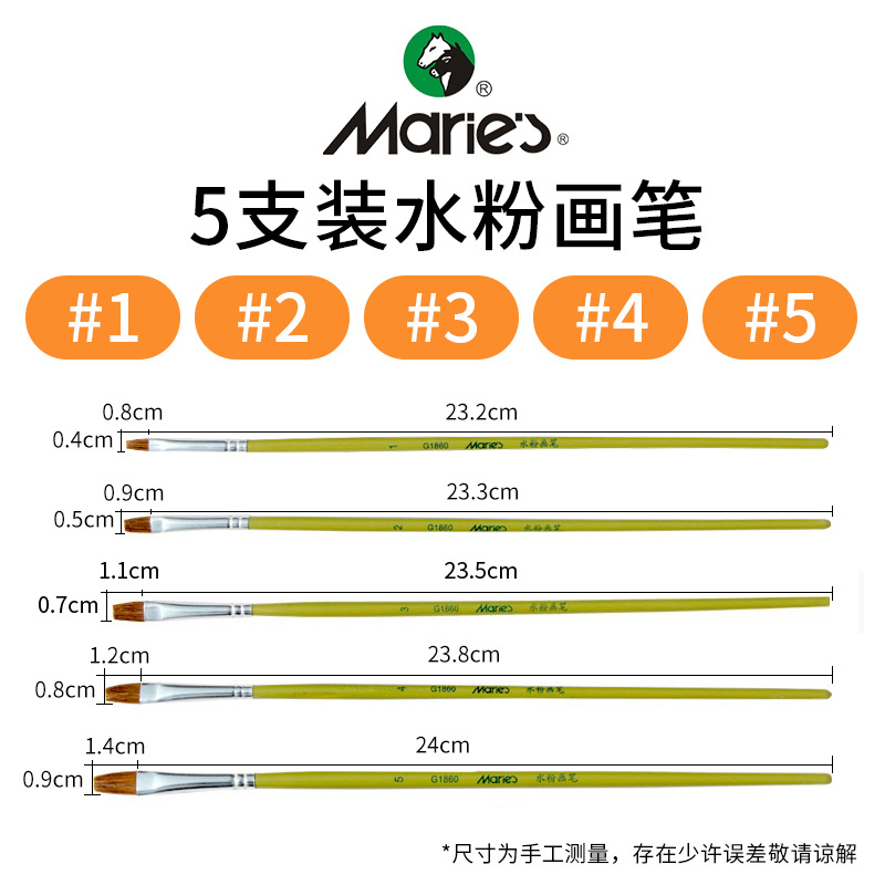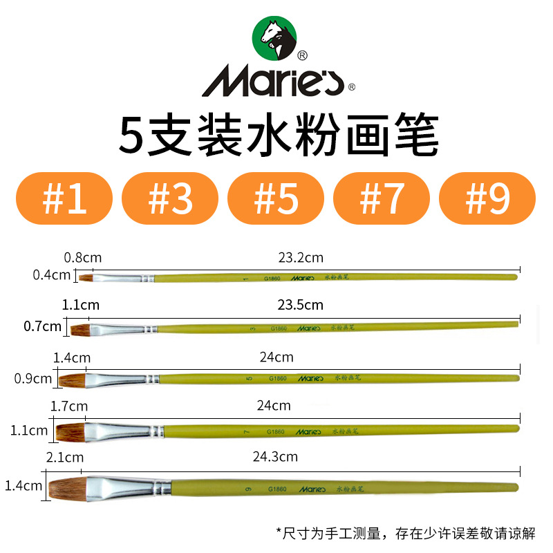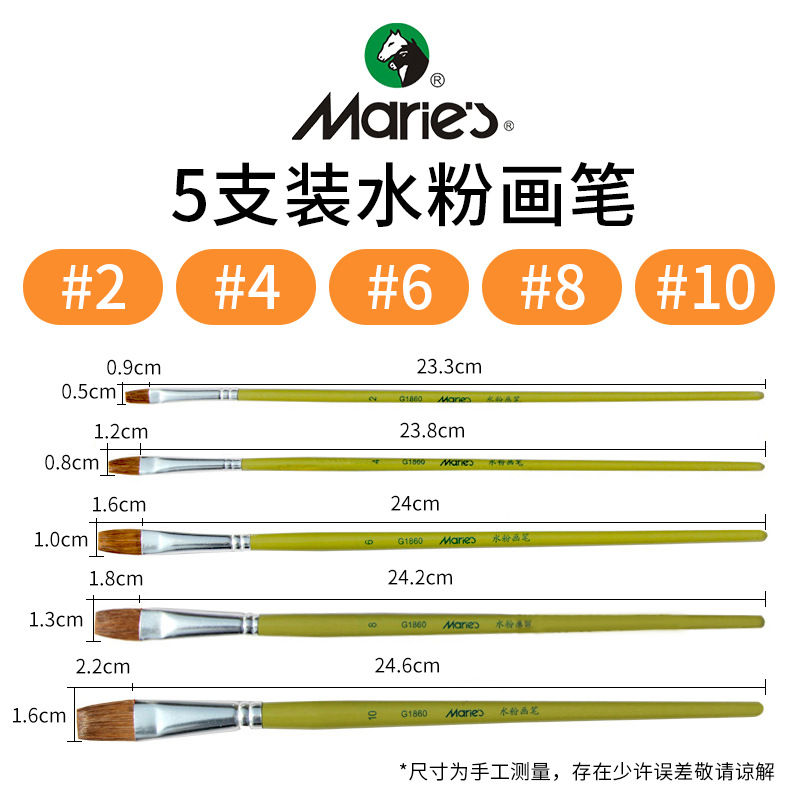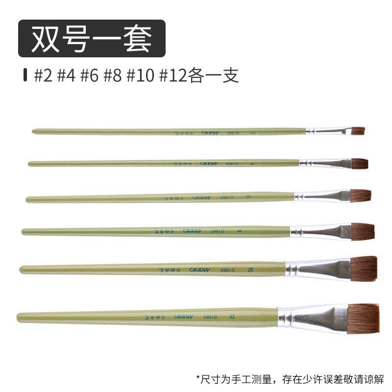 马利牌绿色杆G1860狼毫水粉画笔平头油画笔丙烯画笔 笔刷排笔套装
