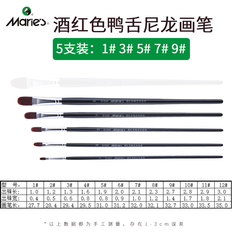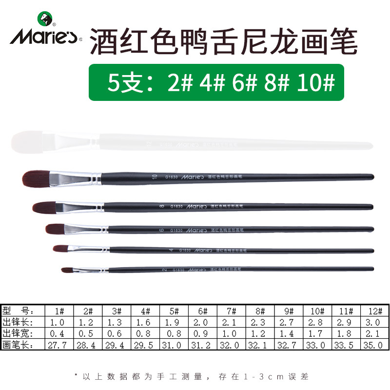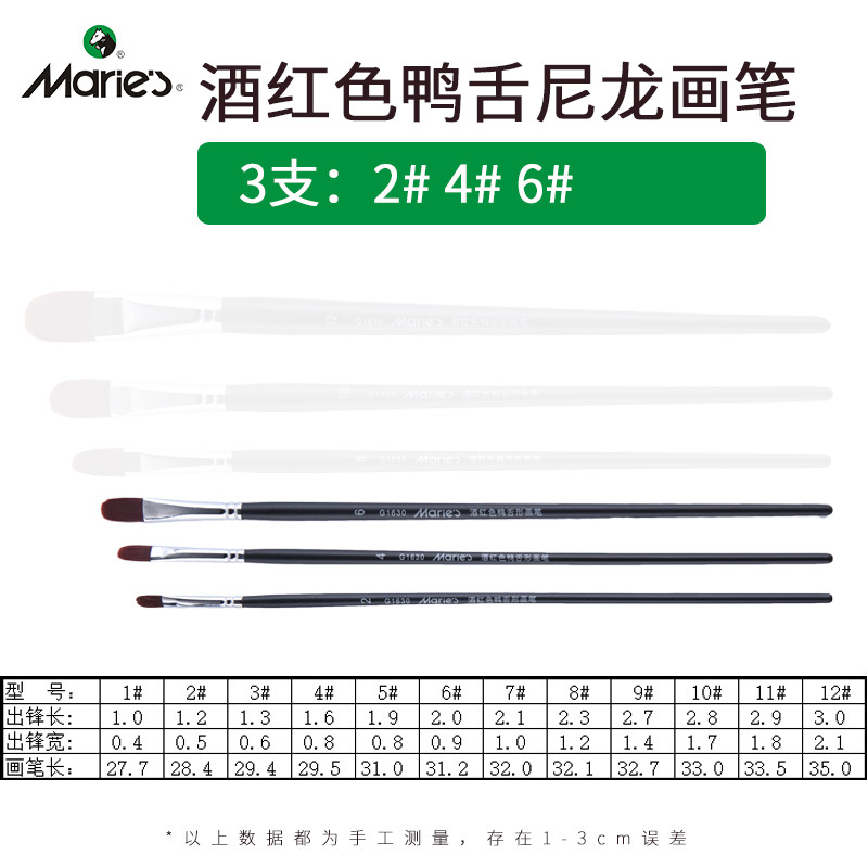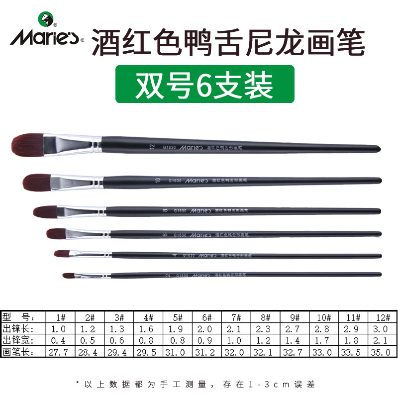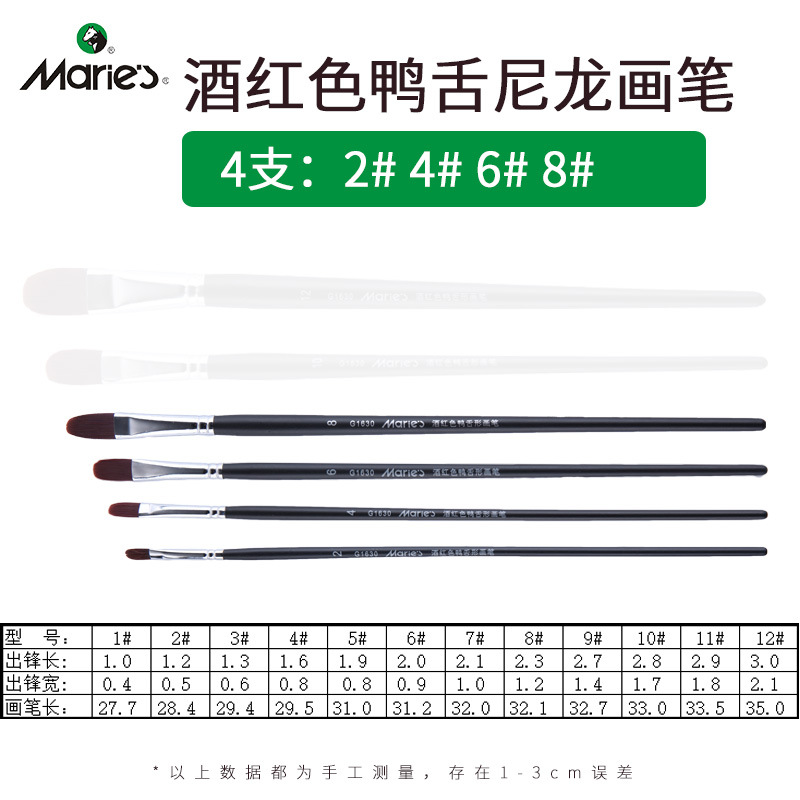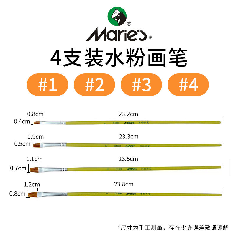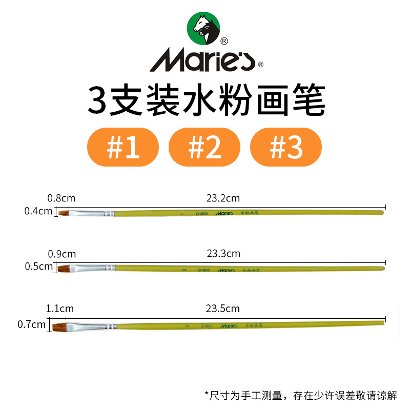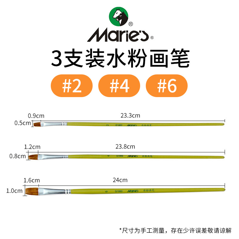 马利牌绿色杆G1860狼毫水粉画笔平头油画笔丙烯画笔 笔刷排笔套装