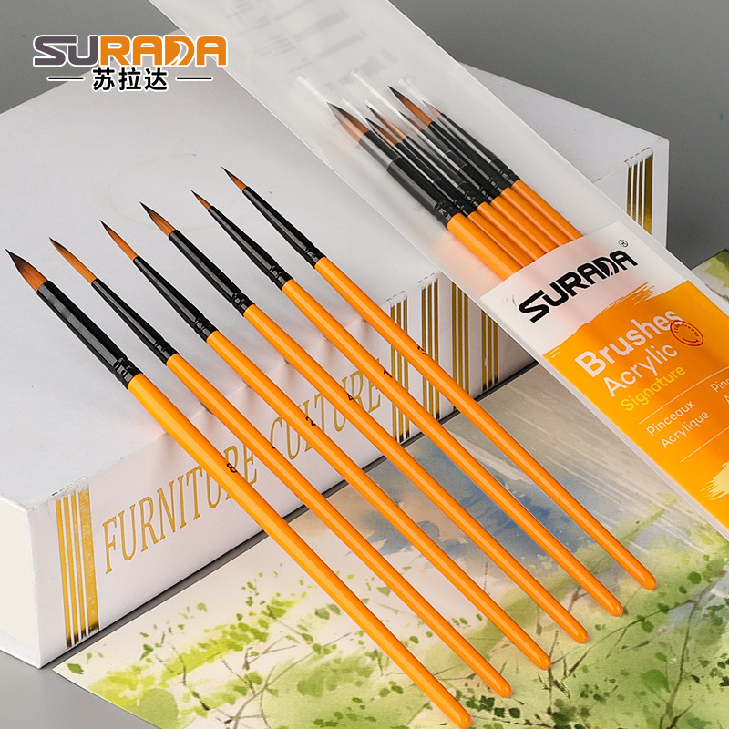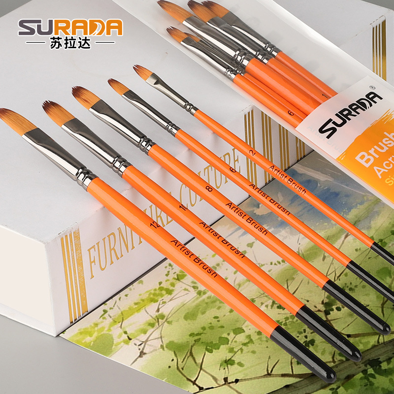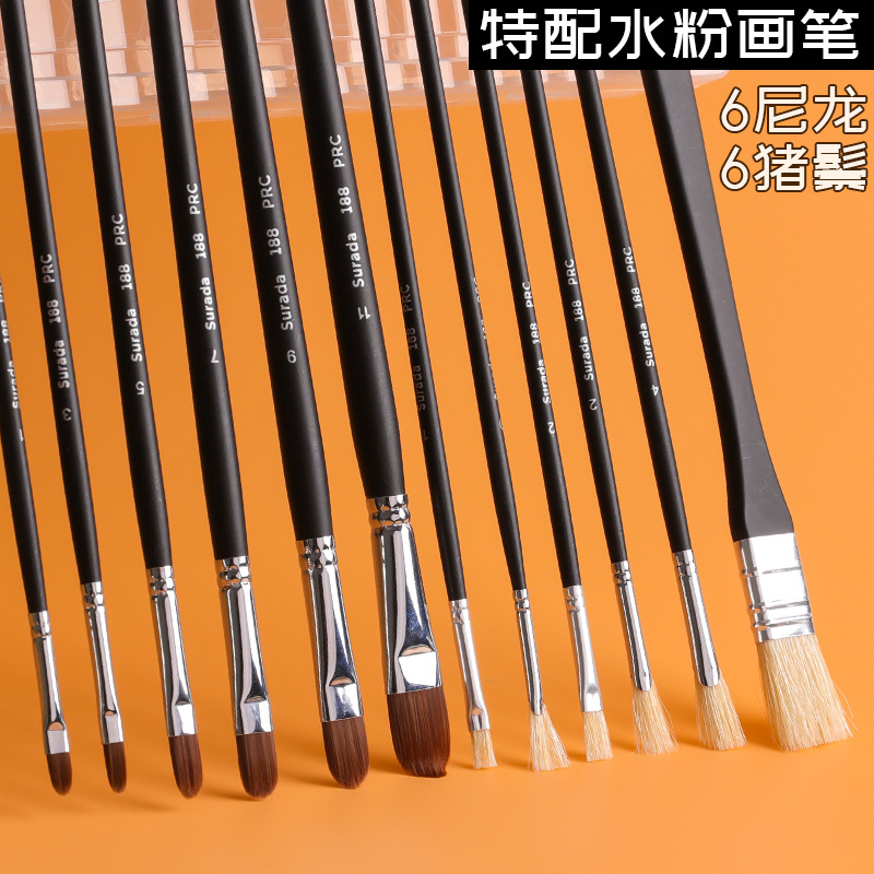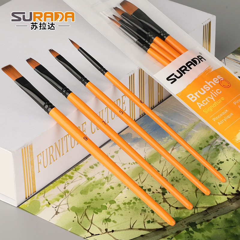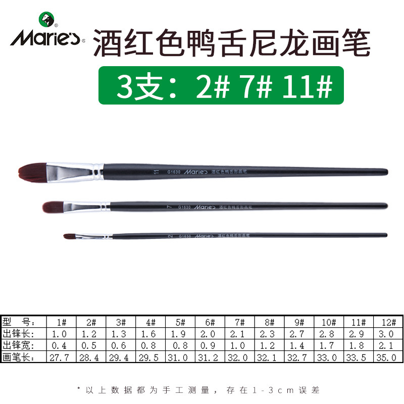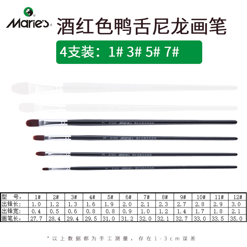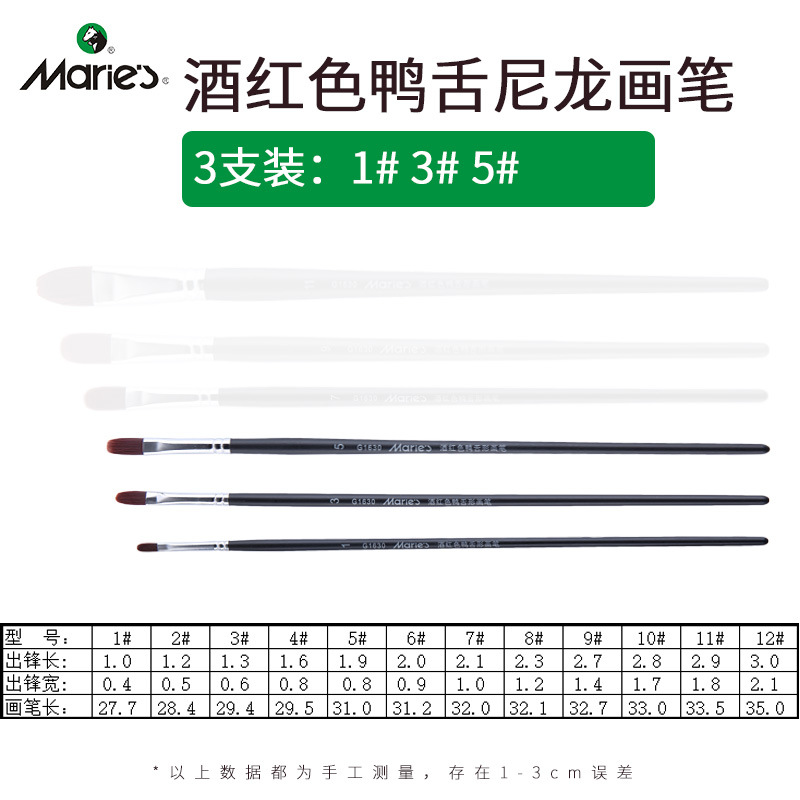 马利牌绿色杆G1860狼毫水粉画笔平头油画笔丙烯画笔 笔刷排笔套装