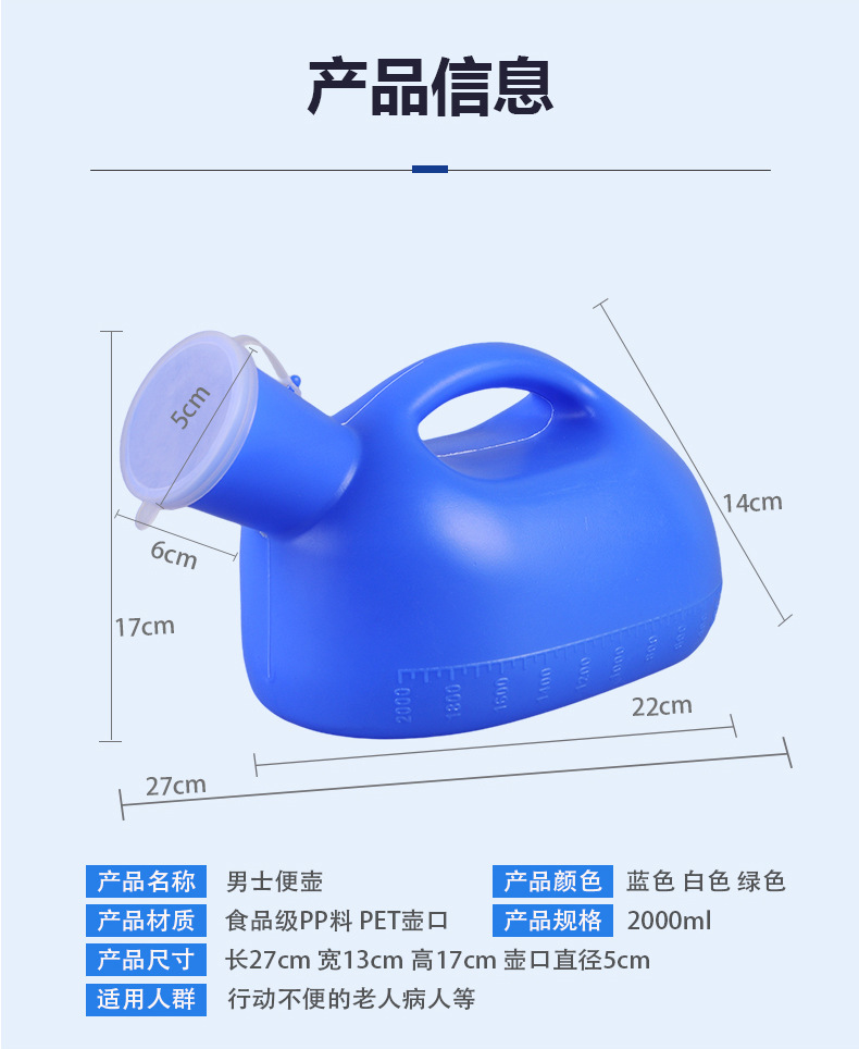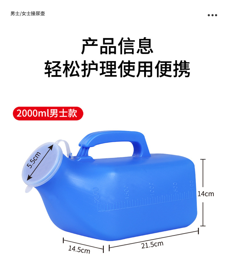 厂家批发尿壶男女家用带盖小便器塑料小便壶1200毫升2000毫升