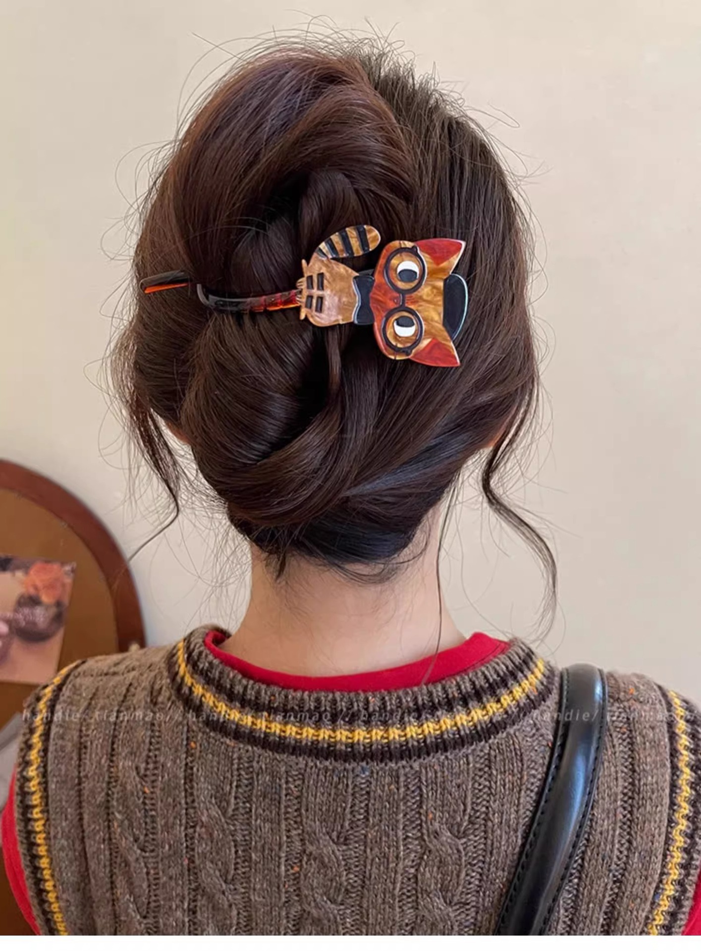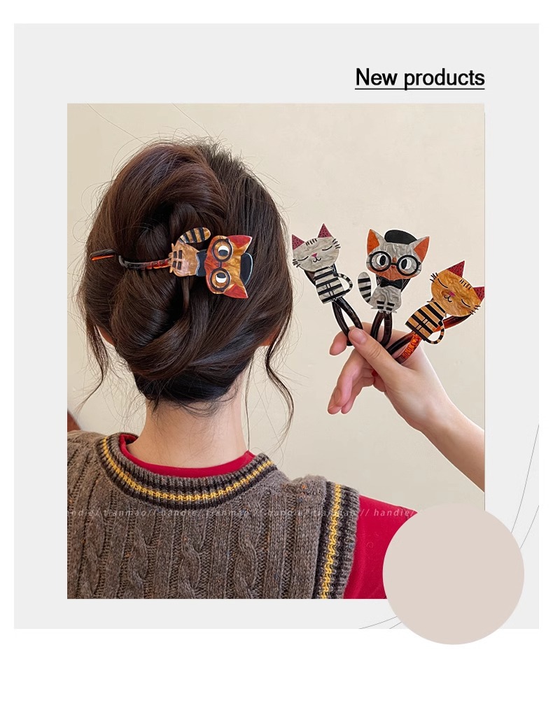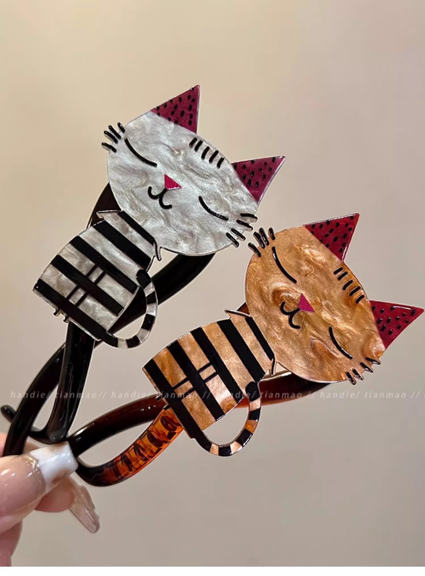 萌趣可爱猫咪扭扭夹高级感后脑勺发夹女2024新款一字抓夹盘发头饰