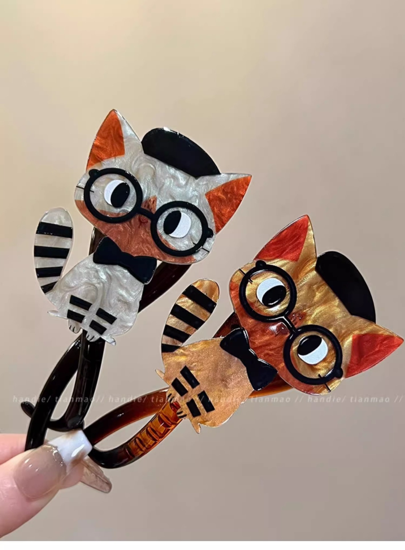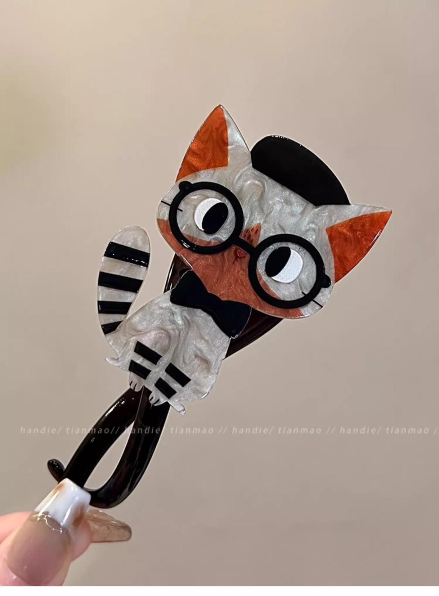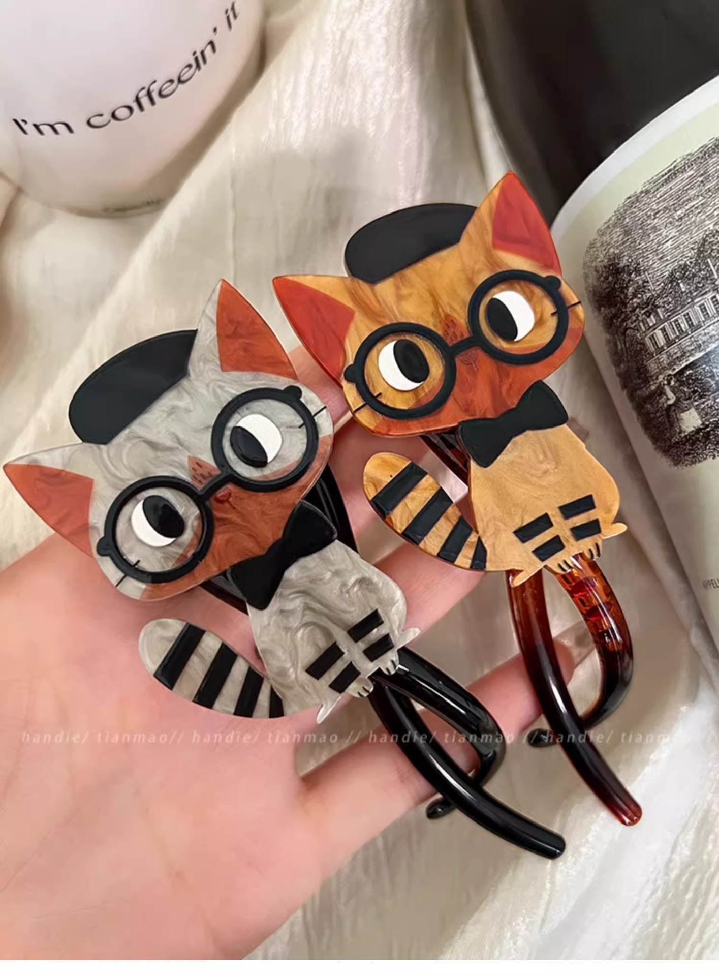 萌趣可爱猫咪扭扭夹高级感后脑勺发夹女2024新款一字抓夹盘发头饰