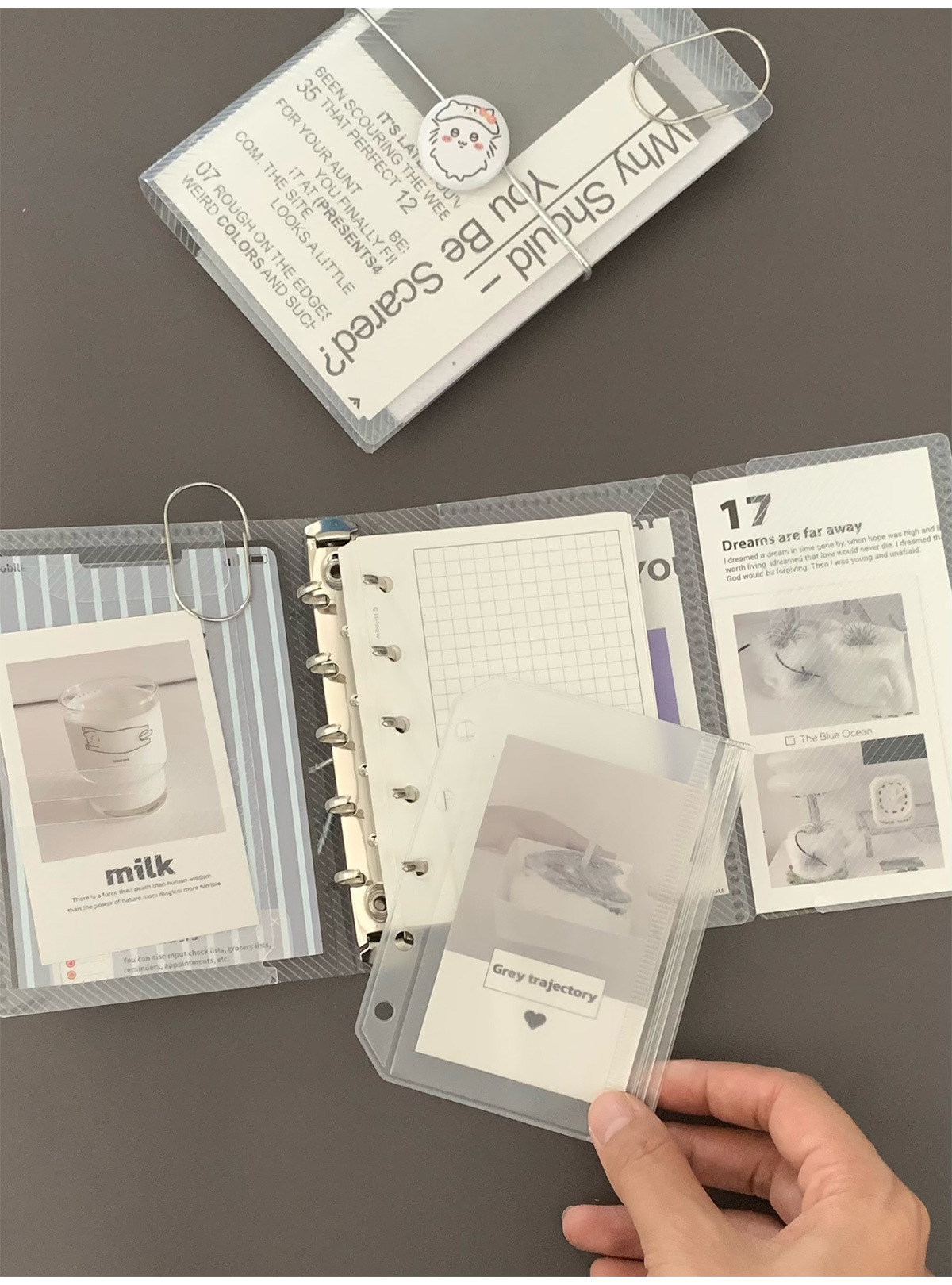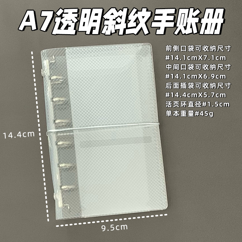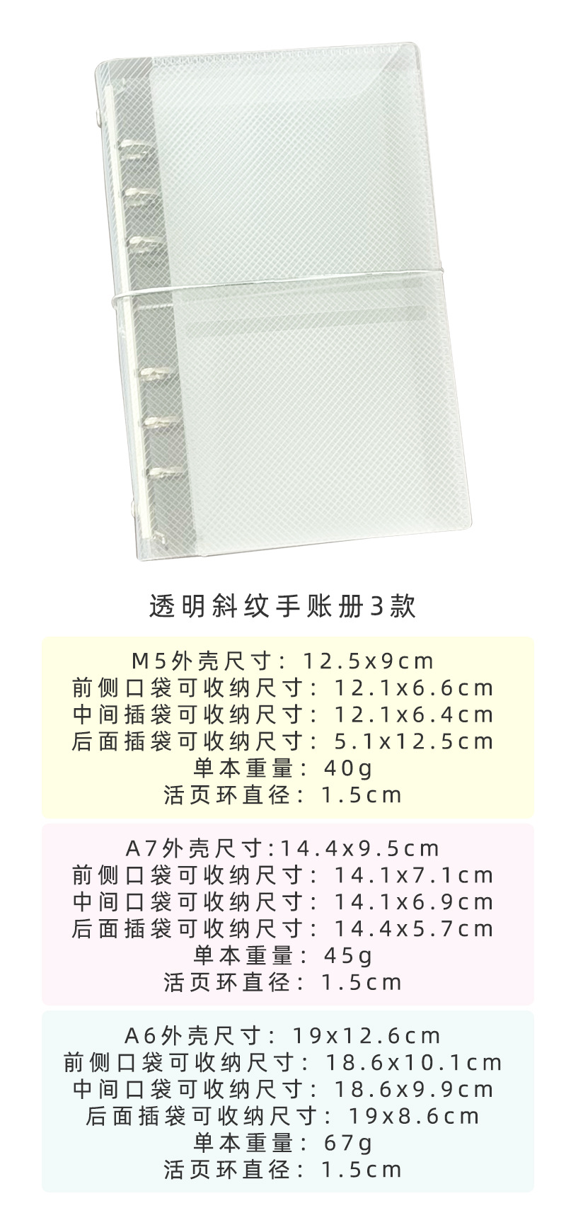 三个尺M5A7A6透明PP斜纹三折手账本活页本活页壳手帐本子收纳