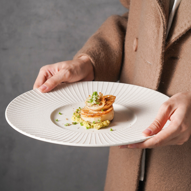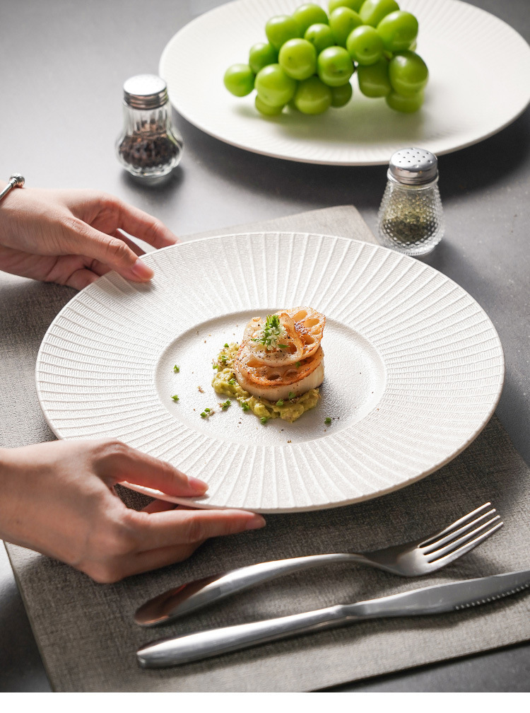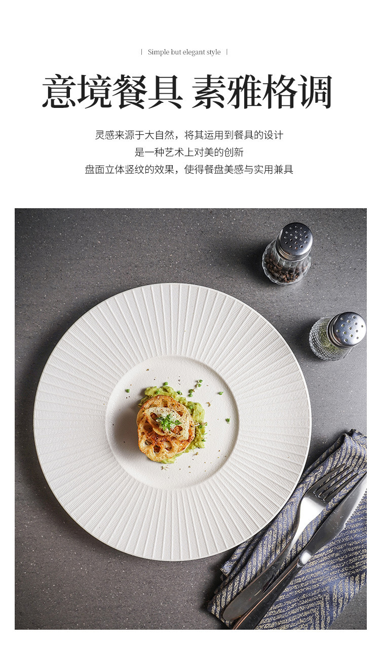 H分子料理盘子高级感磨砂白意面盘法餐盘位菜盘西餐盘牛排餐盘