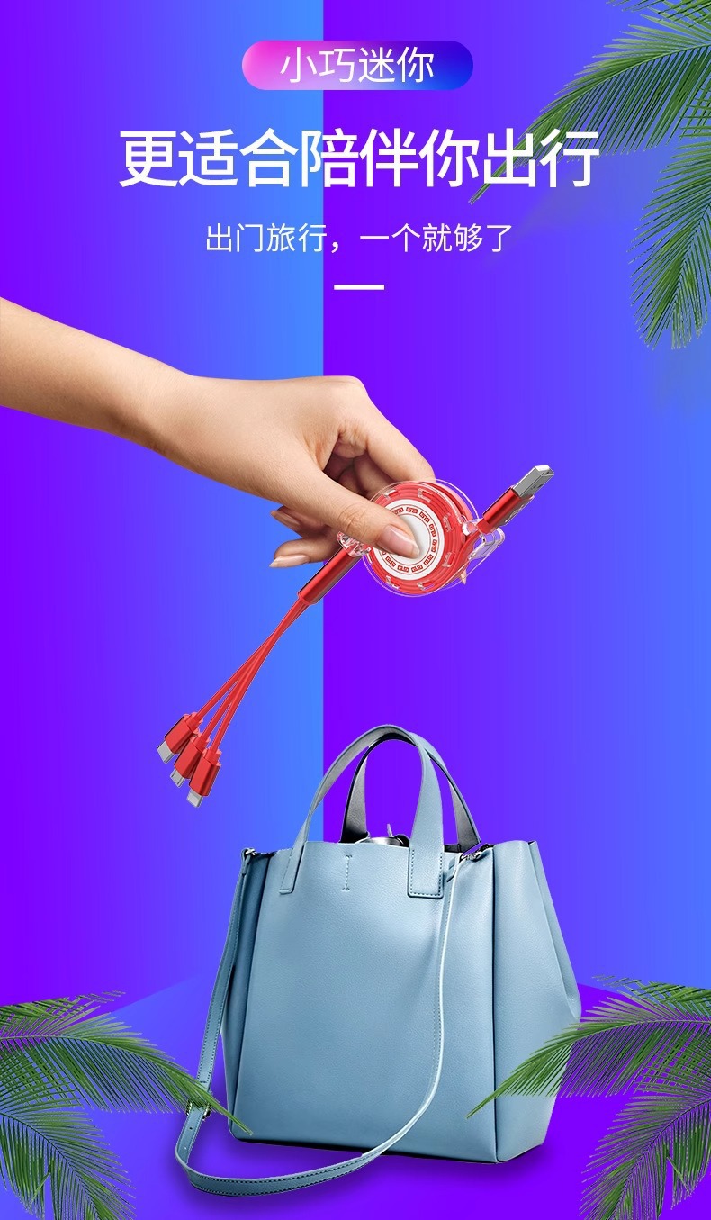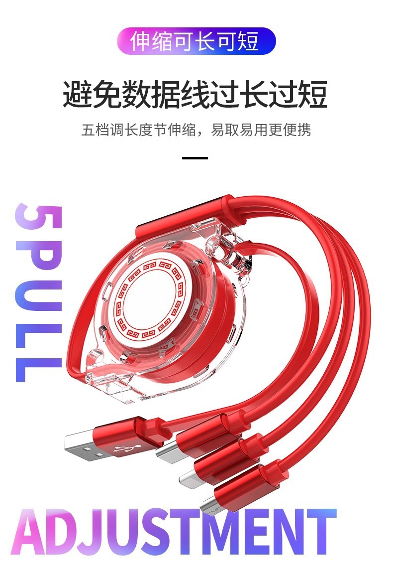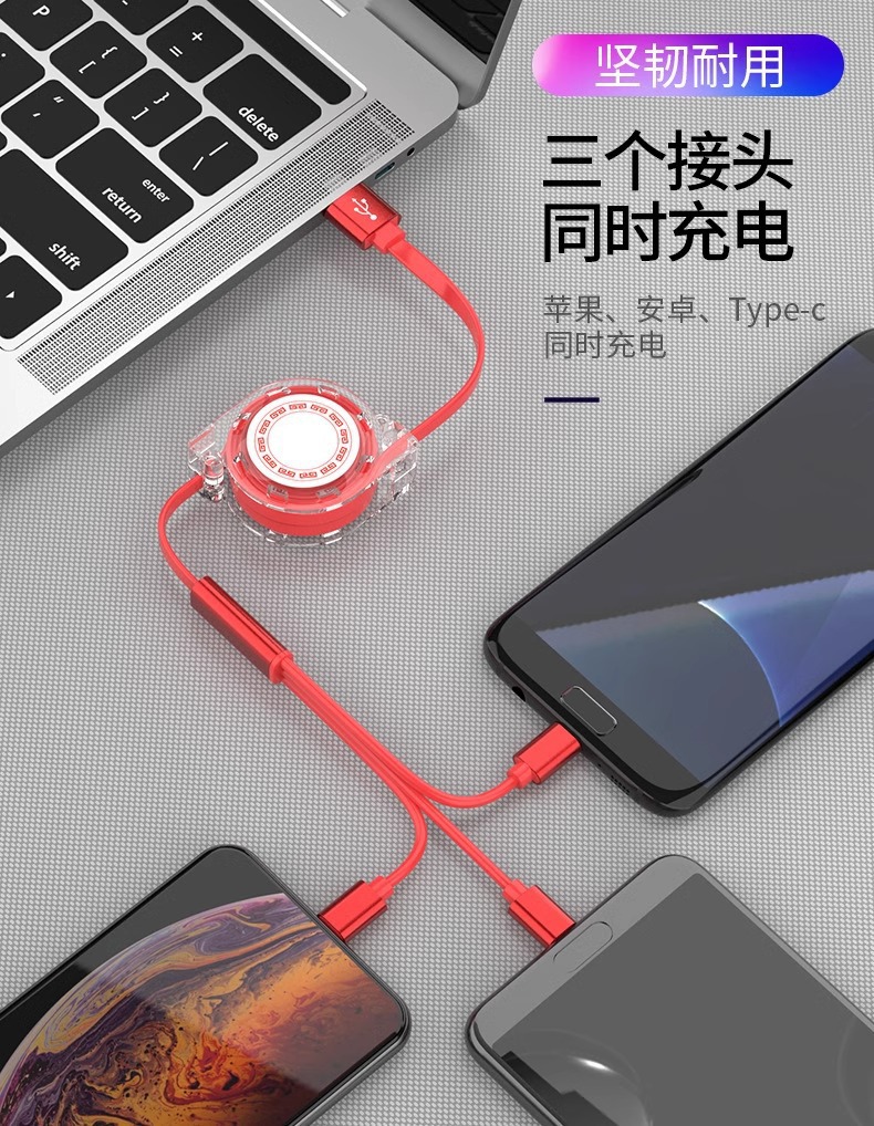 伸缩数据线快充一拖三手机充电线通用适用安卓typec接车载汽车