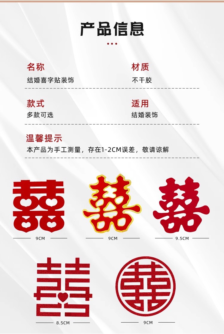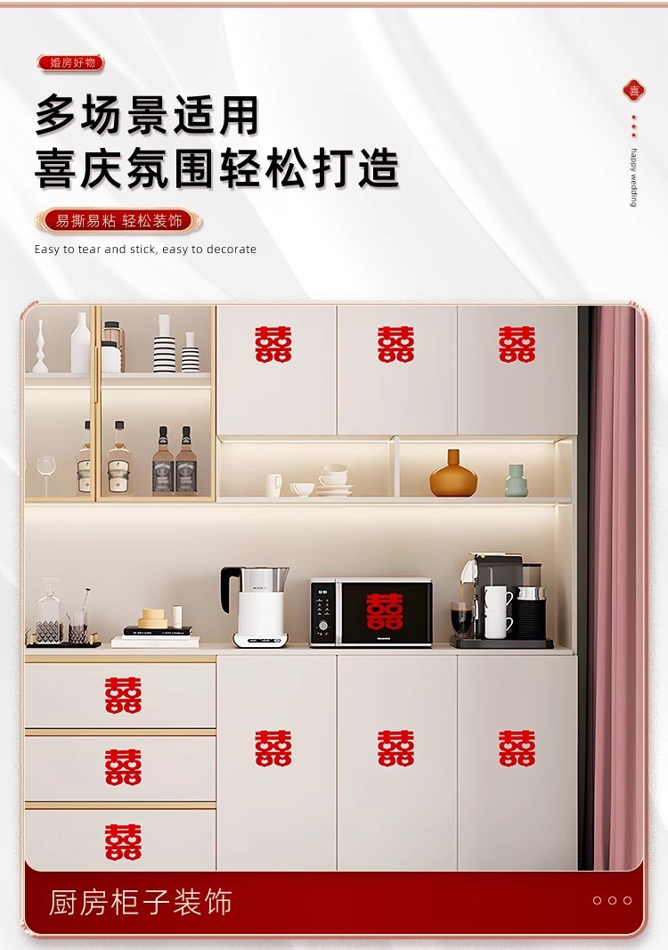 结婚婚房不干胶自粘楼梯柜子小喜字贴创意婚礼嫁妆柜门喜庆喜字贴