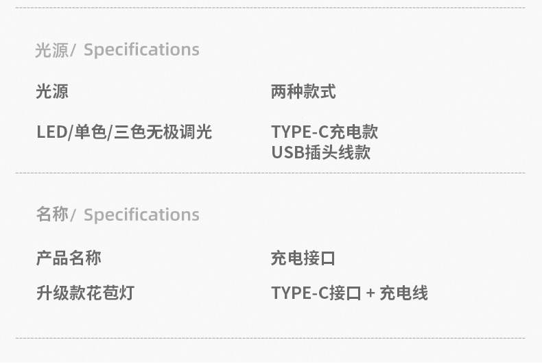 | 充电款带(三色+无极调光) | USD $4.85 | 6421 piece available |