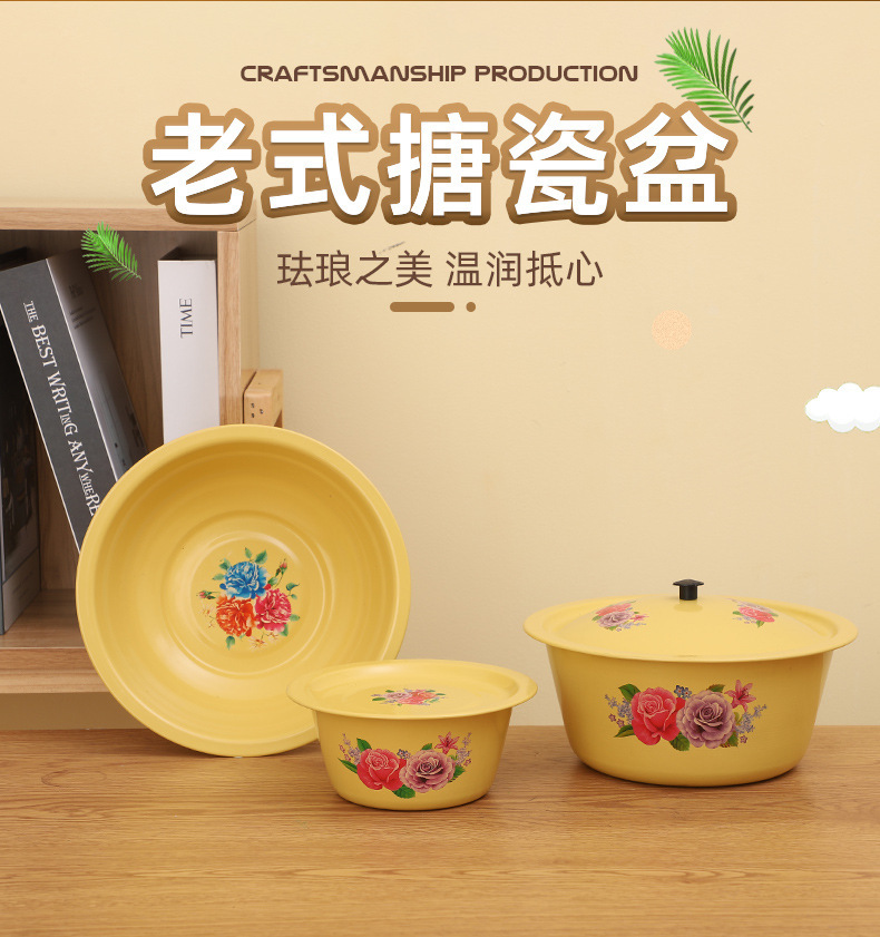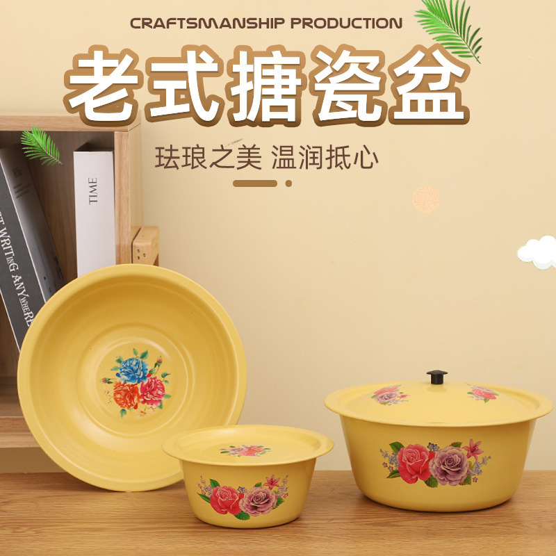 厂家直供搪瓷碗老式带盖搪瓷盆洗手盆洗手碗面盆猪油盆加厚洗手碗