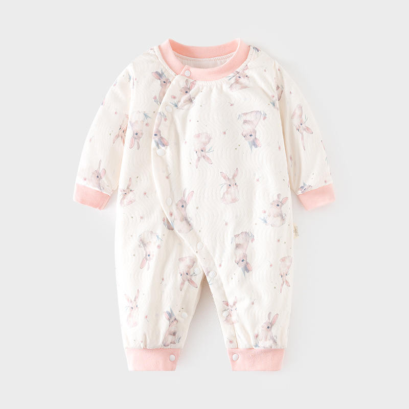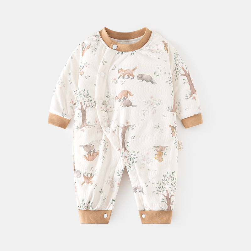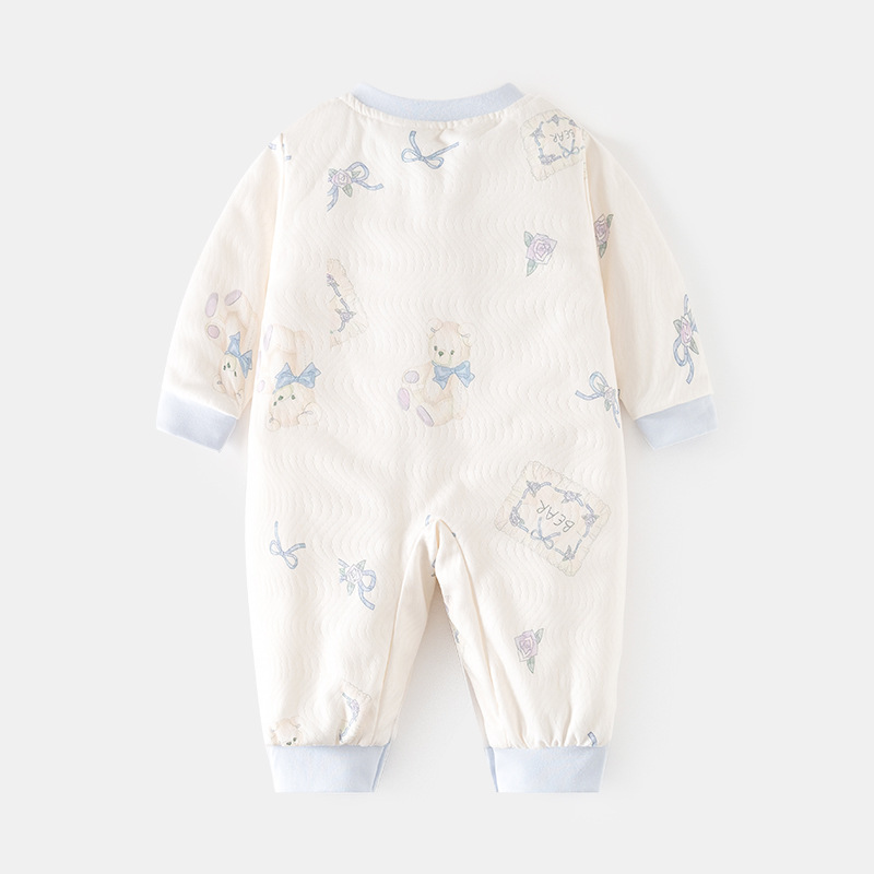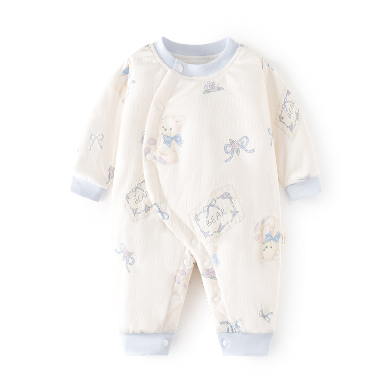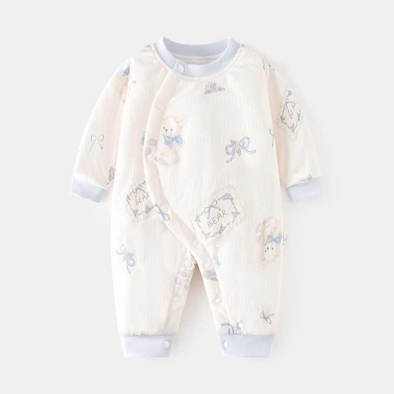 婴儿加棉连体衣宝宝50克夹棉秋冬无骨哈衣薄棉加厚偏襟爬服儿童