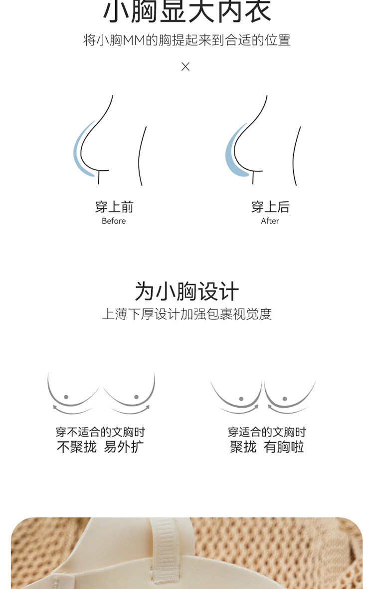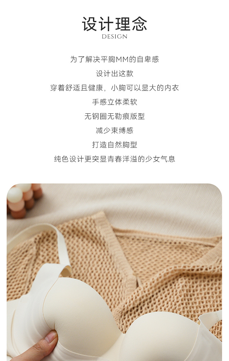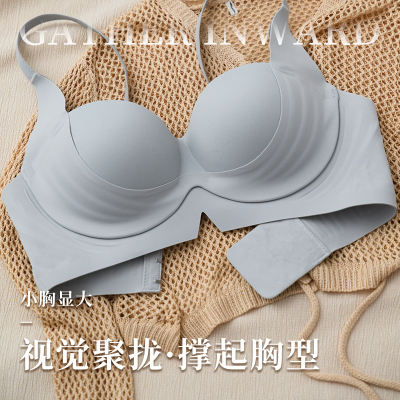 小胸纯欲聚拢显大无痕内衣女无钢圈防下垂收副乳文胸一片式胸罩