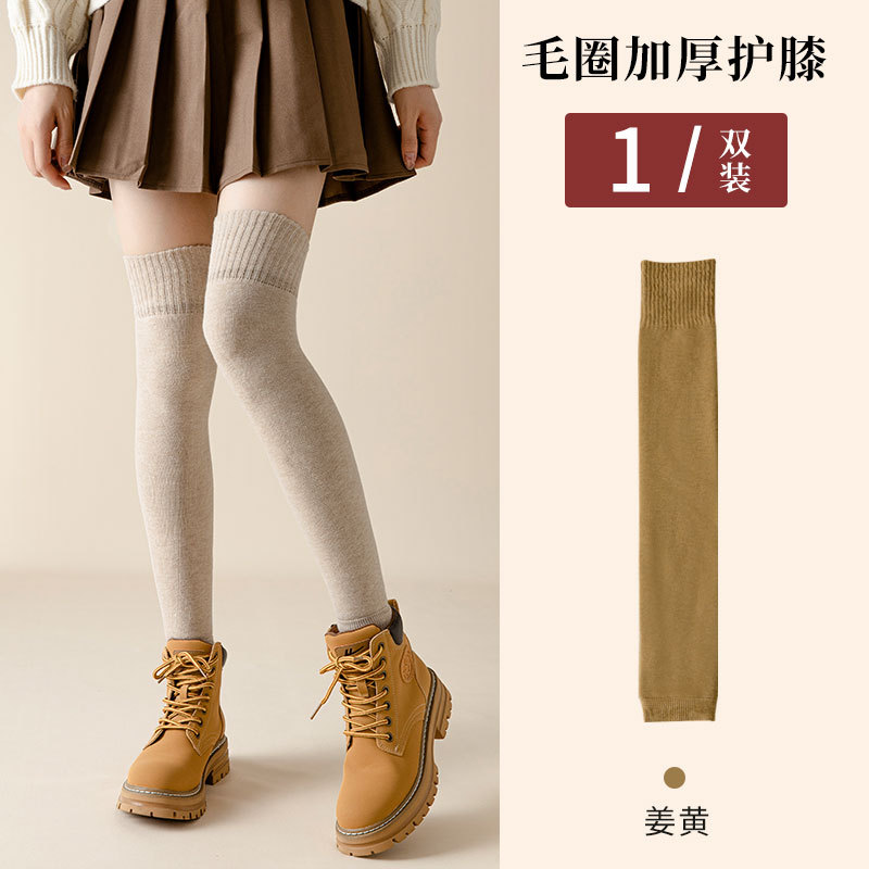 长筒护膝袜套女加绒加厚毛圈秋冬季保暖过膝护关节半截女士大腿袜