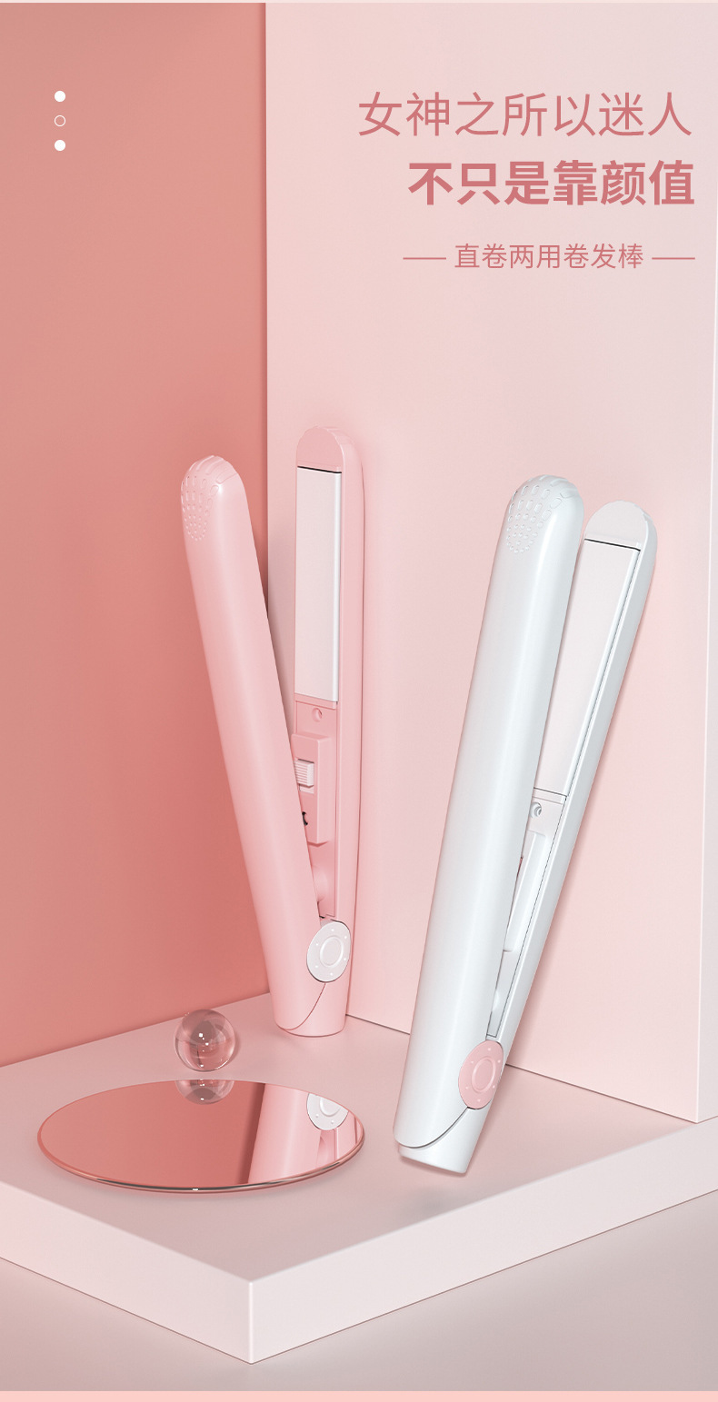迷你卷发棒便携式直卷两用卷发器刘海不伤发手动电夹板有线直发器