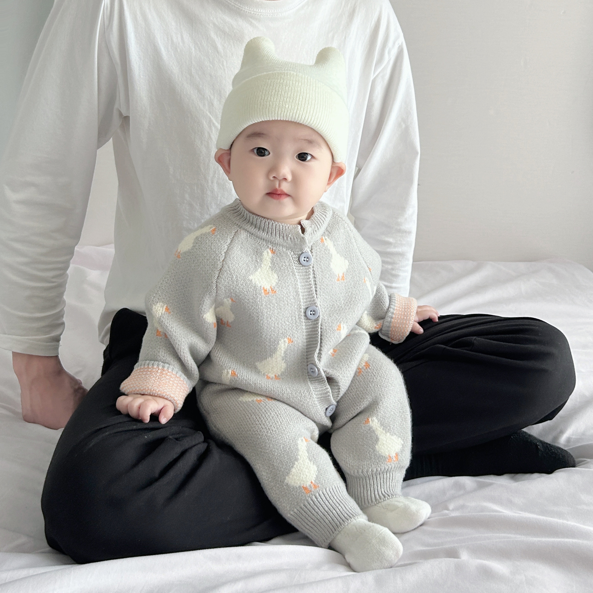 ins韩版婴儿连体衣春季男女宝宝大鹅毛衣爬服新生儿针织哈衣薄款