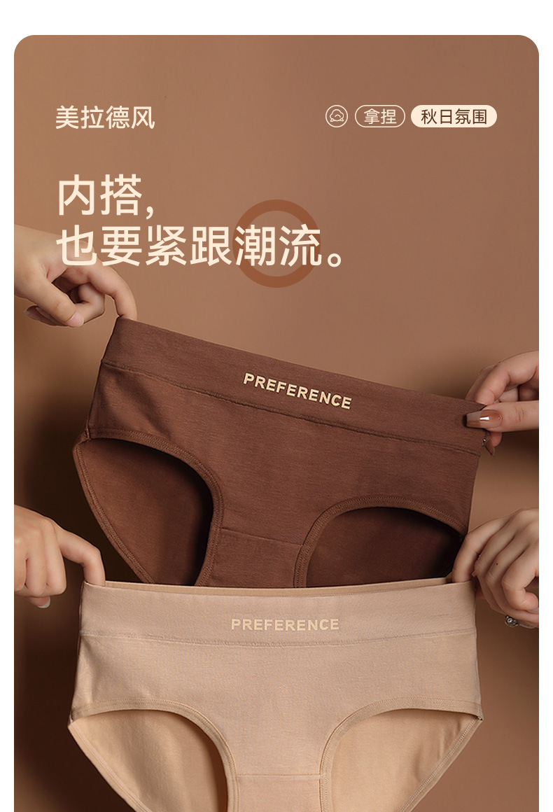 美拉德纯棉内裤女士无痕中腰三角裤高弹不夹臀大码女生运动内裤