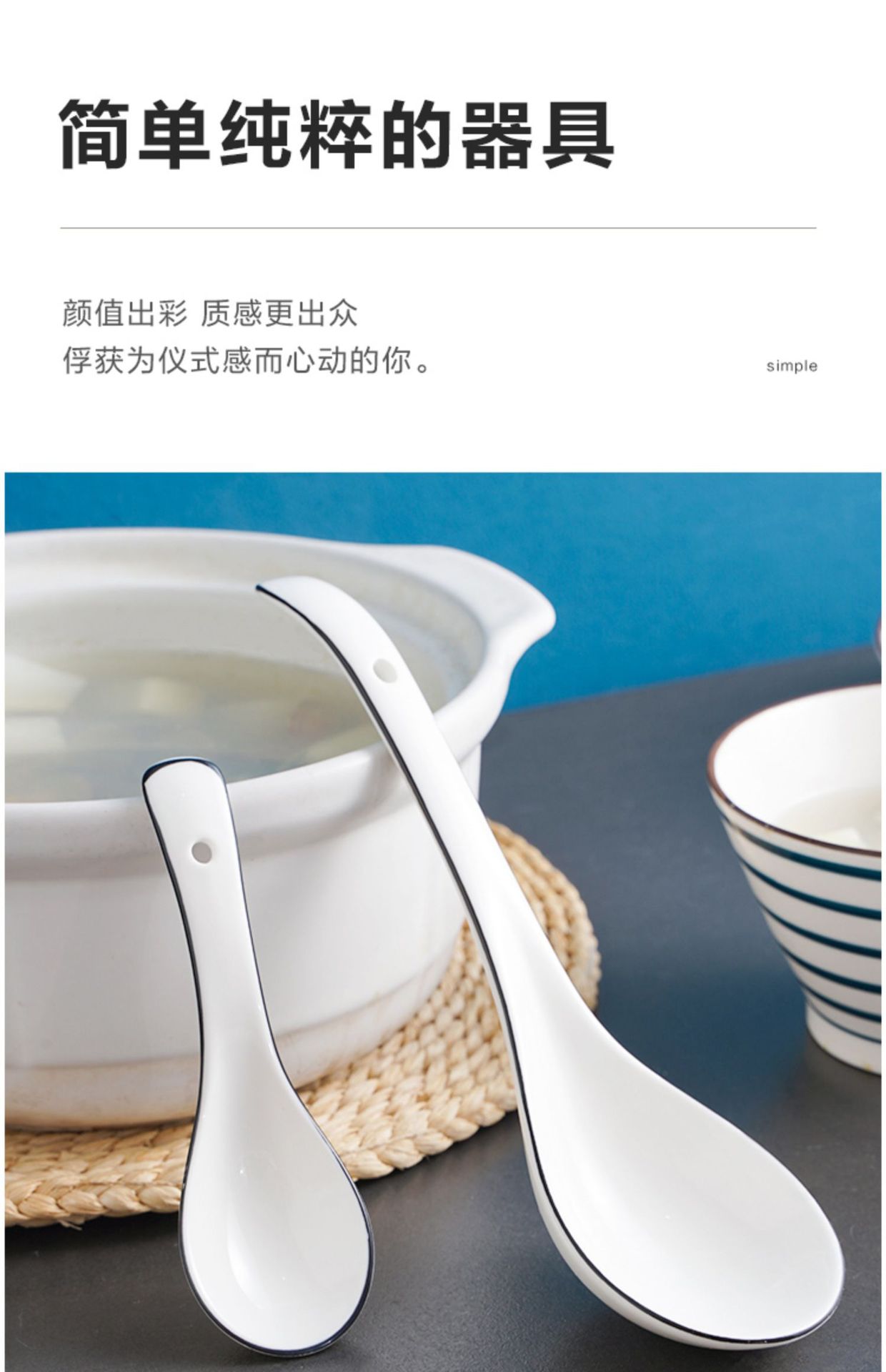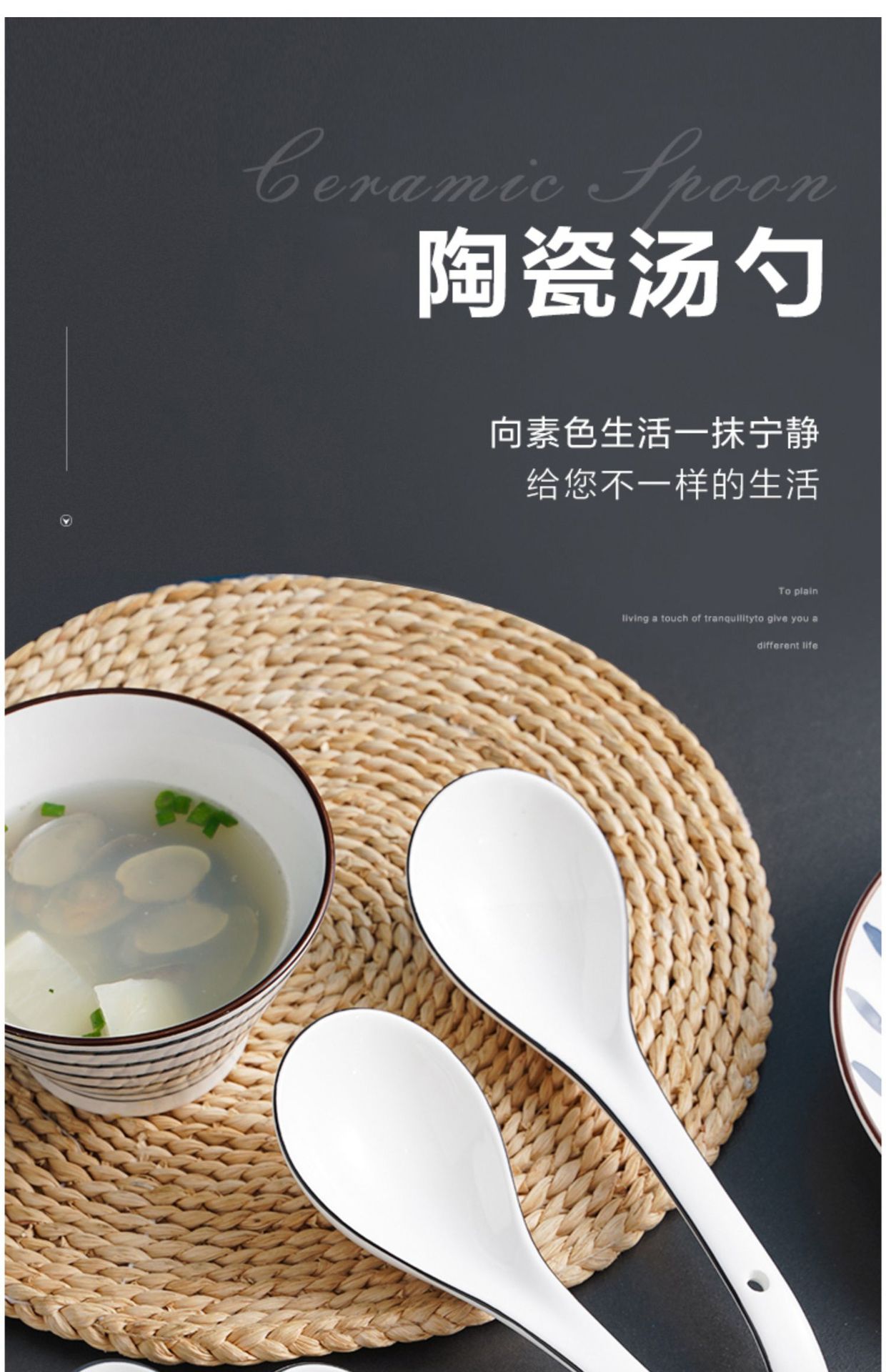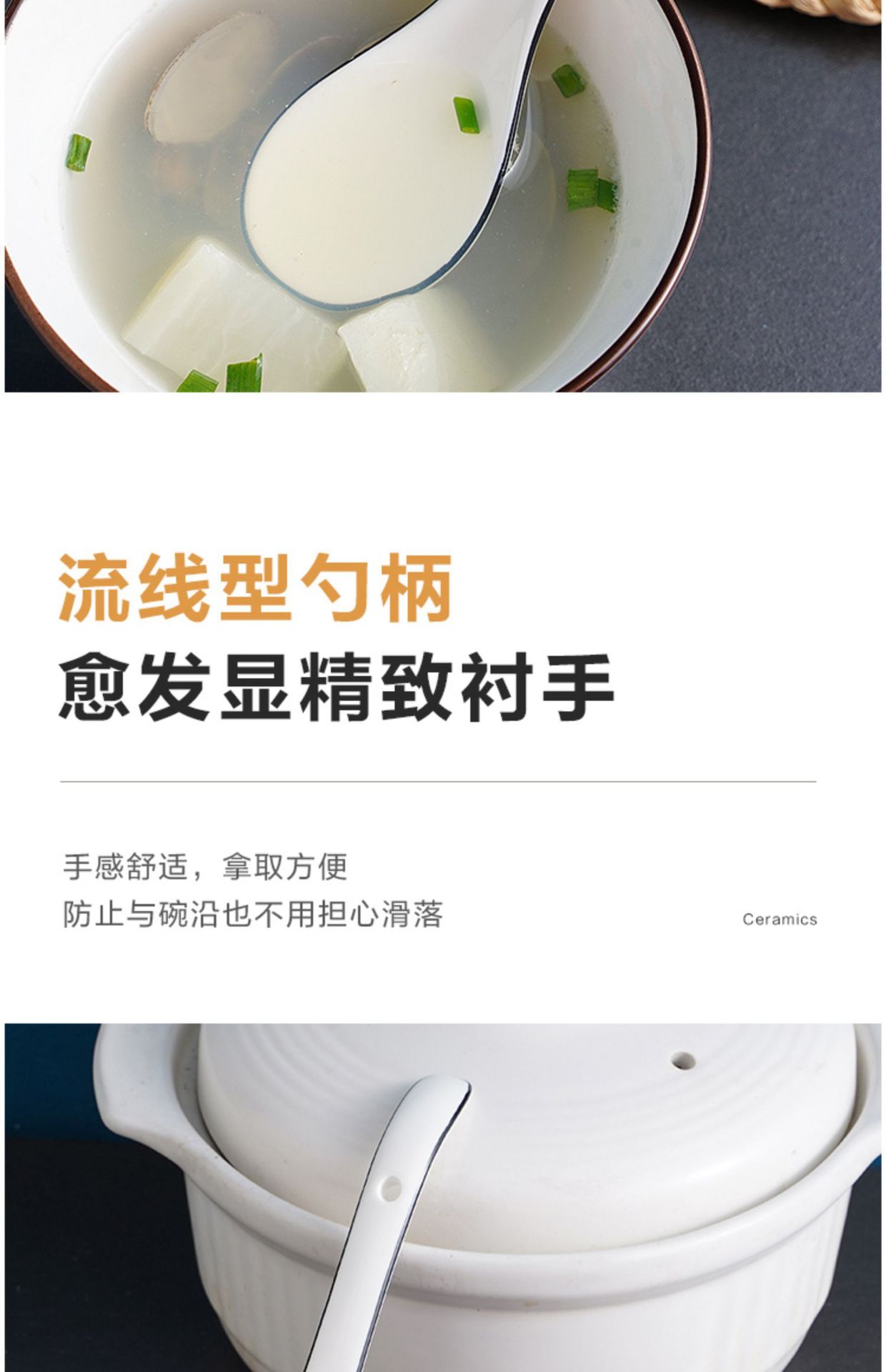 勺子家用长柄陶瓷喝汤轻奢汤匙调羹盛汤粥稀饭专用北欧简约餐具