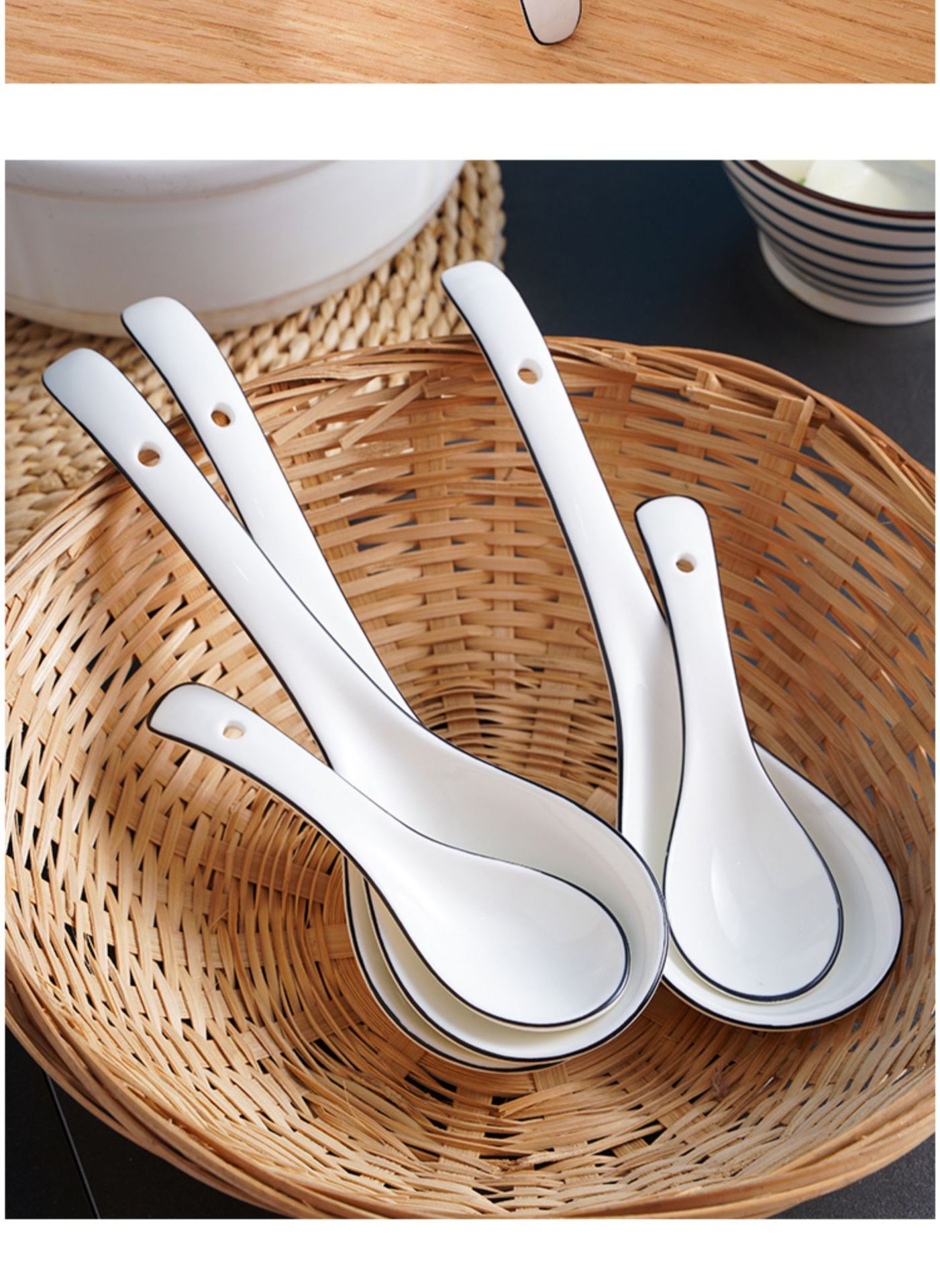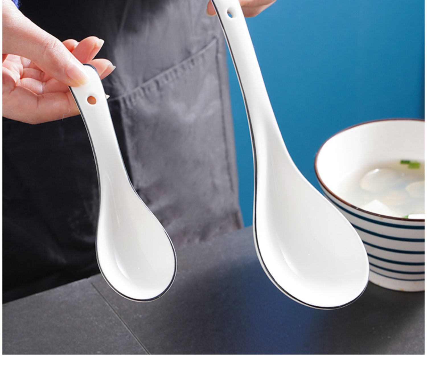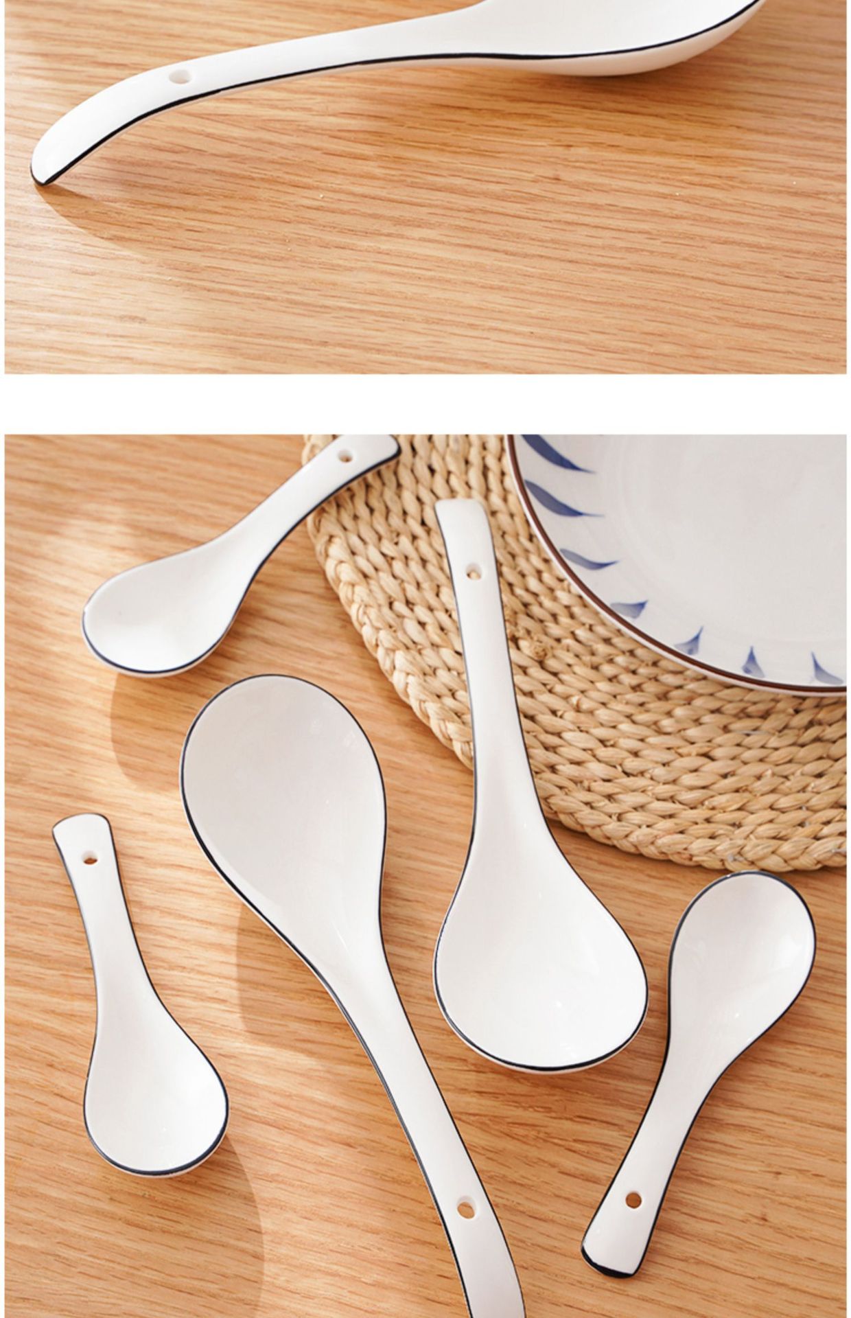 勺子家用长柄陶瓷喝汤轻奢汤匙调羹盛汤粥稀饭专用北欧简约餐具