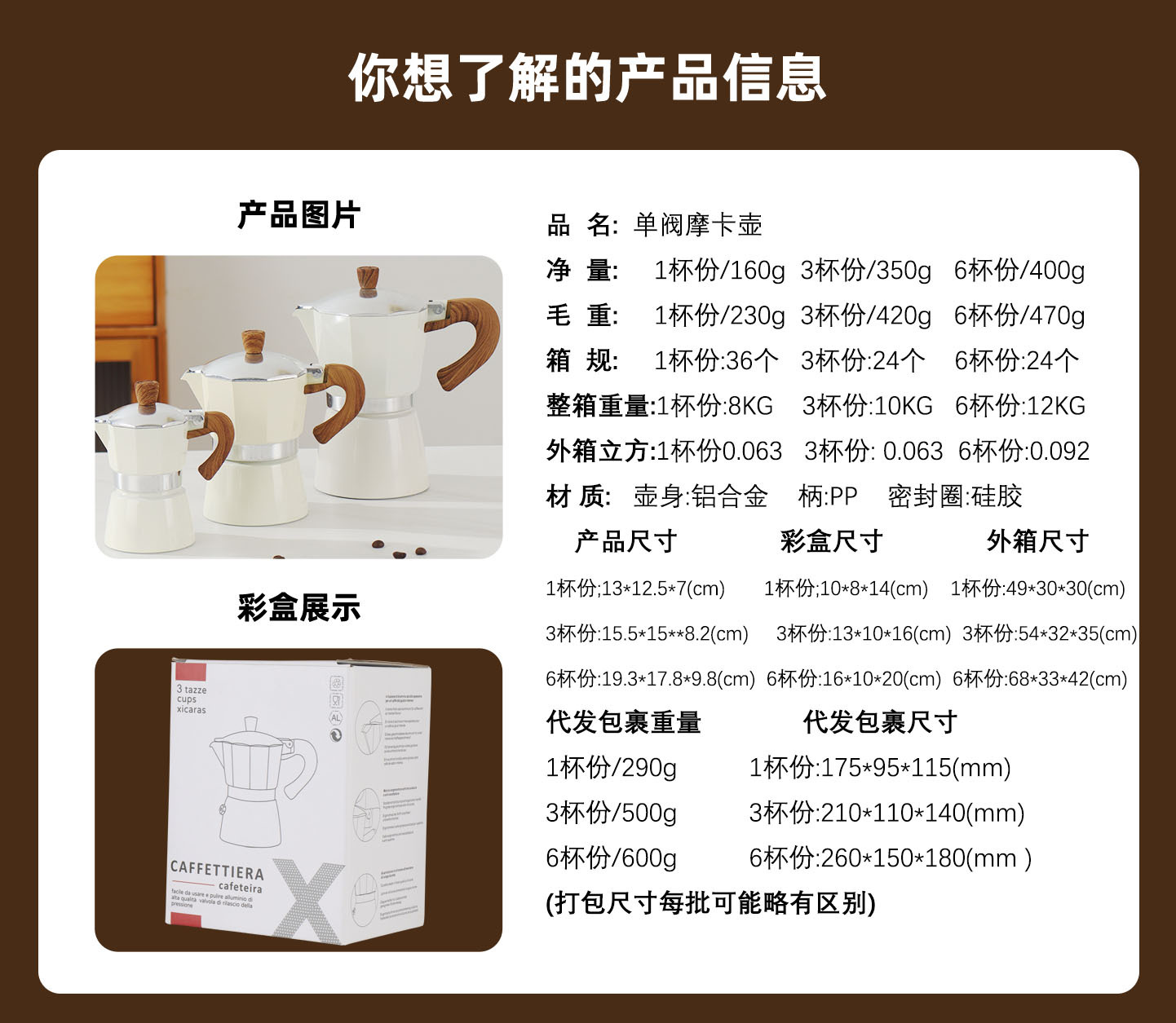 单阀摩卡壶意式小型咖啡壶手冲家用全自动电陶炉煮咖啡器具套装