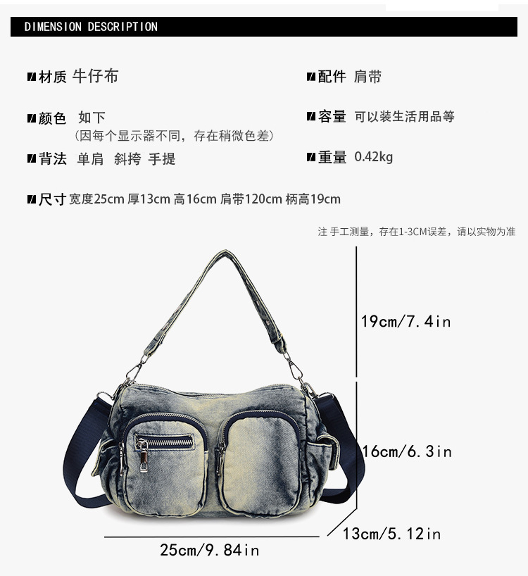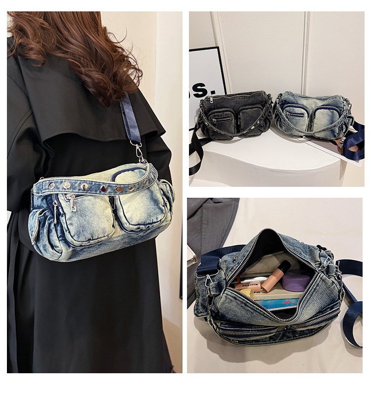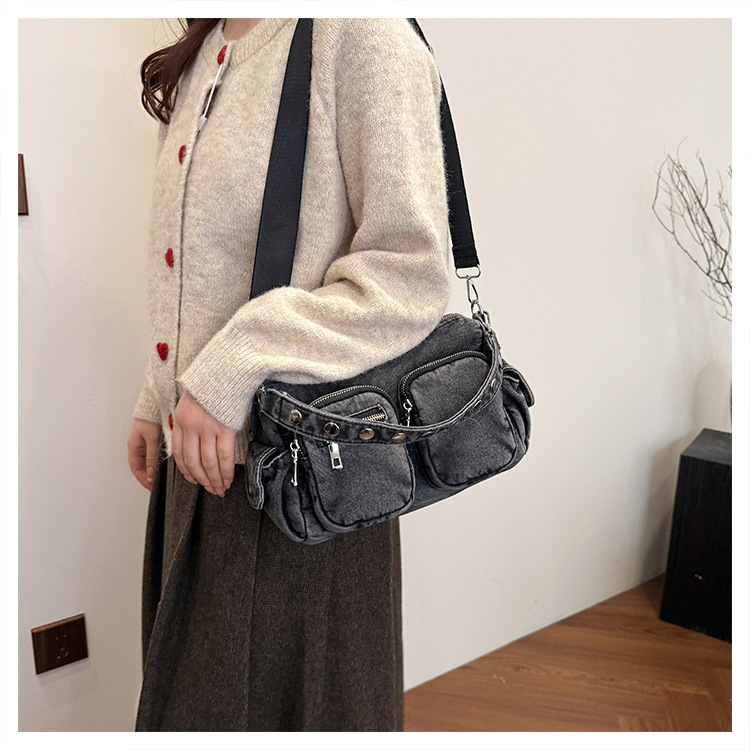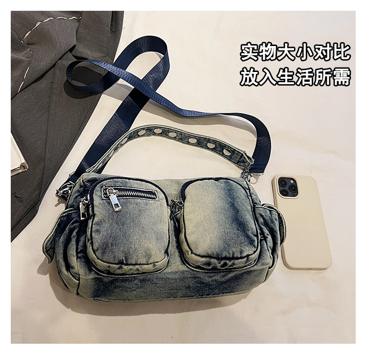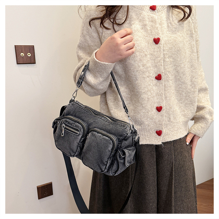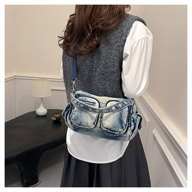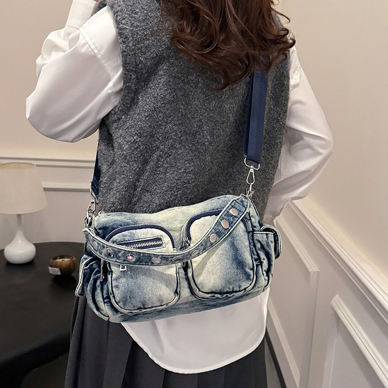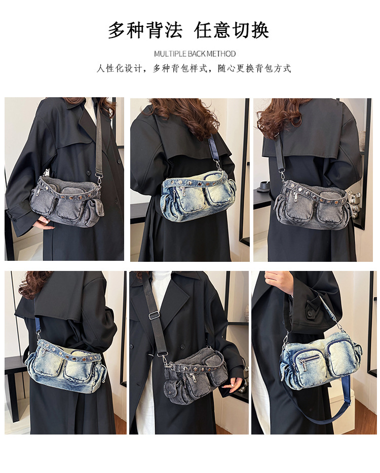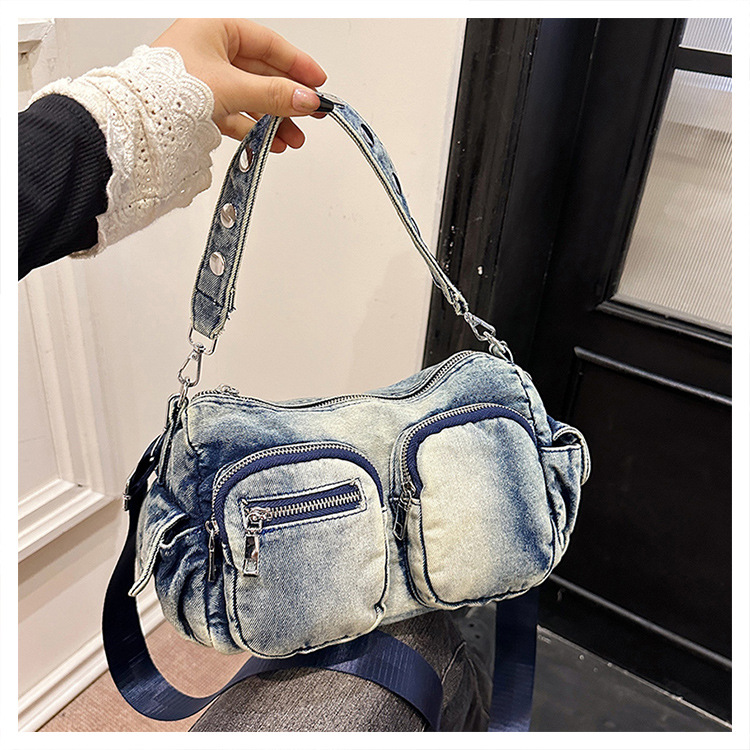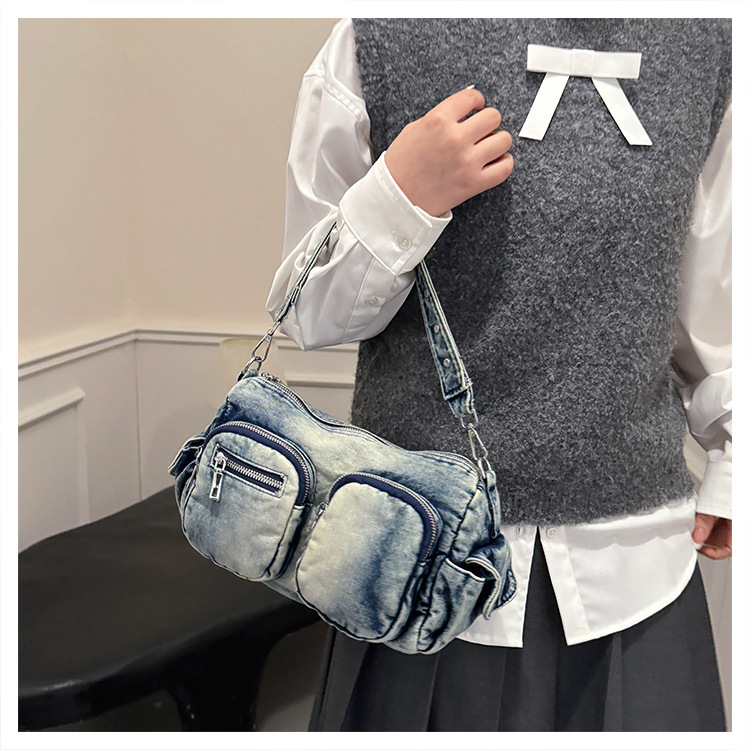 时尚牛仔手提单肩包女2024新款休闲洋气通勤斜挎包