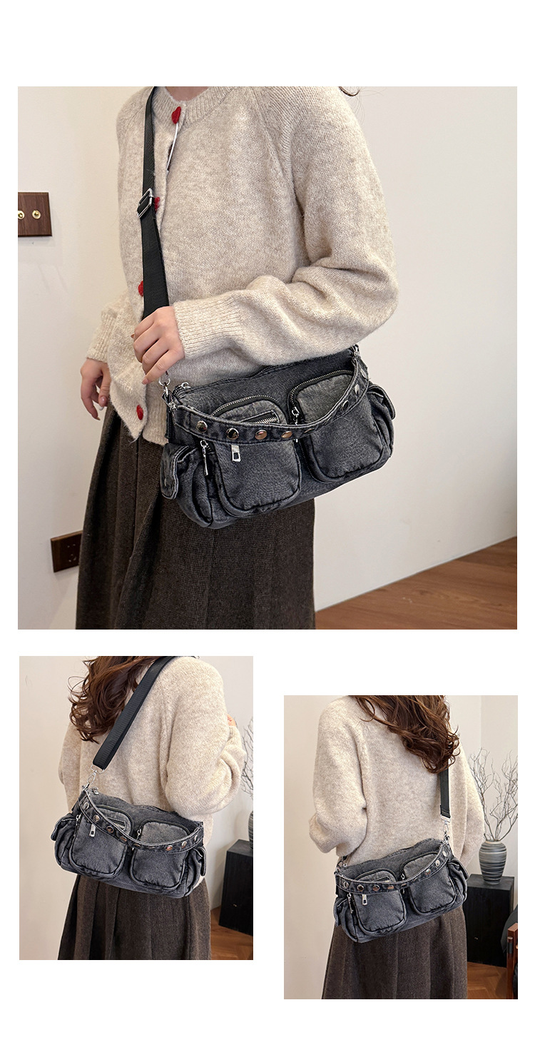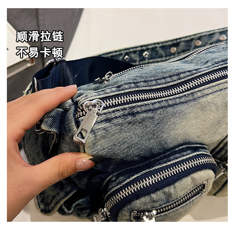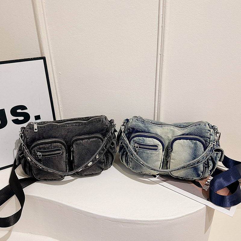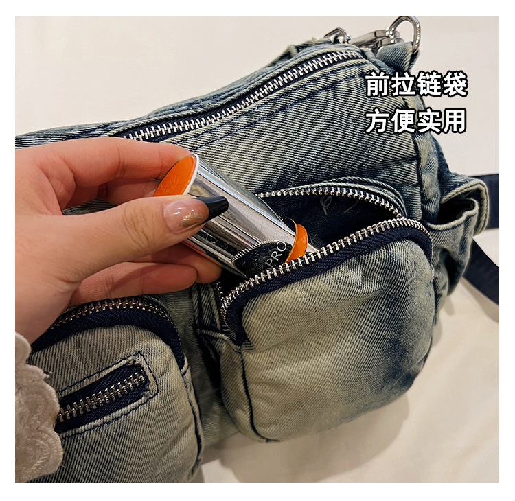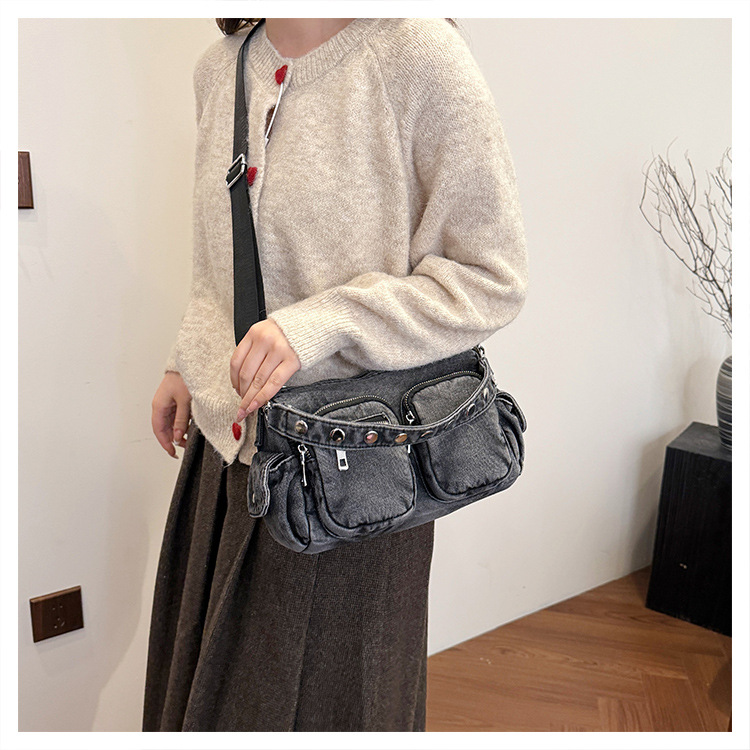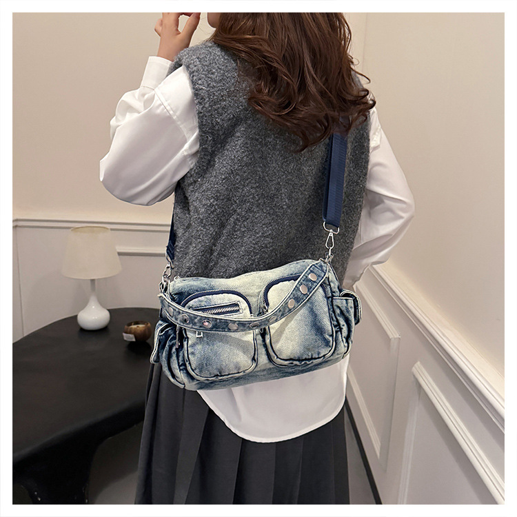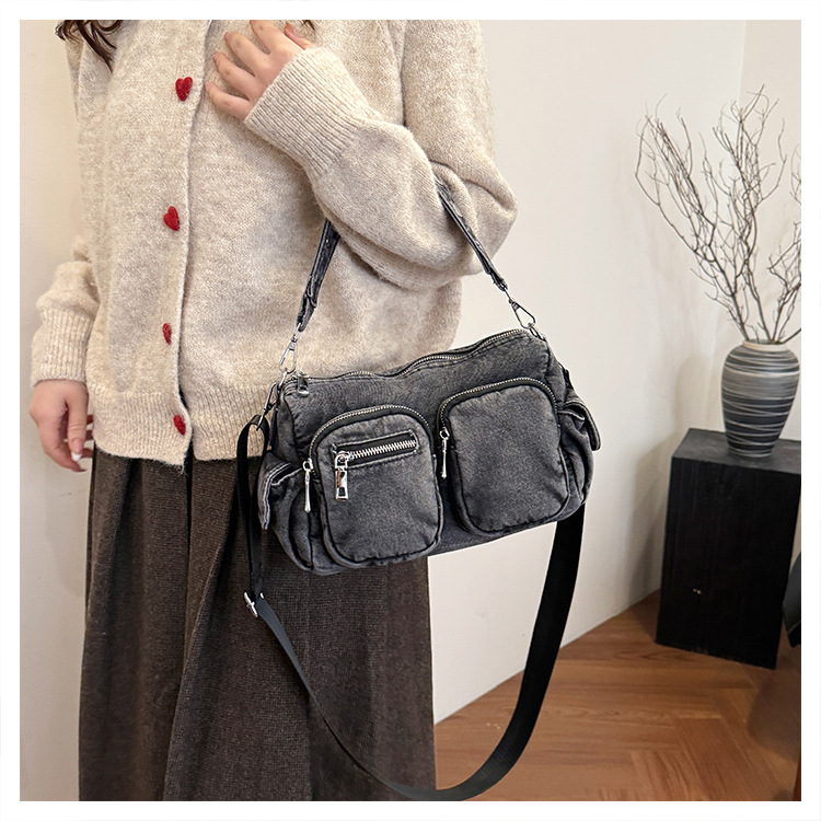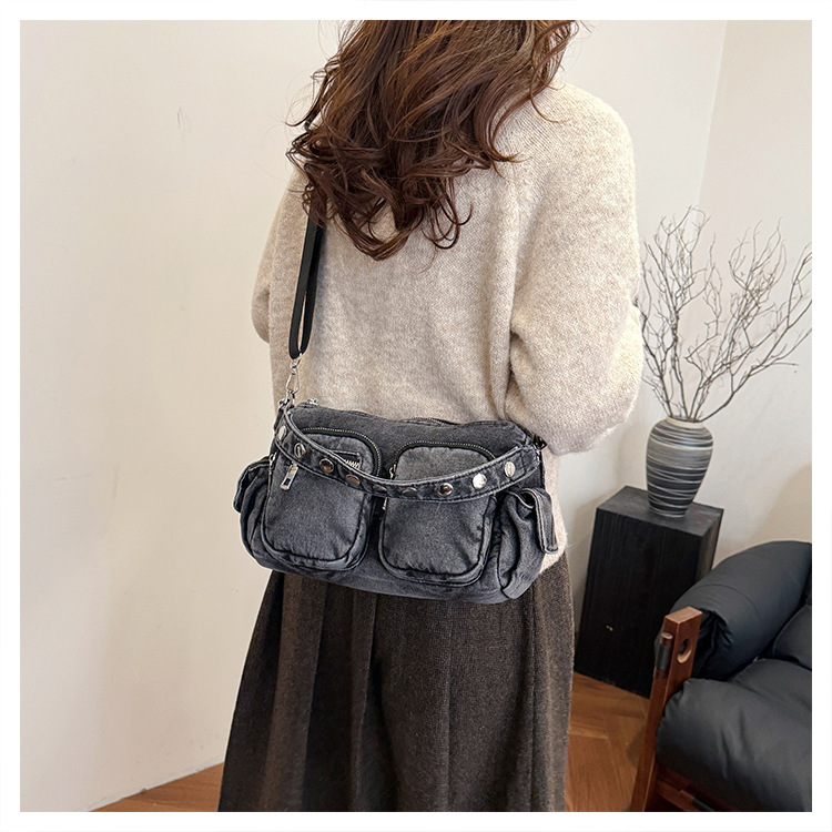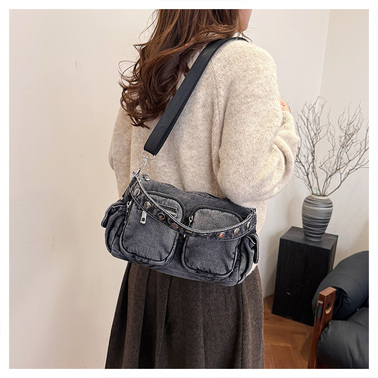 时尚牛仔手提单肩包女2024新款休闲洋气通勤斜挎包