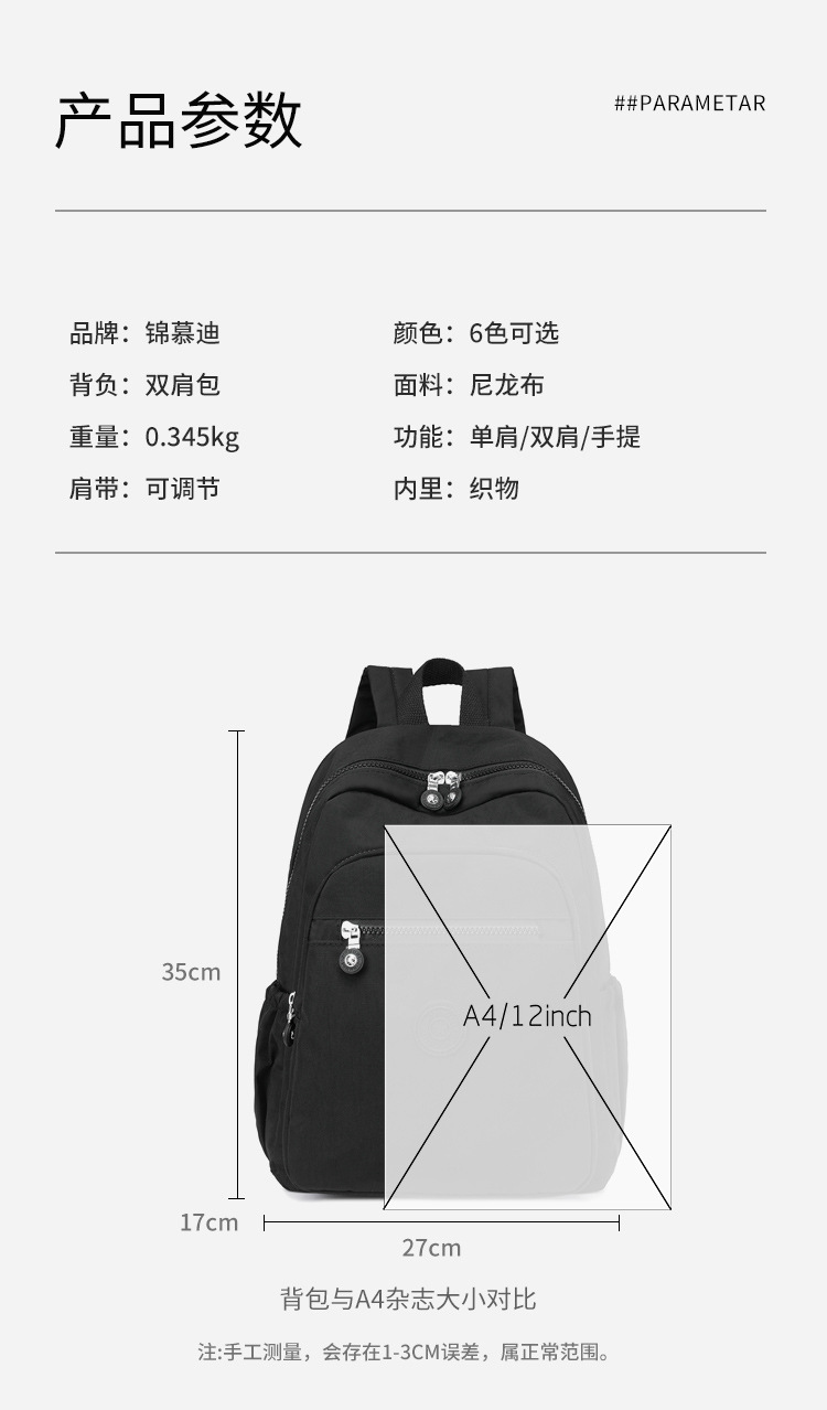 新款书包轻便可套拉杆女旅行背包防泼水尼龙布双肩包