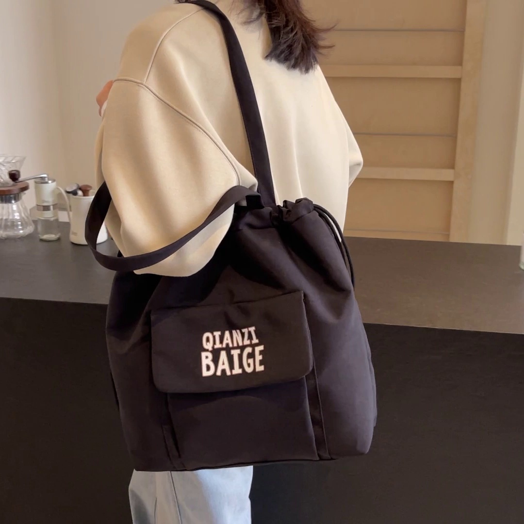 跨境新款大容量单肩包时尚抽绳束口袋潮流女包201